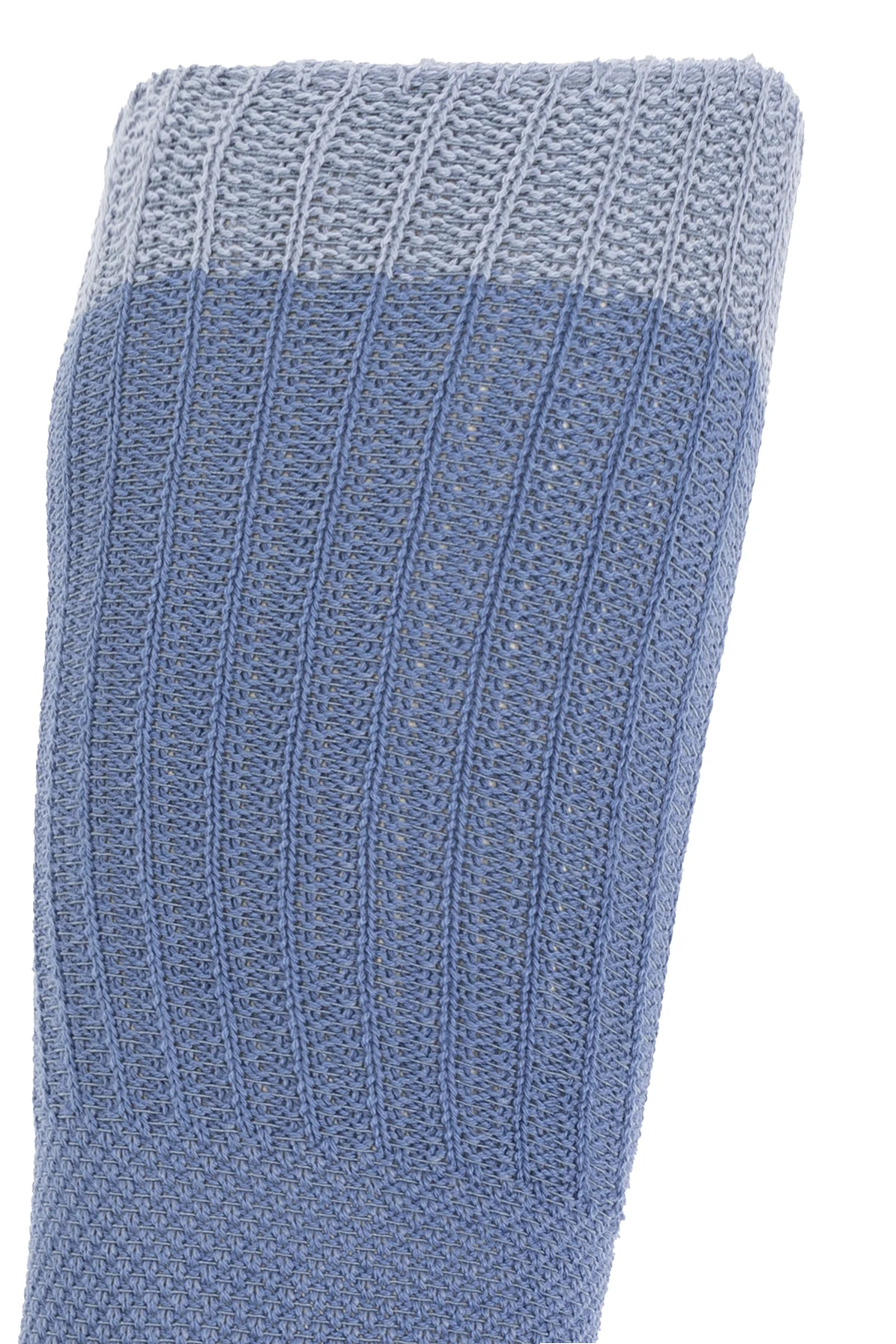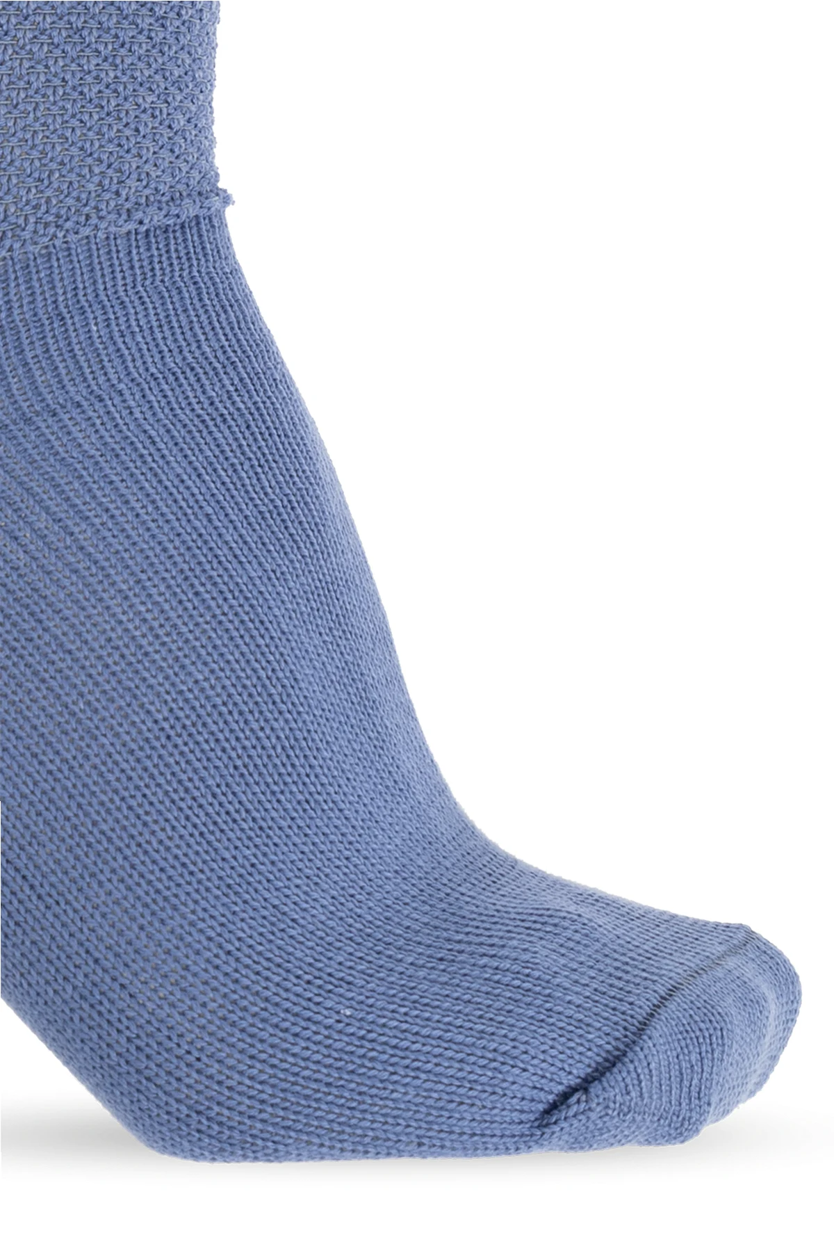 Blue socks from Issey Miyake Homme Plisse. Made of cotton with a ribbed knit, this pair showcases a logo pattern.