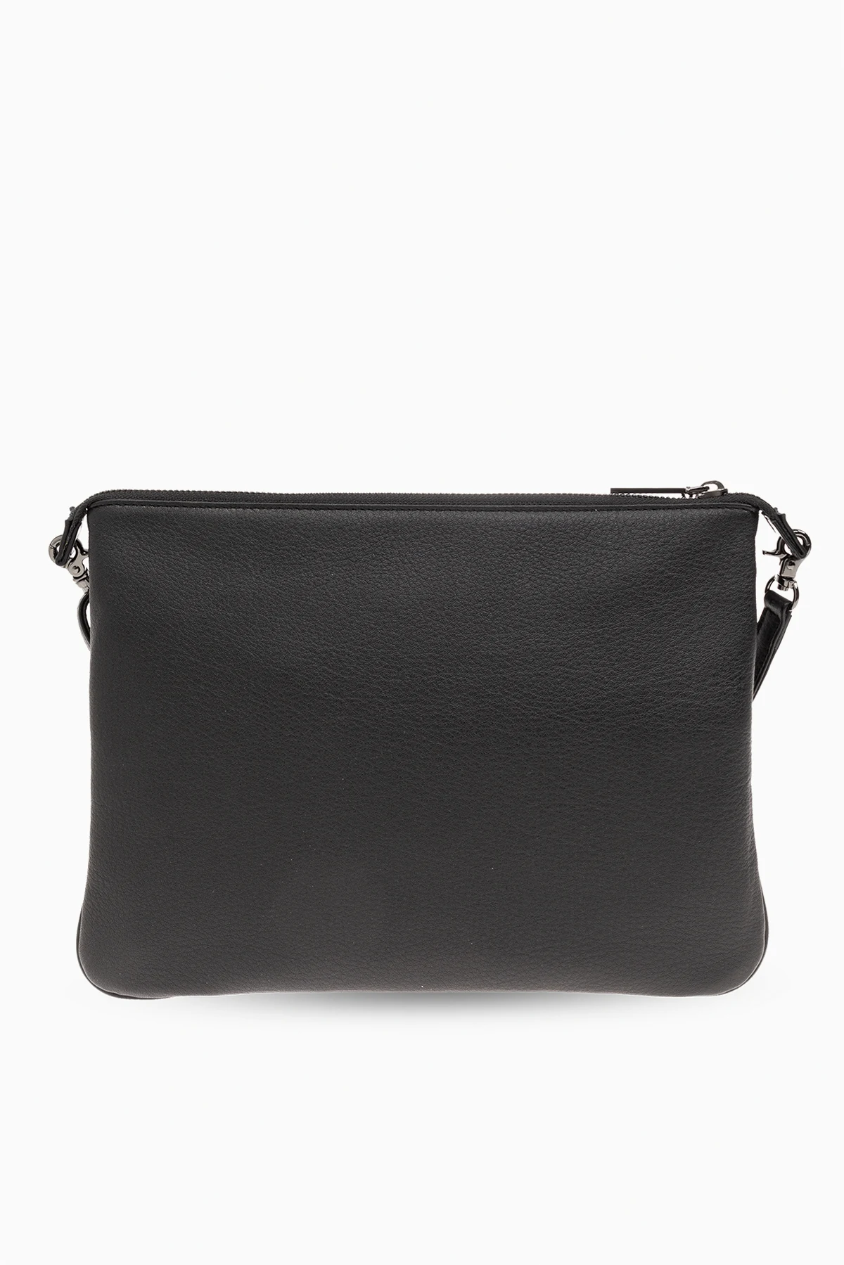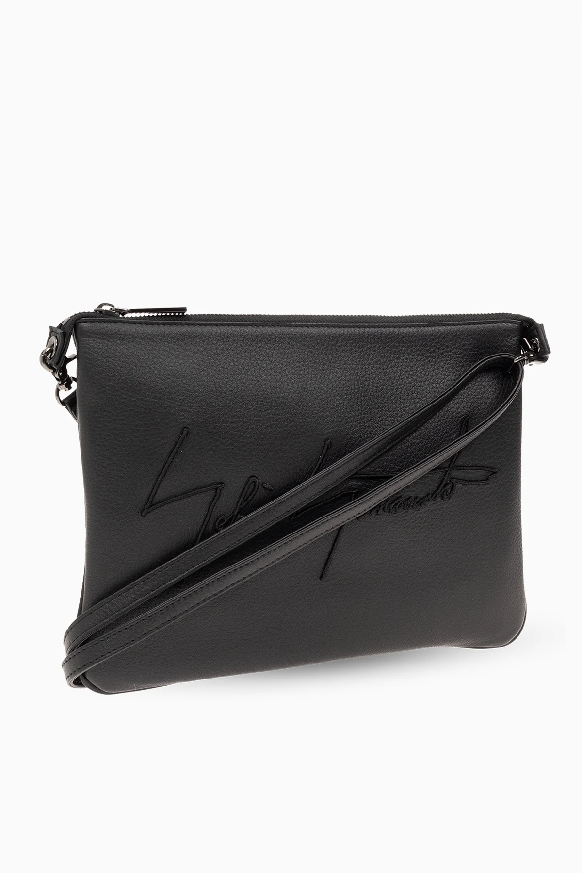 Black shoulder bag from Discord Yohji Yamamoto. Made of leather, this item fastens via a zip and showcases an embroidered logo on the front, silver-tone metal hardware as well as a detachable and adjustable shoulder strap and one internal compartment with one zip pocket and one slip pocket.