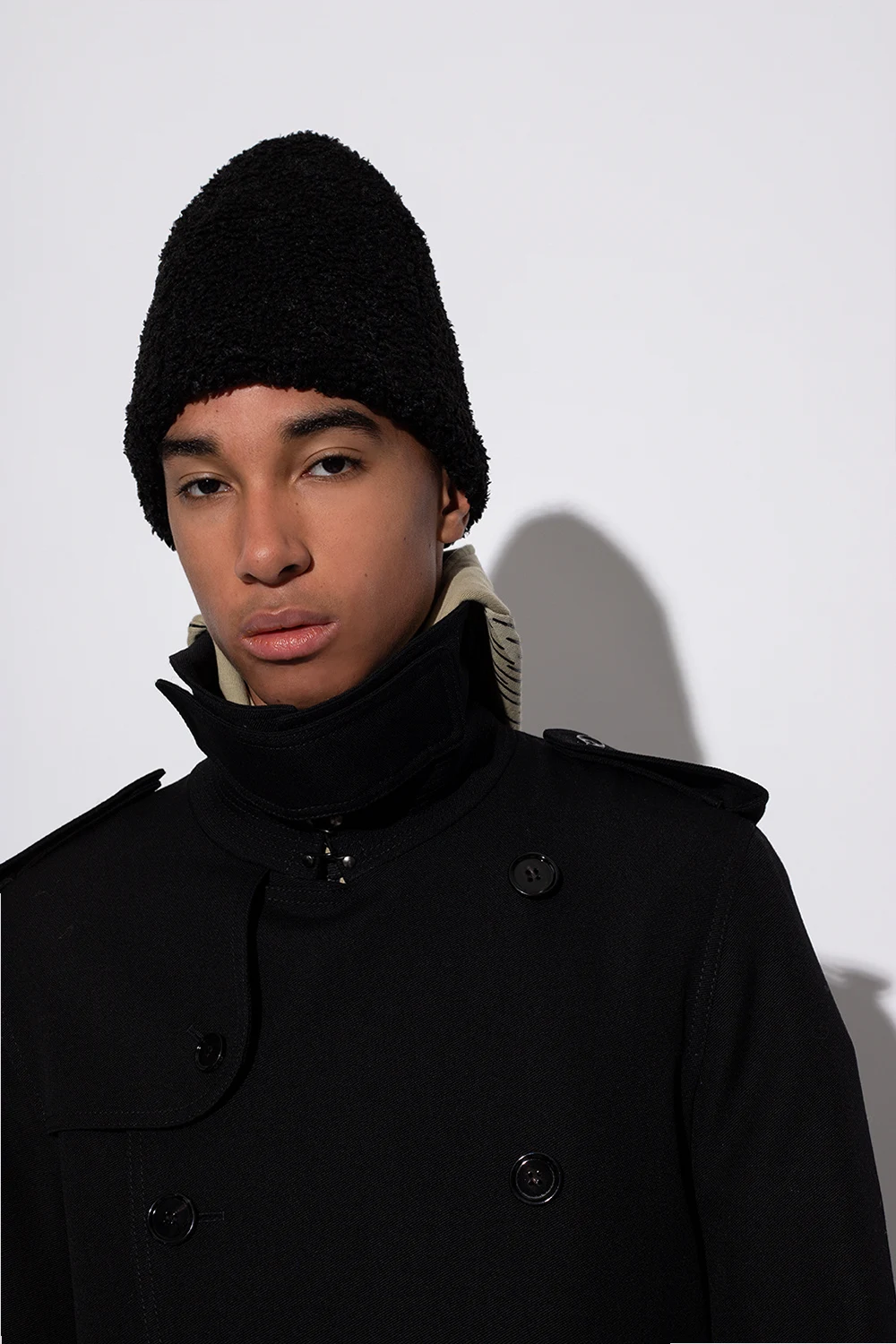 Black hat from Nanushka. Crafted from faux fur, this item features a brown lining.