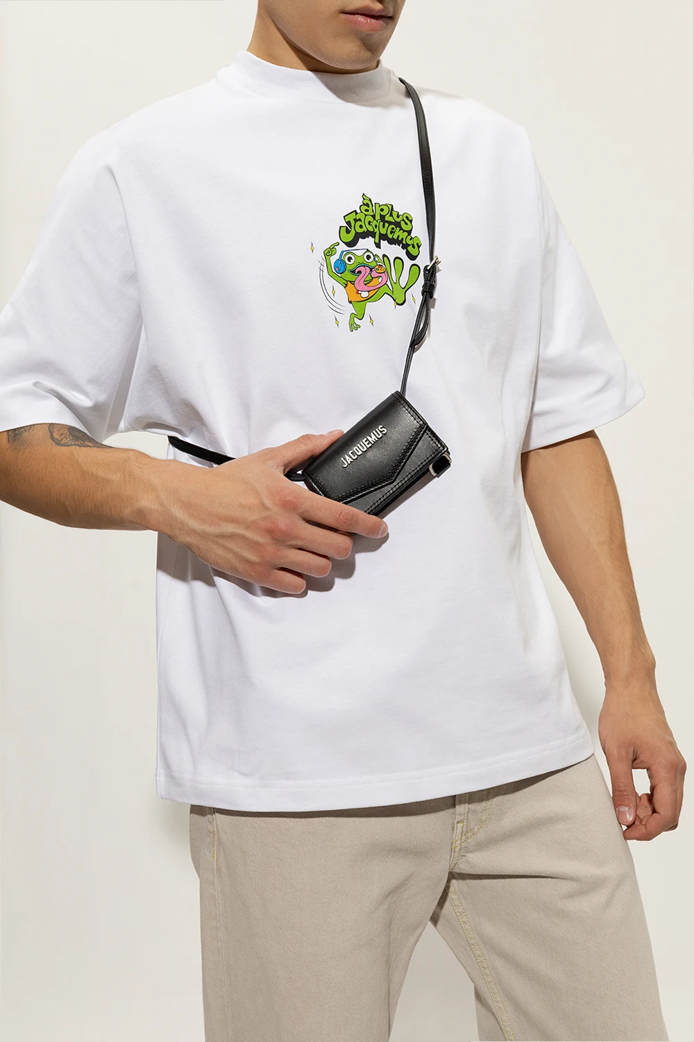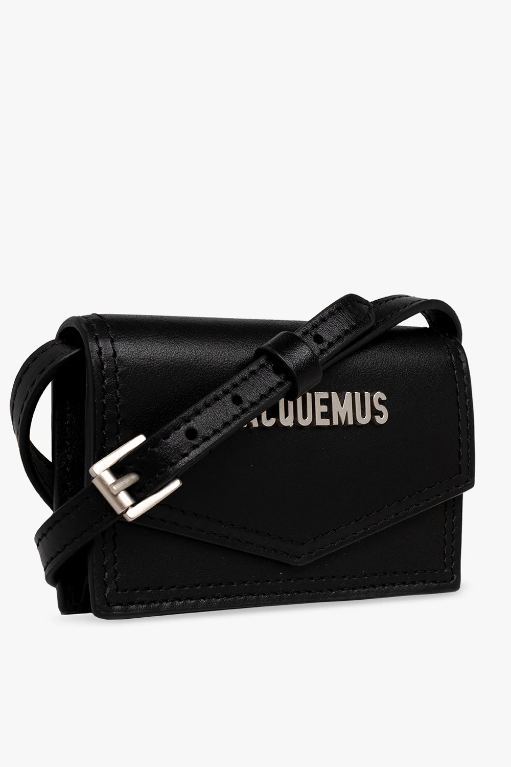 Black ‘Le Porte Azur’ pouch from Jacquemus. Made from leather, this design secures with a snap and showcases a metal logo plaque on the front, an adjustable shoulder strap, silver-tone metal hardware and one internal compartment.