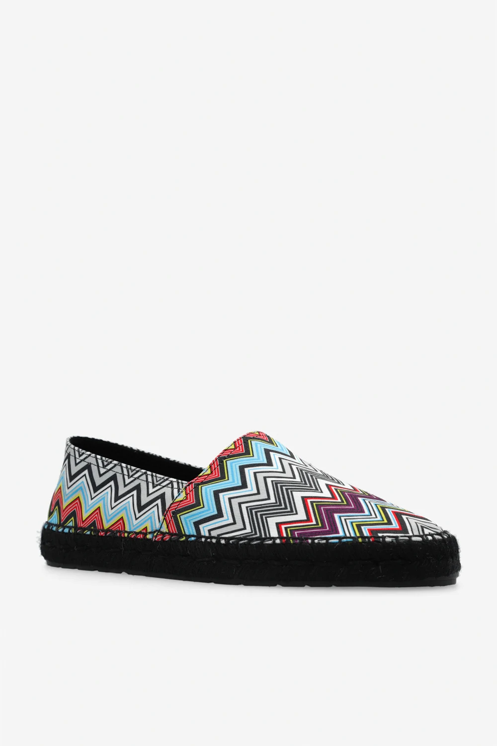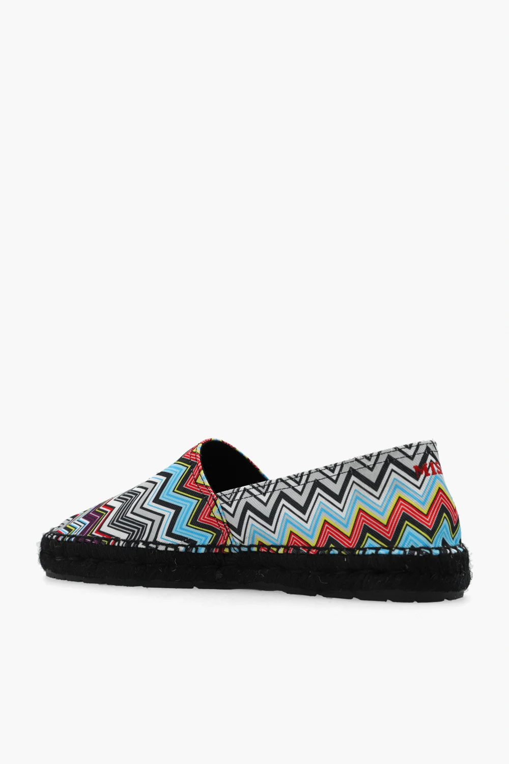 Multicoloured espadrilles from M Missoni. Made of canvas and decorated with a signature zigzag pattern, this model sits on a black sole in woven jute and rubber and showcases a printed red logo at the back.