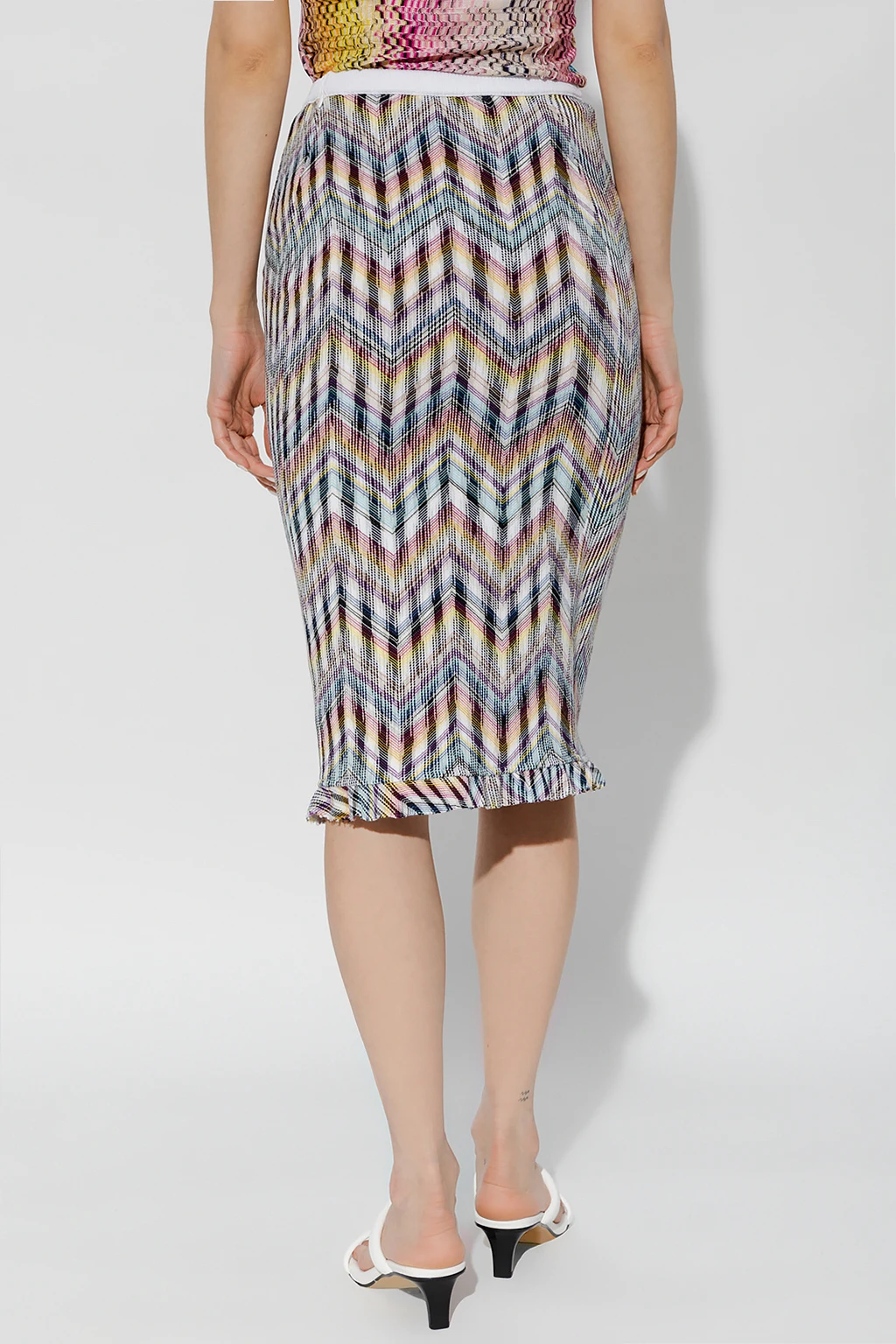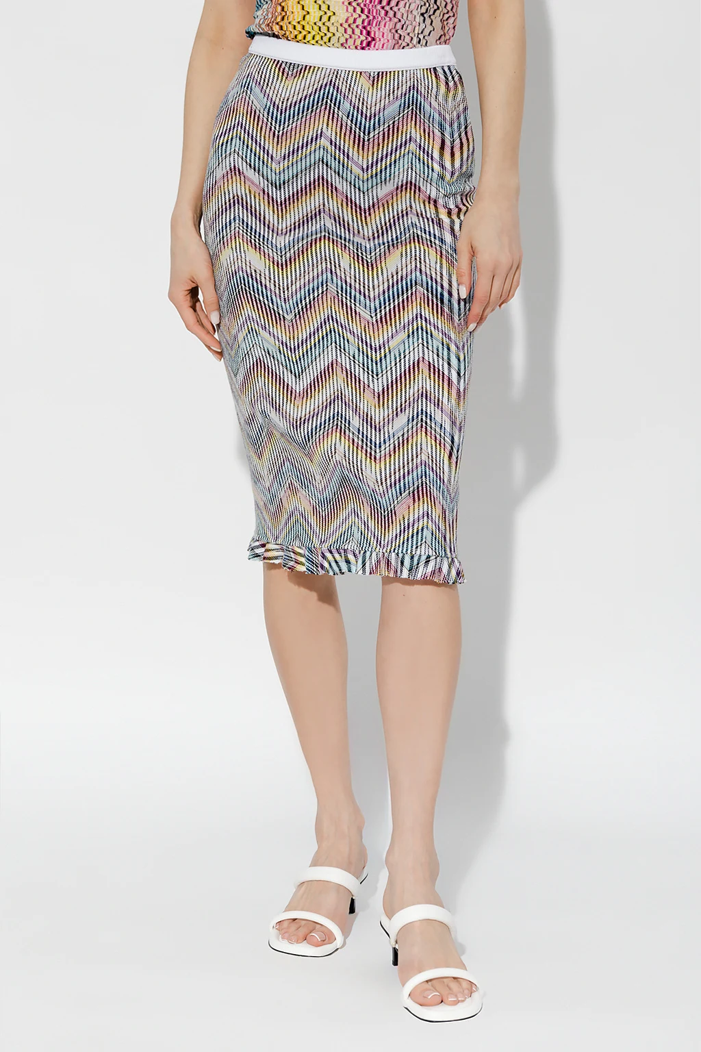 Multicoloured skirt from Missoni. Crafted from lightweight cotton knit with a signature zigzag motif, this style features an elasticated waistband and a ruffled hem.
