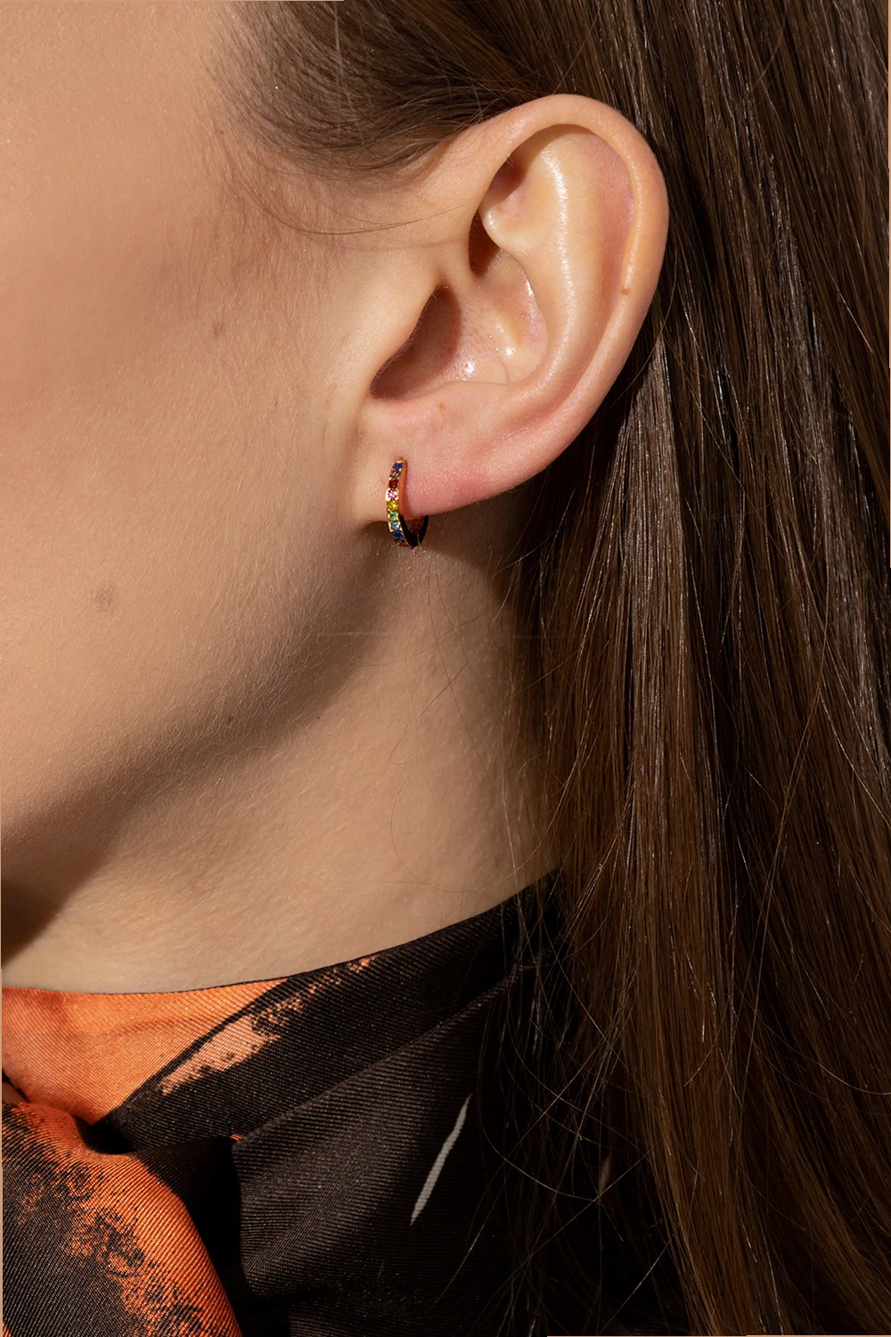 Gold-tone ‘Rainbow’ earrings from Kate Spade. Fastened with a hinge closure, this pair is enriched by multicolored pavé zirconias.
