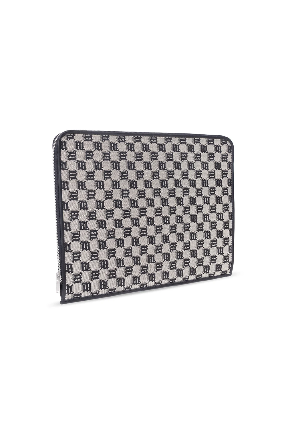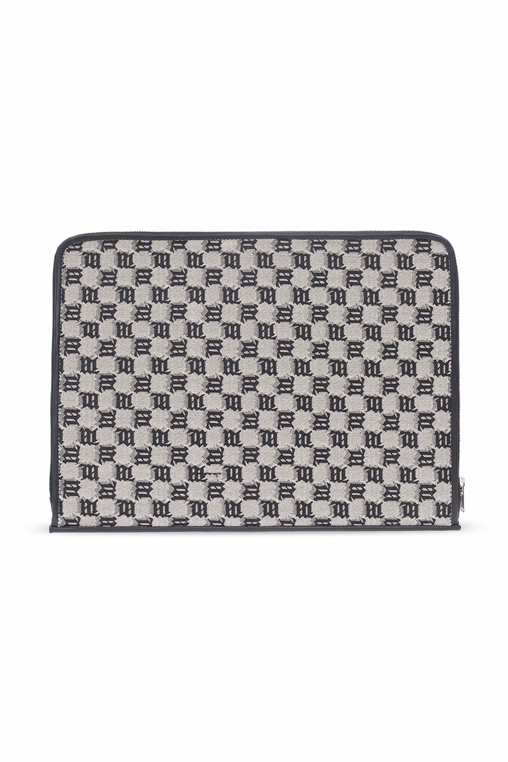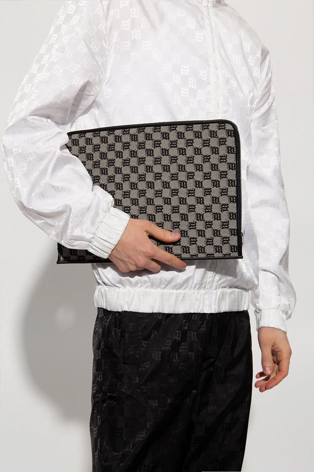 Beige and black handbag from MISBHV. Crafted from cotton and embellished with the brand\'s jacquard ‘M’ monogram theme, this design features a zip fastening, silver-tone metal hardware and one internal compartment with one slip pocket and three card slots.