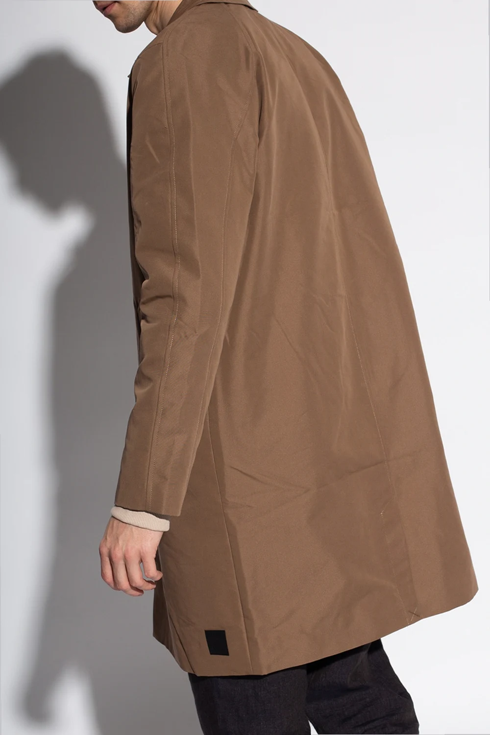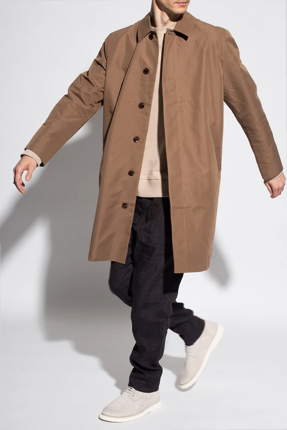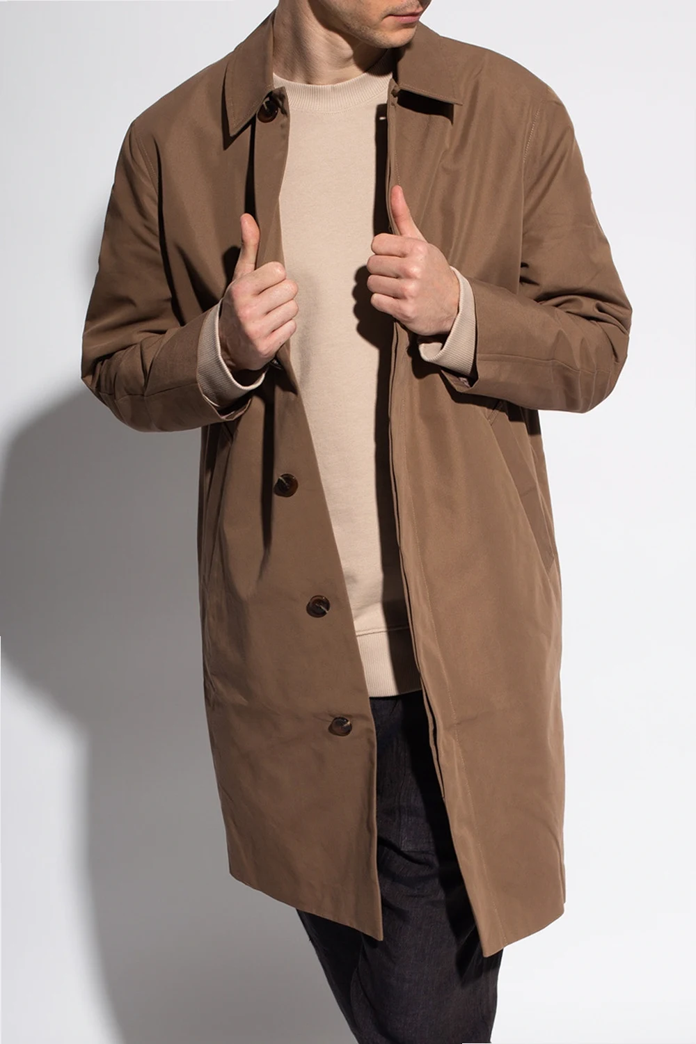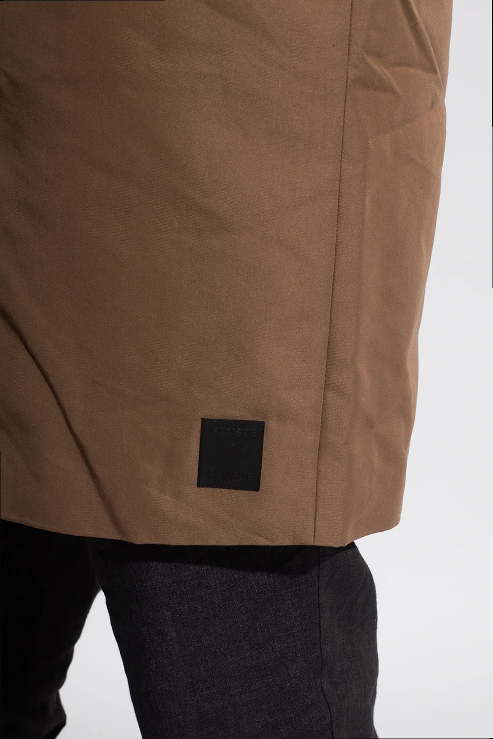 Brown coat from Samsoe Samsoe. Made of organic cotton, this garment features buttons with a concealed placket, black logo patch and two slip pockets.