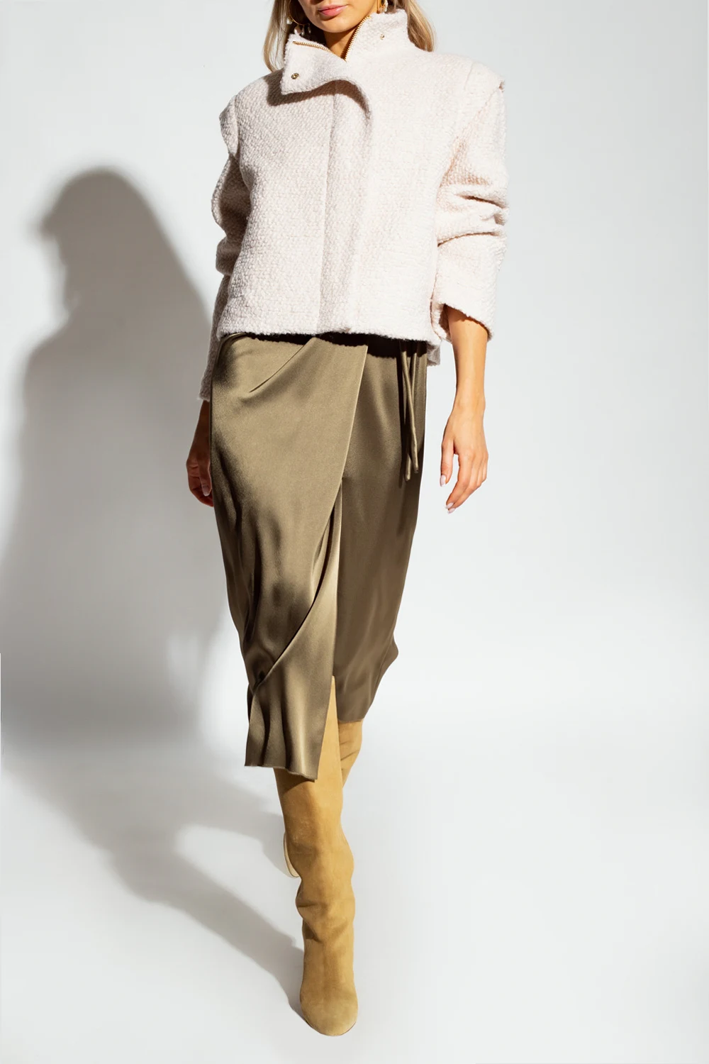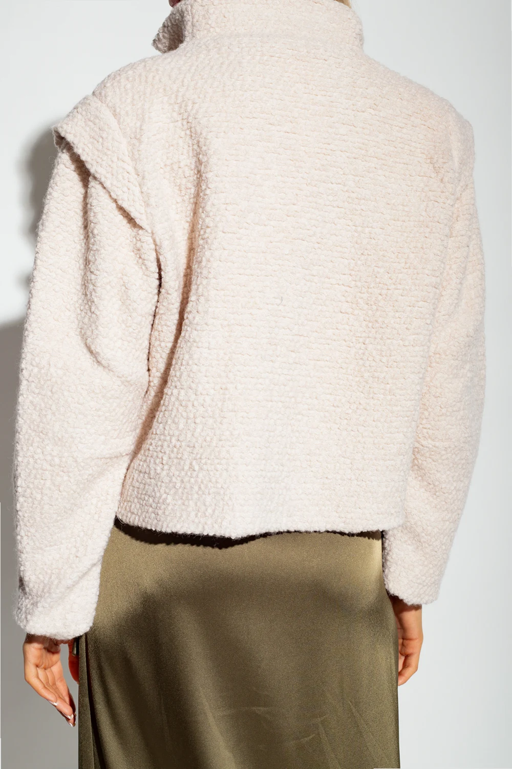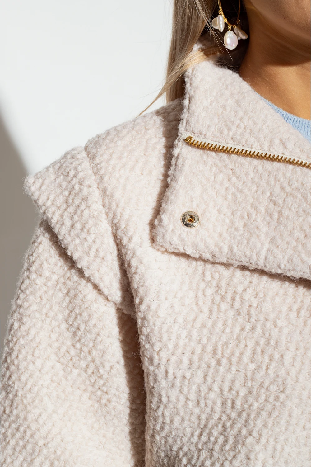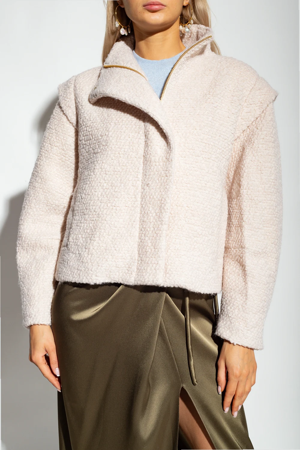 Cream ‘Enya’ jacket from Notes Du Nord. Crafted with a cropped, relaxed fit, this style fastens with a zipper and snaps and features a standing collar, long sleeves and two frontal pockets.
