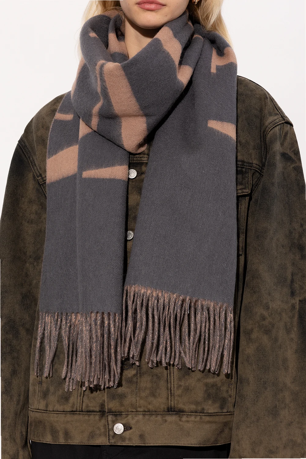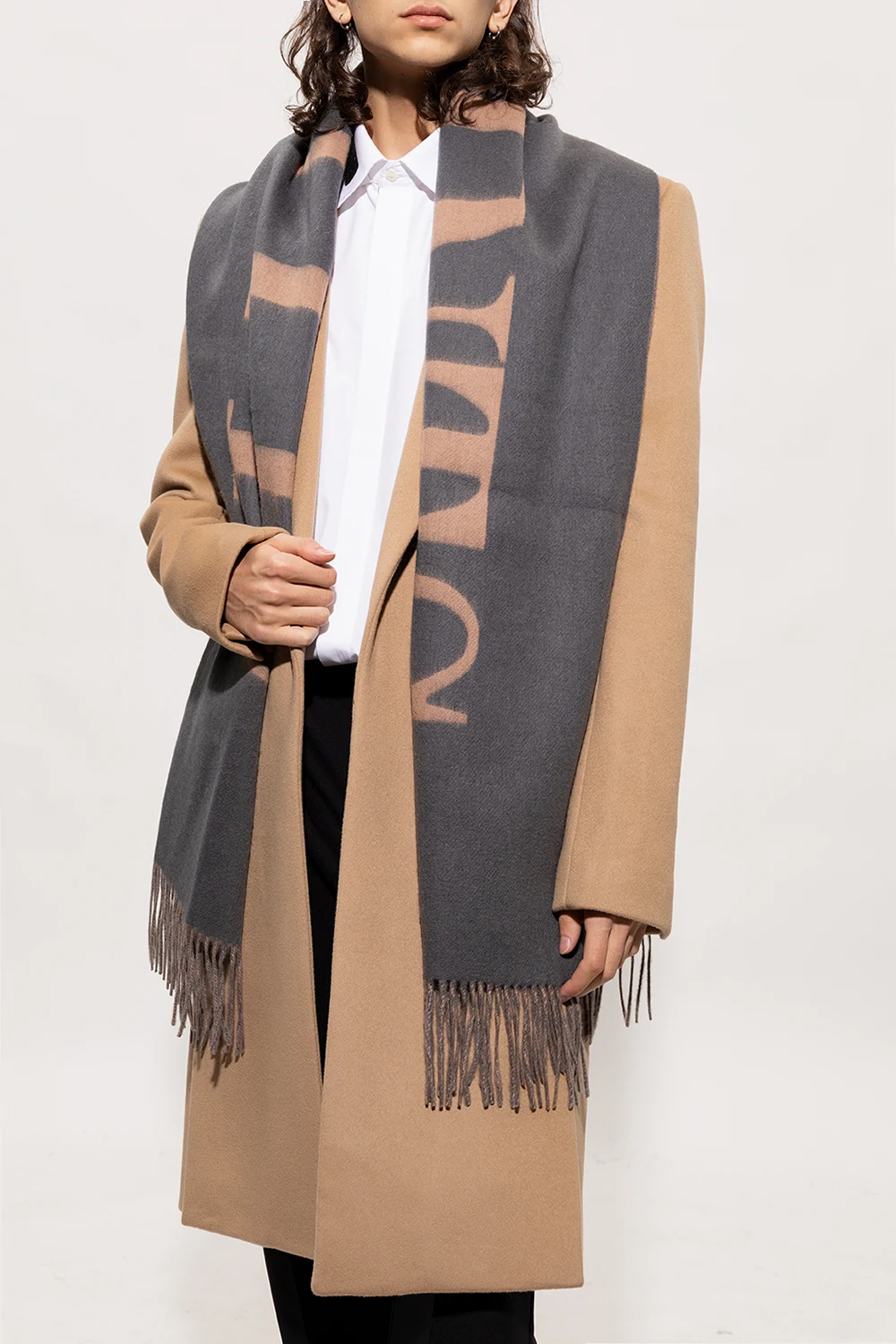 fringed wool logo-patch scarf