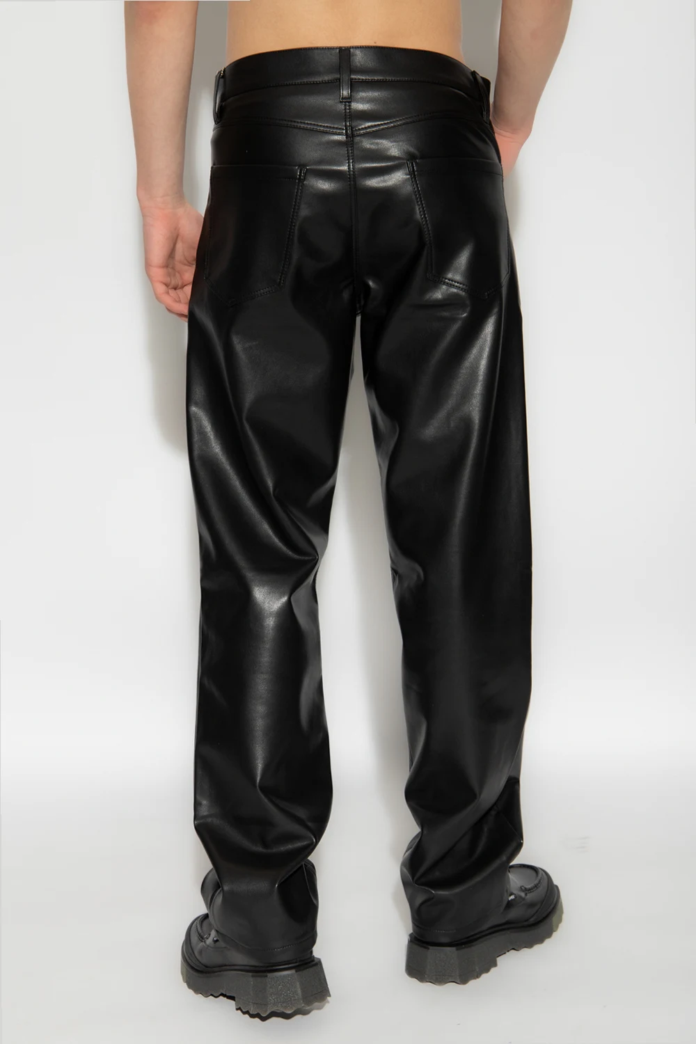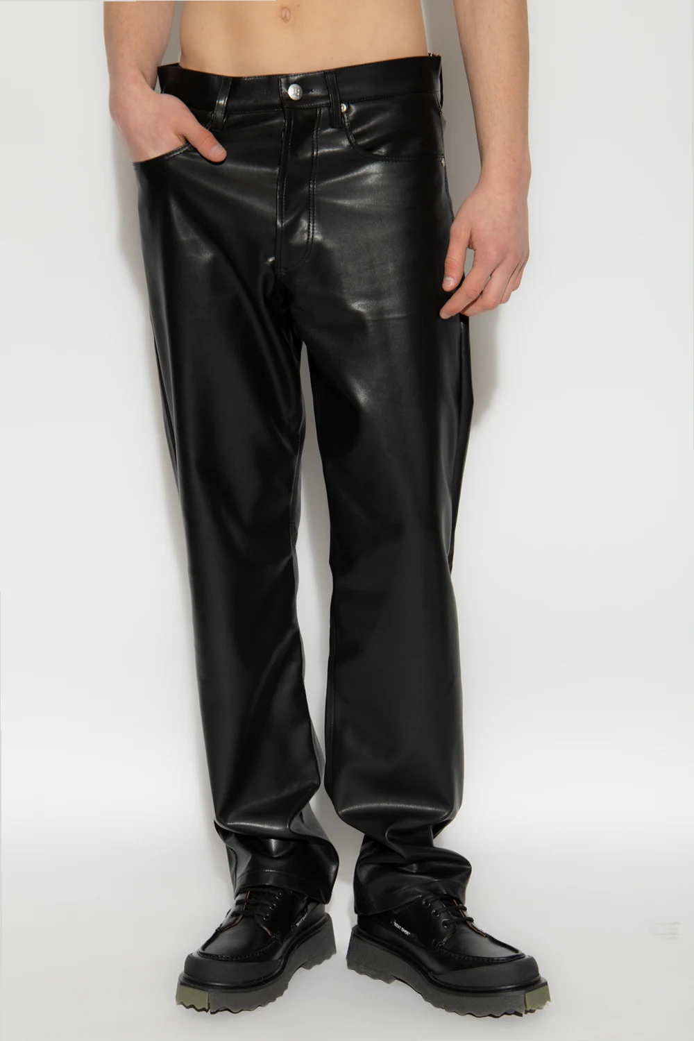 Black trousers from MISBHV. Made of vegan leather, this straight leg pair has five slip pockets and fastens with buttons.