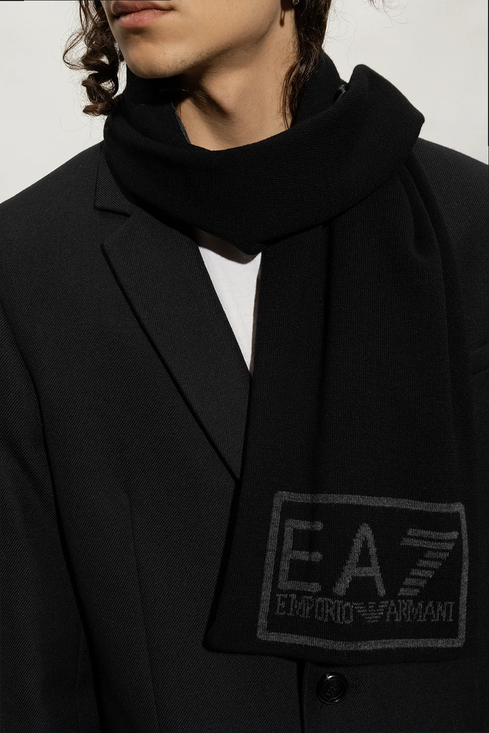 Black scarf with a grey logo embroidery from EA7 Emporio Armani.