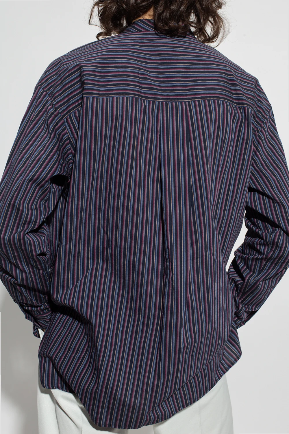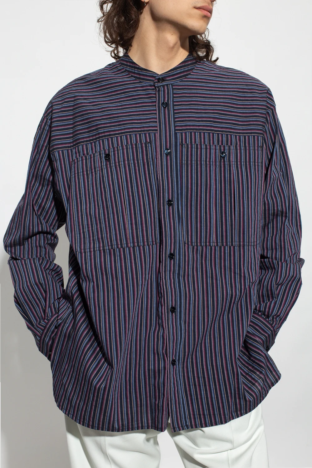 Navy, pink and cream ‘Taylori’ shirt from Isabel Marant. Made of cotton, this garment features button fastenings, stripe pattern and long sleeves with button cuffs.