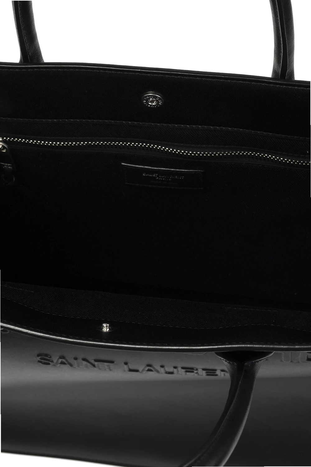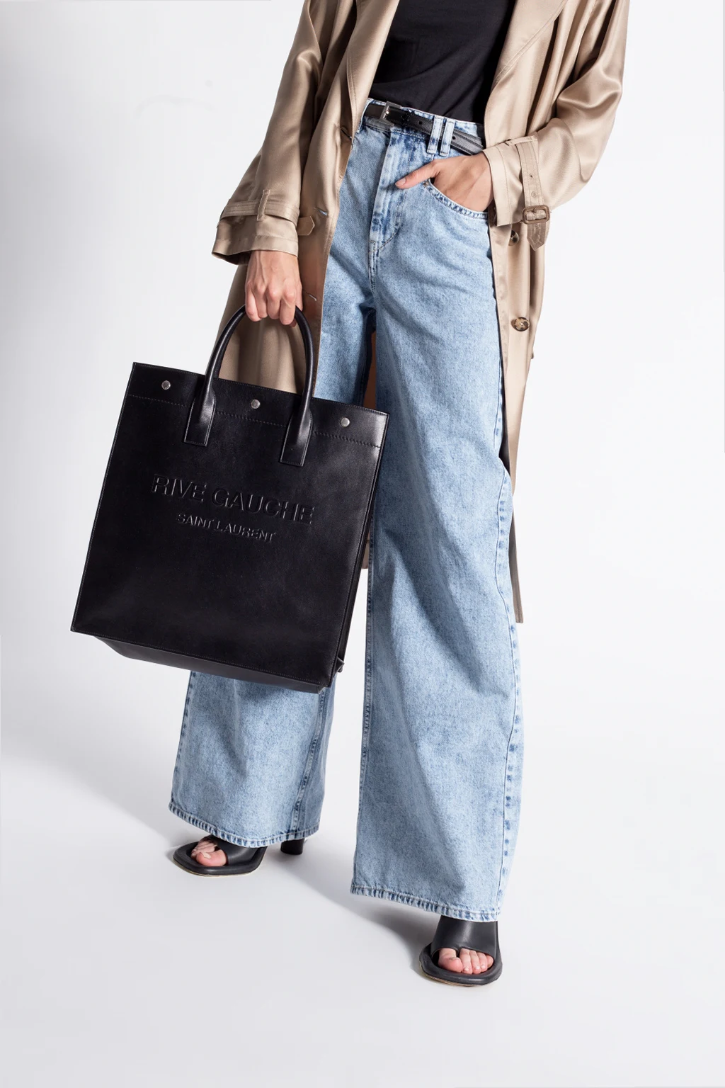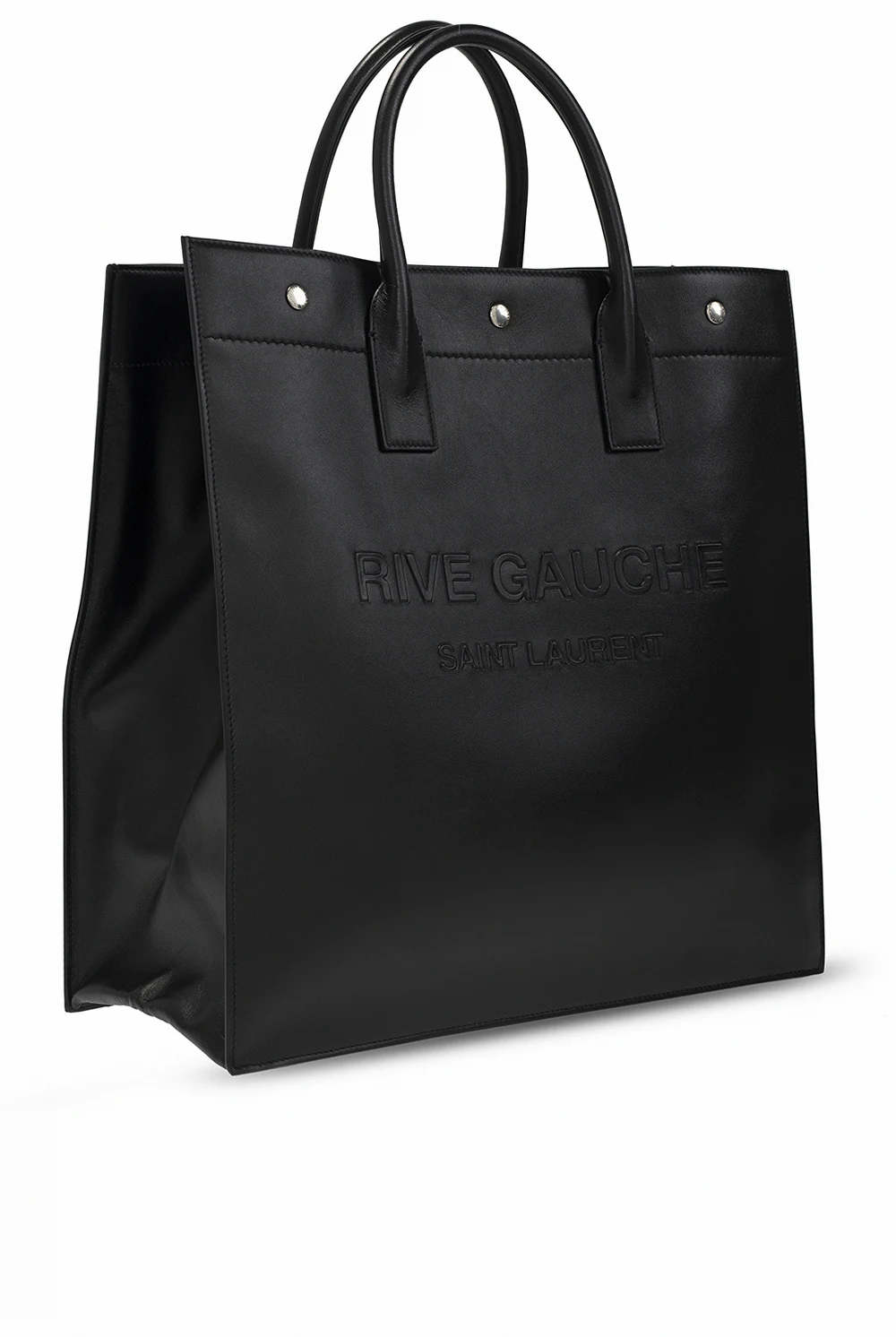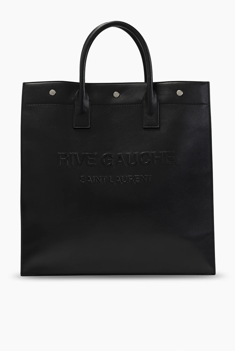 Black ‘Rive Gauche’ shopper bag from Saint Laurent. Crafted from calf leather, this design fastens with a snap and is complete with a raised logo, two half-round handles, silver-tone metal hardware and one internal compartment with one zip pocket.
