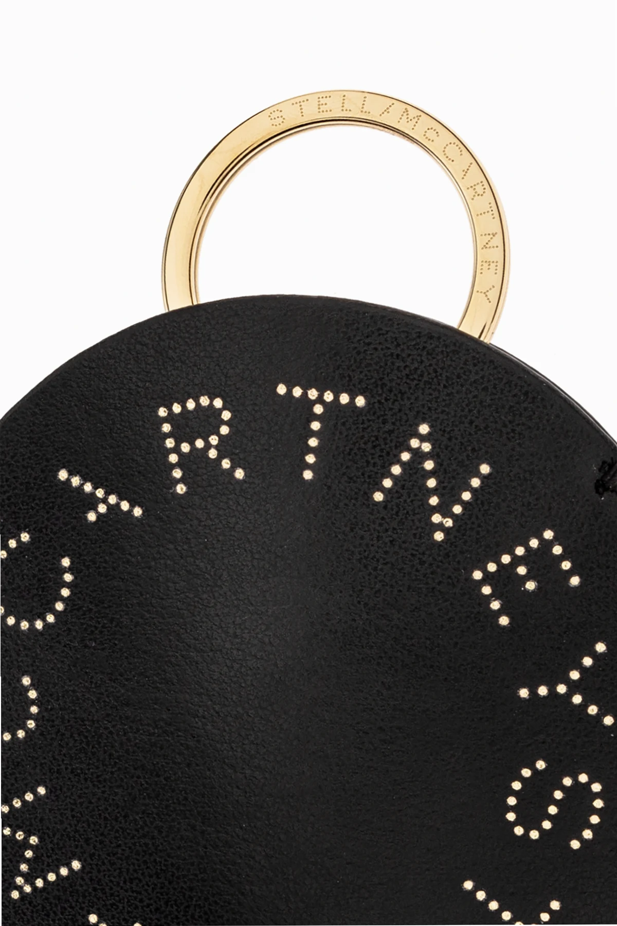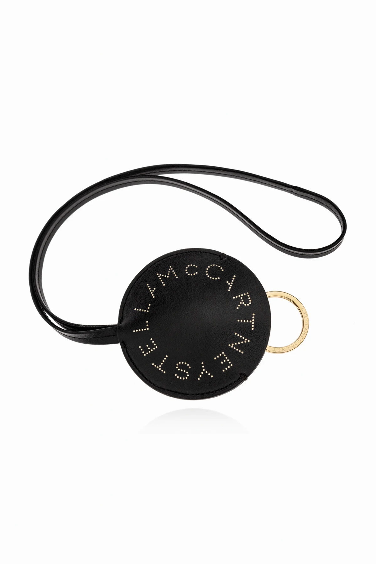 Introducing the Keychain Strap from the exclusive fashion collection by Stella McCartney. This piece epitomizes elegance and sophistication, merging minimalist design with practical functionality. The round keychain features a long strap, effortlessly attaching to keys or bags. Crafted from black vegan leather, the keychain\'s smooth texture exudes an understated luxury. The designer\'s name, artistically arranged in a circle, graces its surface, while a golden ring with engraved branding adds a touch of opulence, ensuring easy attachment. With a palette dominated by black and accentuated with gold details, this accessory complements any ensemble, embodying the brand\'s commitment to timeless style and sustainable practices. Why Choose This Product? Exquisite design by Stella McCartney, renowned for her impeccable craftsmanship. Made from ethically sourced vegan leather, promoting sustainability. Versatile attachment options with a chic golden ring. Perfect for enhancing any outfit with a touch of elegance.