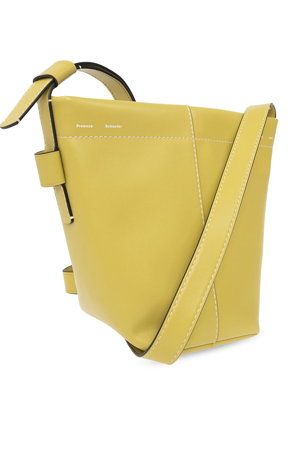Green ‘Barrow Mini’ shoulder bag from Proenza Schouler White Label. Crafted from calf leather, this design secures with a zip and showcases a white logo pattern, a shoulder strap, silver-tone metal hardware and one internal compartment with one slip pocket and one zip pocket.