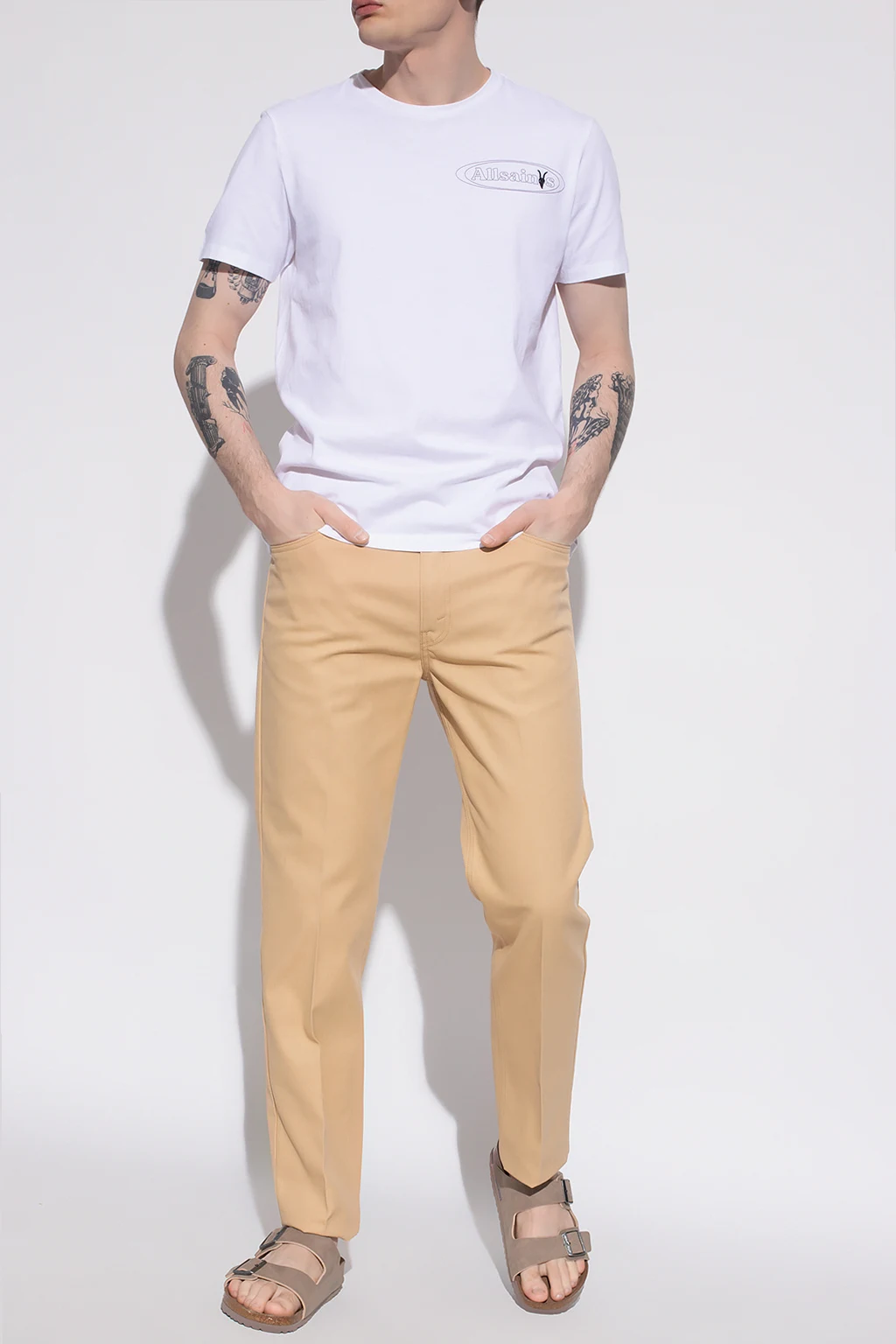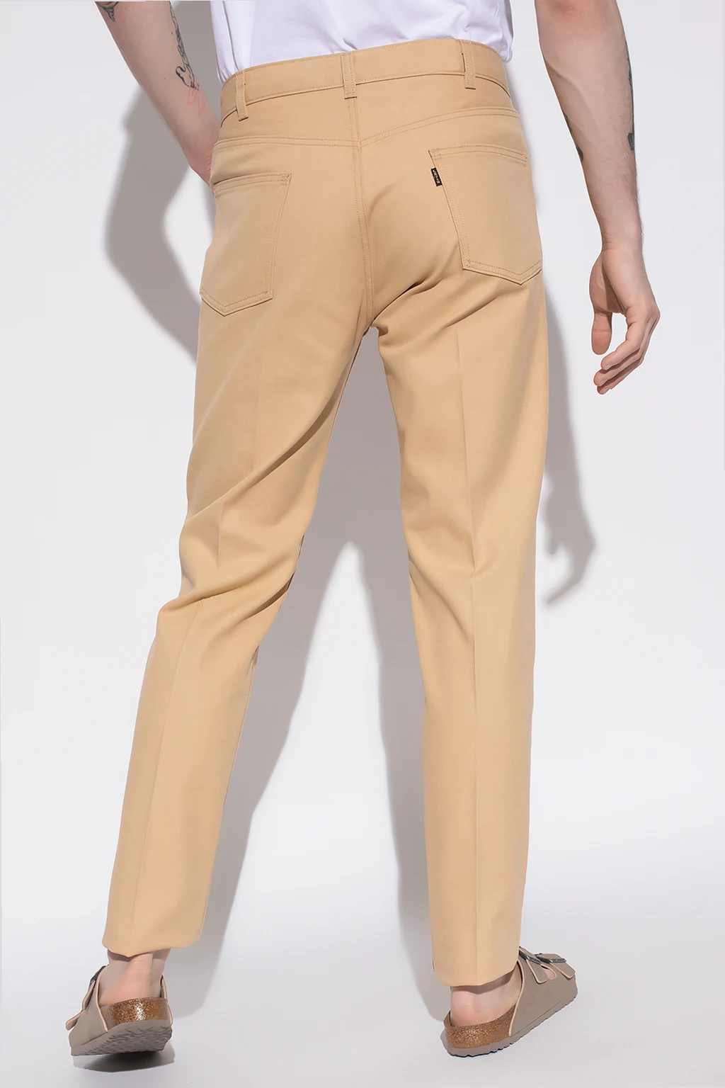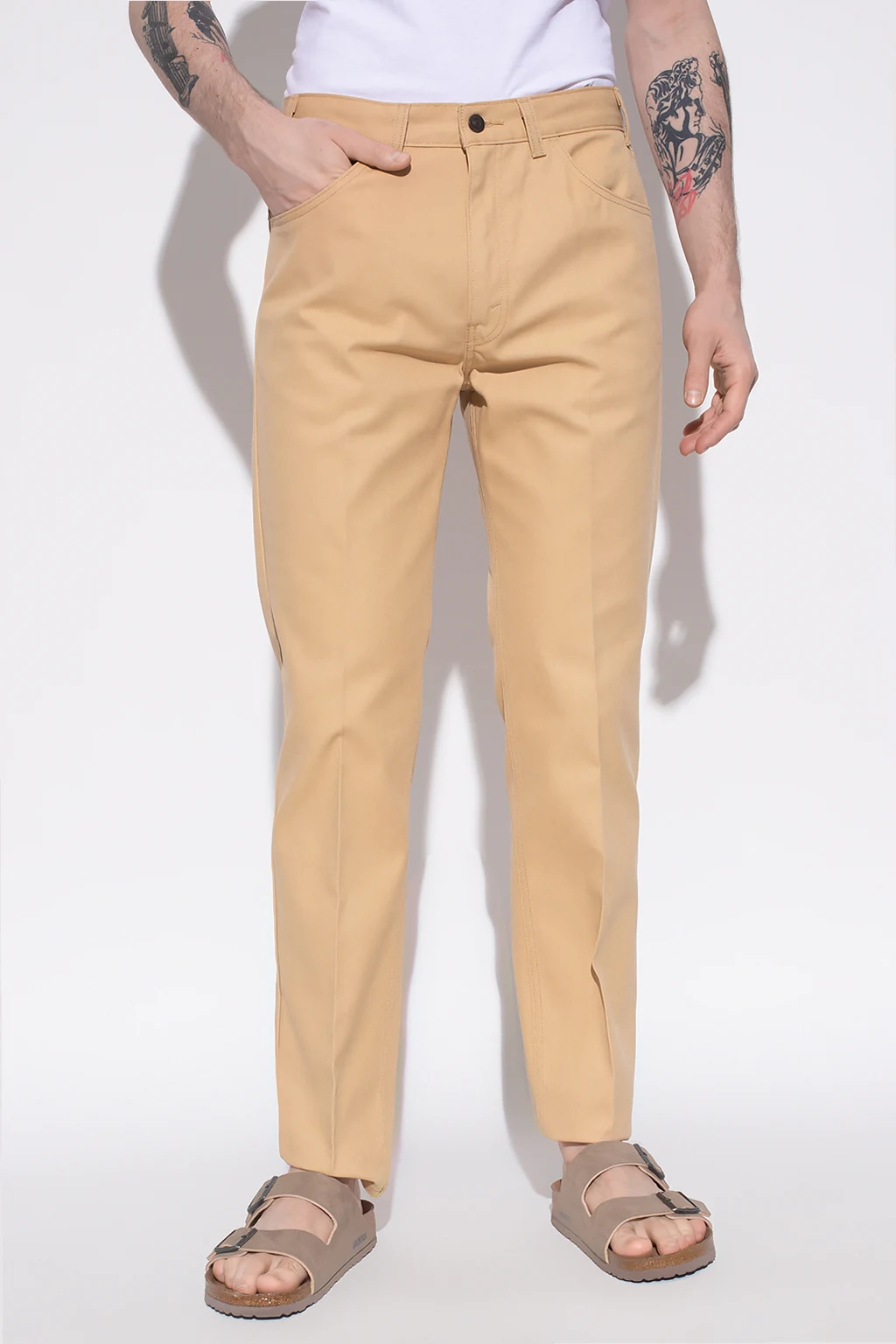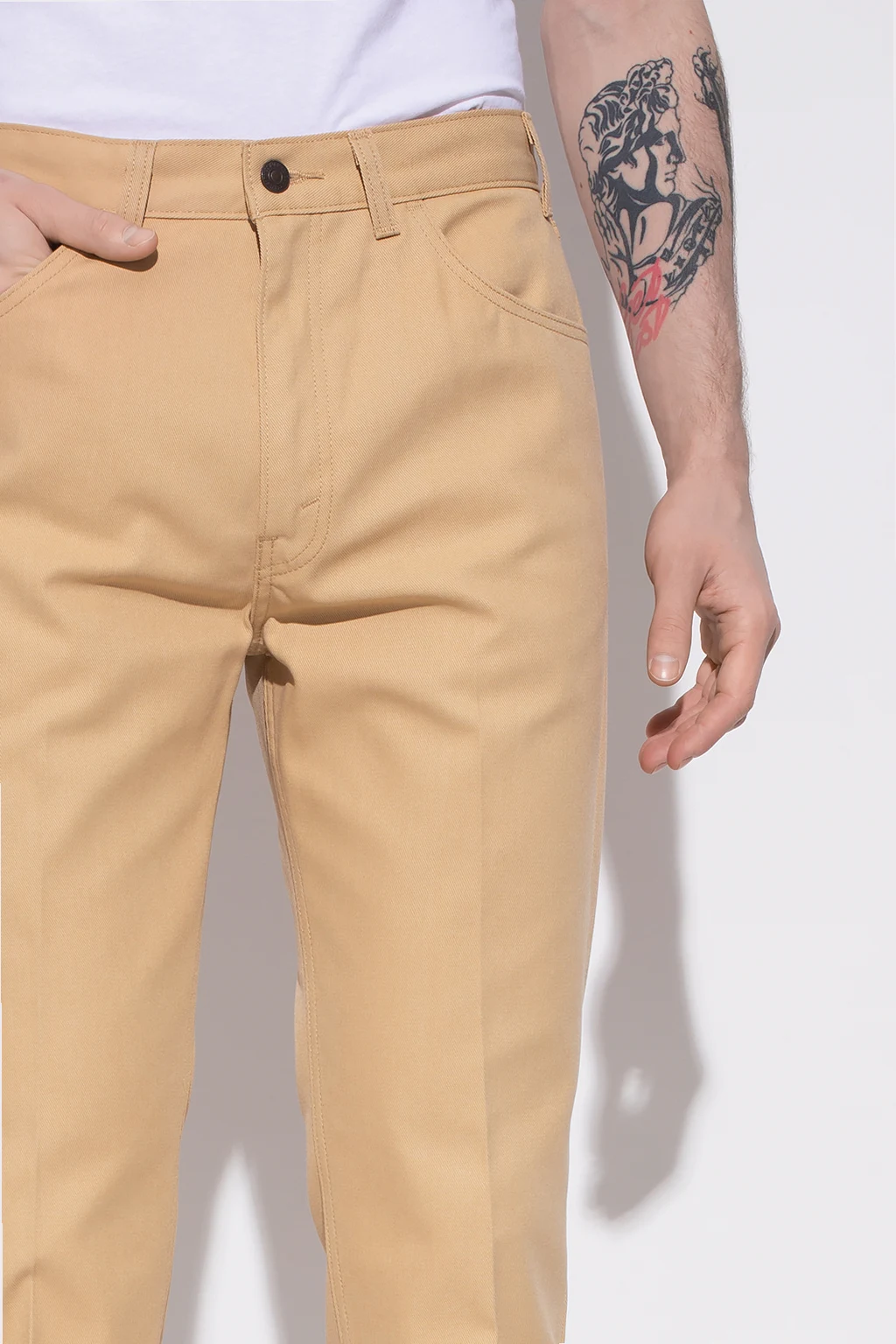 Beige ‘Sta-Prest’ pleat-front jeans from Levi’s, the ‘Archives’ collection. Fastened with a zip and button, this slim fit pair is complete with three front pockets and two back pockets.