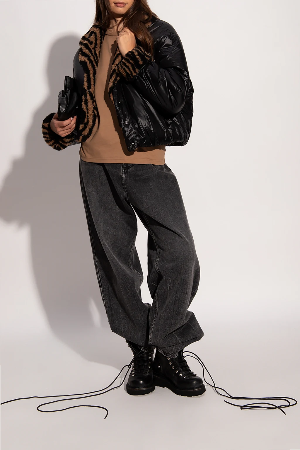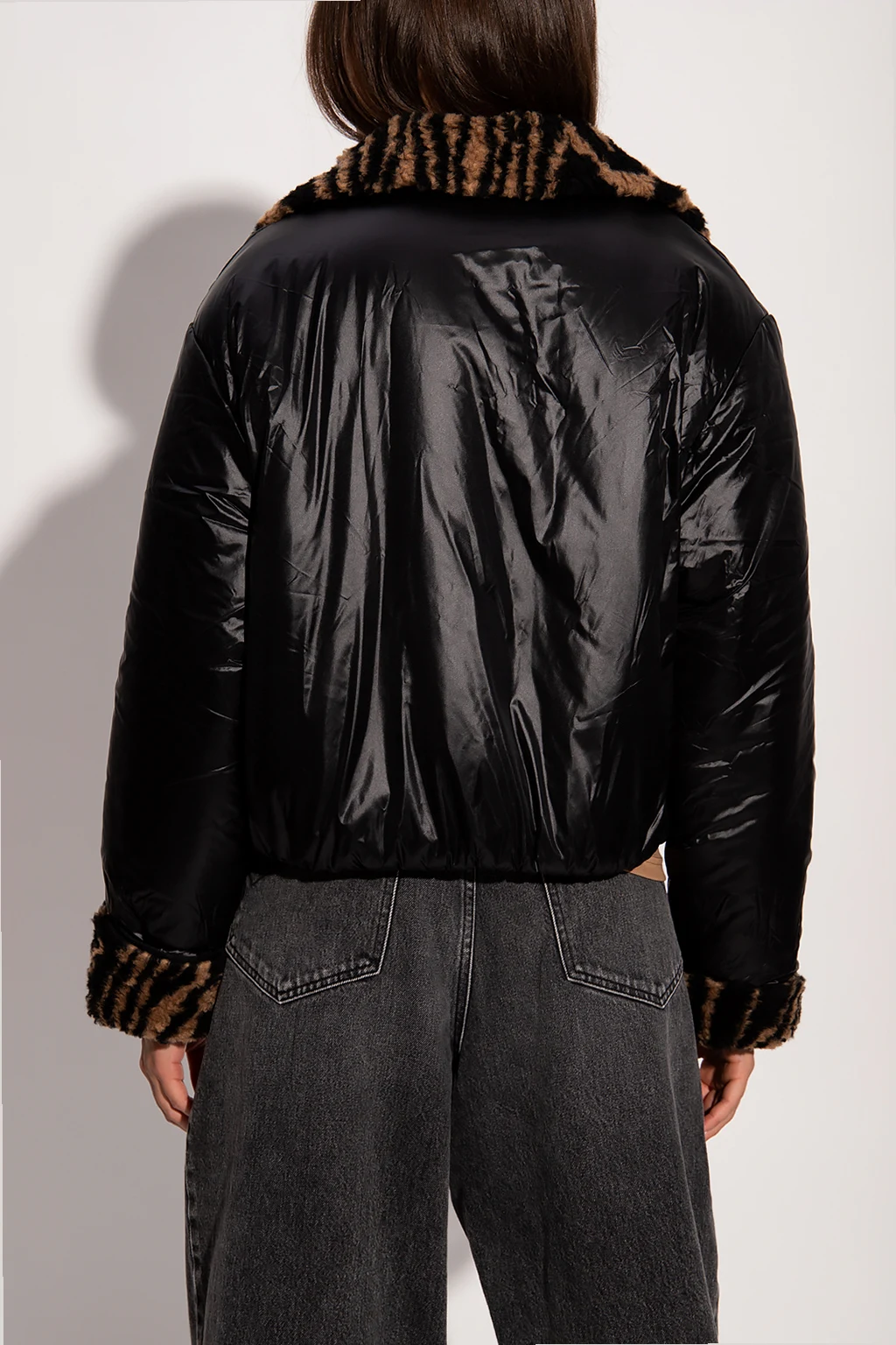 Black jacket from Opening Ceremony. Fastened with snaps, this garment features a logo patch, two slip pockets and a wool blend lining printed with a pattern.