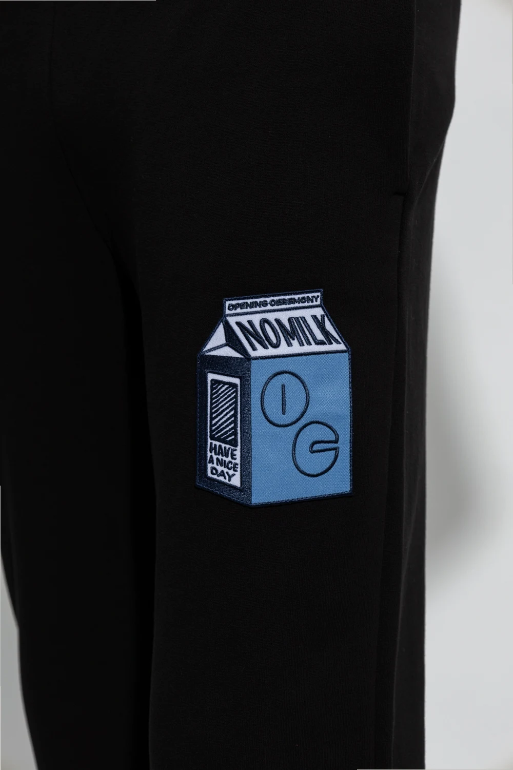 Black sweatpants from Opening Ceremony. Crafted from cotton, this pair features an elastic drawstring waistband, logo patch, two slip pockets and elasticated cuffs.