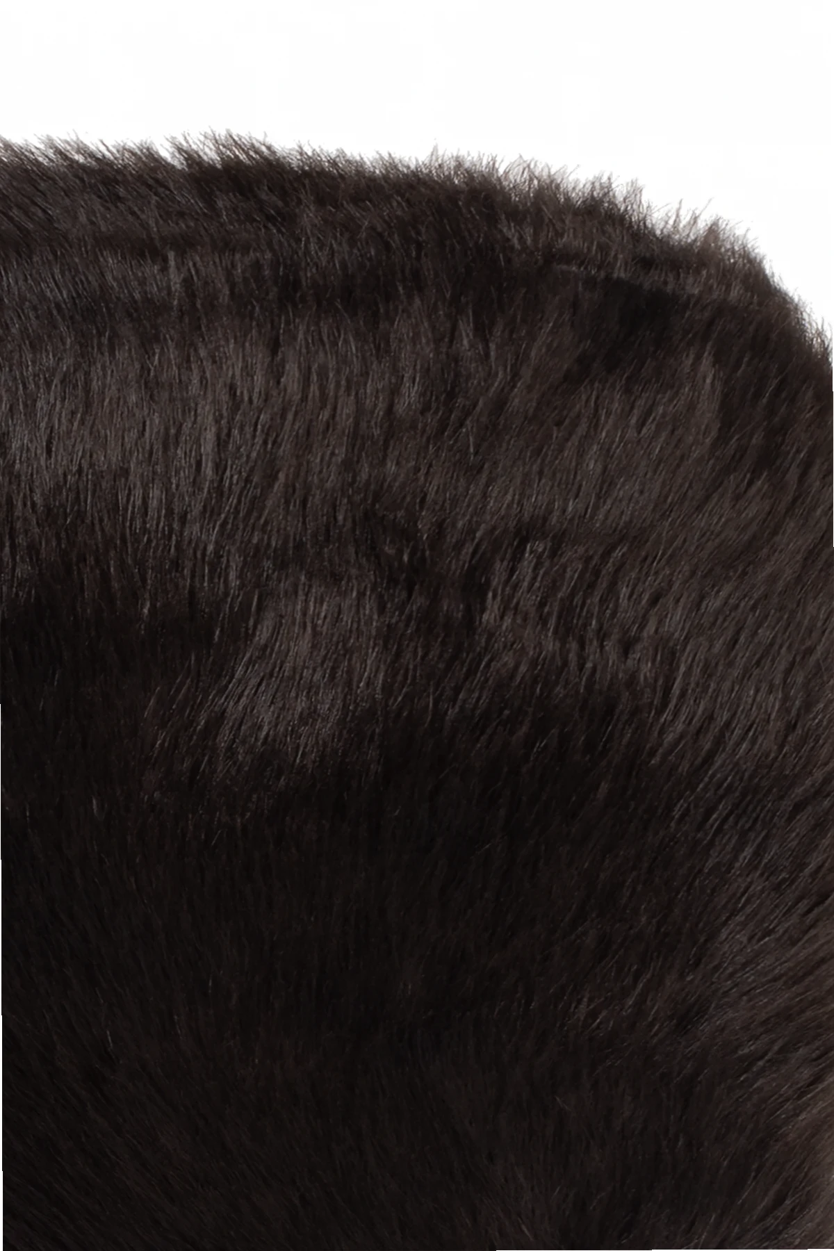 Experience the epitome of refined elegance with the exquisite Faux Fur Scarf by TOTEME, a brand synonymous with modern minimalism and urban sophistication. In a rich, dark brown hue, this scarf is meticulously crafted from luxurious faux fur, presenting a dense, soft texture that promises unparalleled comfort and warmth. Its rectangular shape with elegantly rounded corners adds a touch of classic charm, making it the perfect accessory for the cooler seasons. The absence of additional patterns or logos ensures a timeless, understated look that seamlessly complements any outfit. Designed by the progressive fashion house TOTEME, founded by the acclaimed fashion blogger Elin Kling and her partner Karl Lindman, this scarf embodies the brand\'s pragmatic and stylish aesthetic. Embrace a piece that not only offers functionality but also elevates your style effortlessly. Why Choose This Product? Luxurious Material: Made from high-quality faux fur (100% Polyester) that is soft to the touch and visually appealing. Elegant Design: The dark brown color and simple, classic design exude sophistication and timelessness. Versatile Accessory: Perfect for adding warmth and style to both casual and formal outfits. Discreet Branding: No visible logos or prints, ensuring a clean and elegant look. Exquisite Craftsmanship: Created by TOTEME, a brand known for its contemporary and practical fashion pieces.