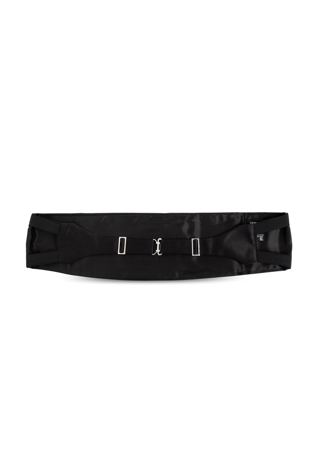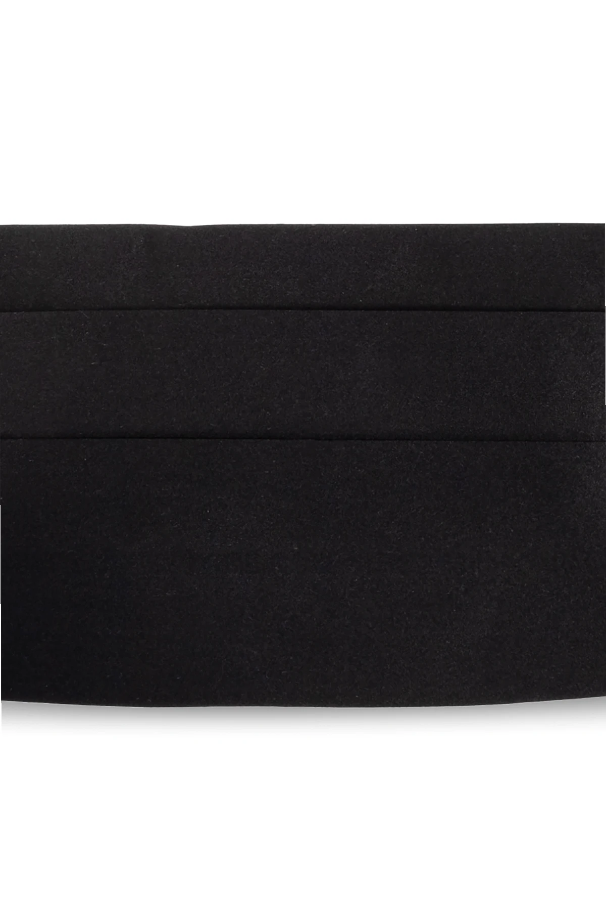 Introducing the epitome of sartorial elegance: Giorgio Armani\'s Silk Tuxedo Cummerbund. Crafted from the finest silk, this cummerbund is a testament to the designer\'s commitment to quality and timeless style. Its dominant black hue is accentuated by a smooth texture with a subtle sheen, reflecting the high caliber of silk utilized in its creation. The cummerbund boasts a classic, straight silhouette with distinctly defined edges, lending an air of sophistication and formal allure to any attire. Its minimalist design, devoid of any visible branding or embellishments, underscores its exclusivity and versatility as a high-class accessory for men\'s formal wear. This piece is designed to complement a tuxedo, enhancing the overall elegance and attention to detail of the ensemble. On the reverse, the cummerbund features adjustable buckles, allowing for a tailored fit to the wearer\'s physique. These buckles are discreet and color-coordinated, maintaining a cohesive appearance. A closer inspection, as revealed in the detailed photograph, showcases the silk\'s uniform and flawless texture, free of any imperfections, highlighting the exceptional craftsmanship of this accessory. Why Purchase This Product? Exquisite Material: 100% premium silk offers unparalleled smoothness and sheen. Timeless Elegance: Classic design and black color ensure versatility and enduring style. Adjustable Comfort: Tailored fit achievable through subtle, elegant buckles. Exclusivity: Minimalist, logo-free design speaks to its high-class exclusivity. Giorgio Armani Quality: A piece that carries the prestige of the Giorgio Armani brand, synonymous with luxury and craftsmanship.