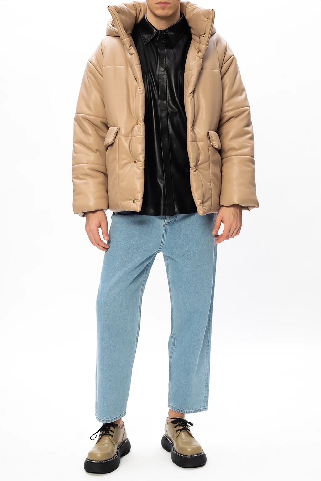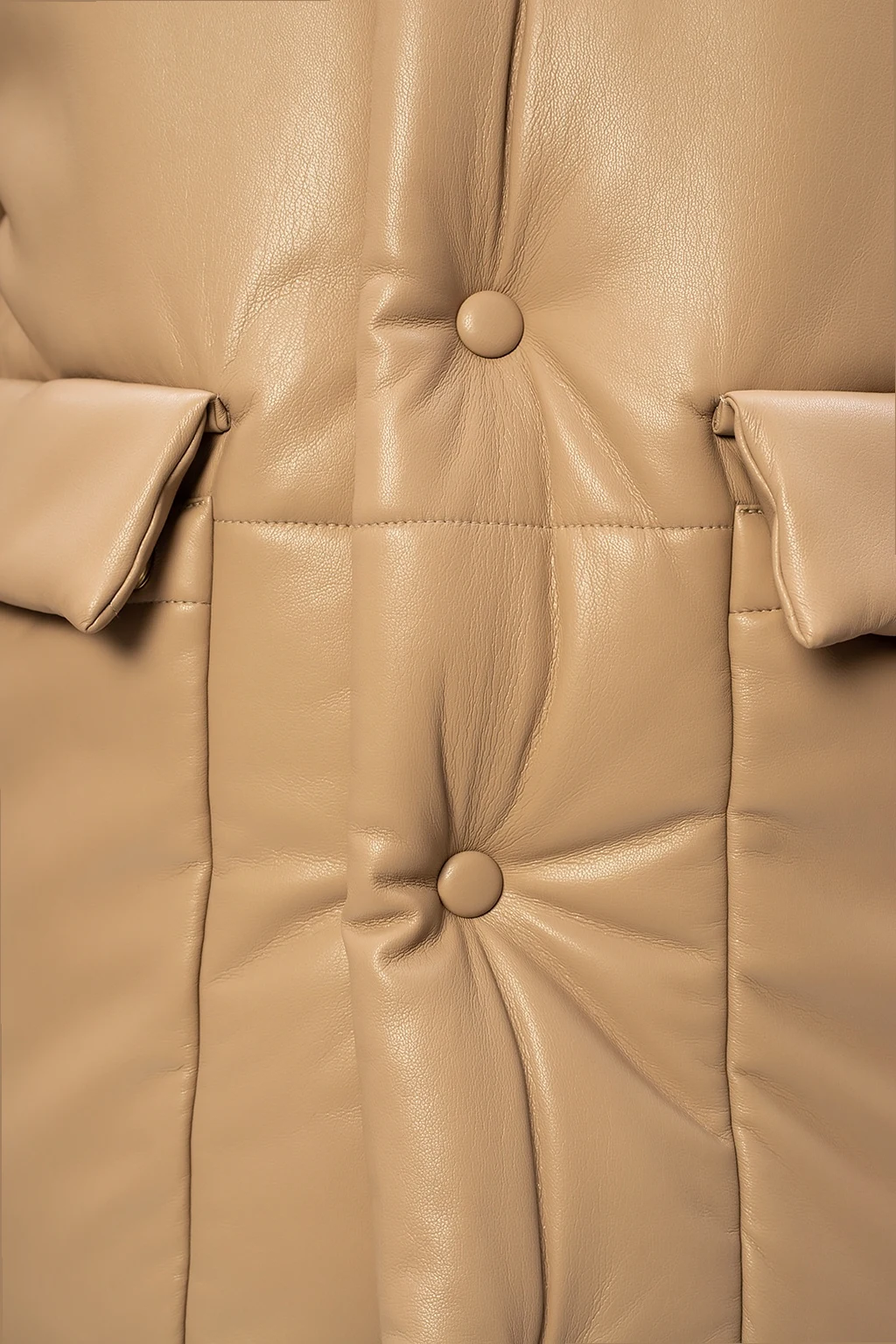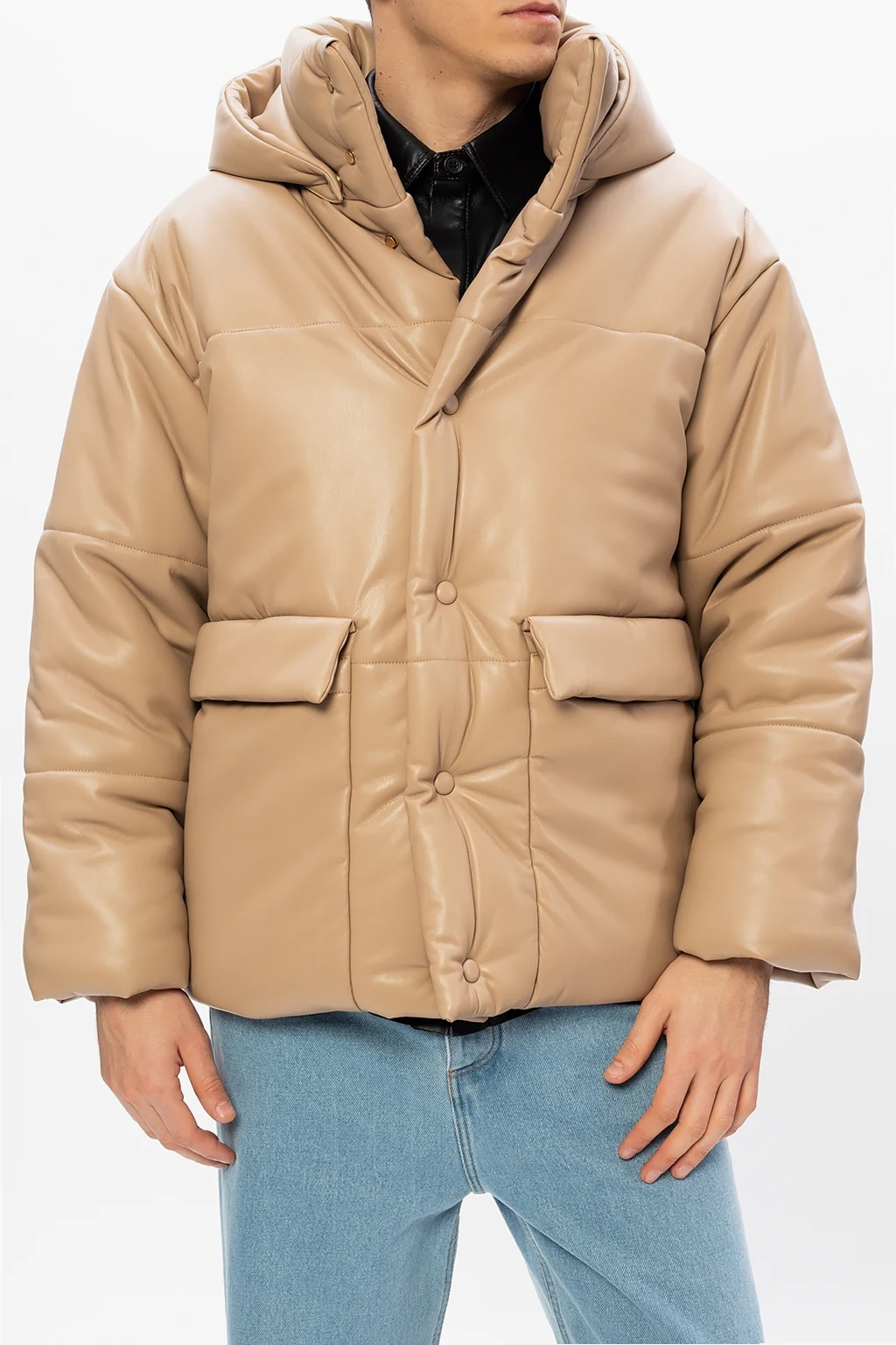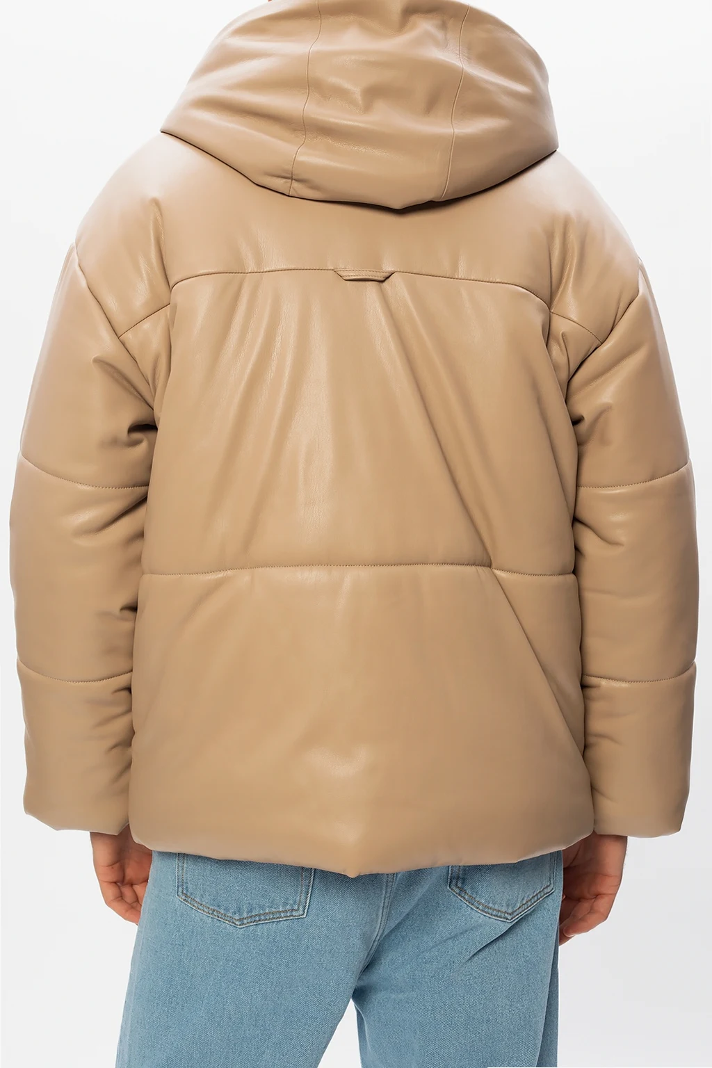 Light brown hooded quilted jacket from Nanushka. Fastened with snaps, this long sleeve design is complete with two snap-fastened flap pockets.