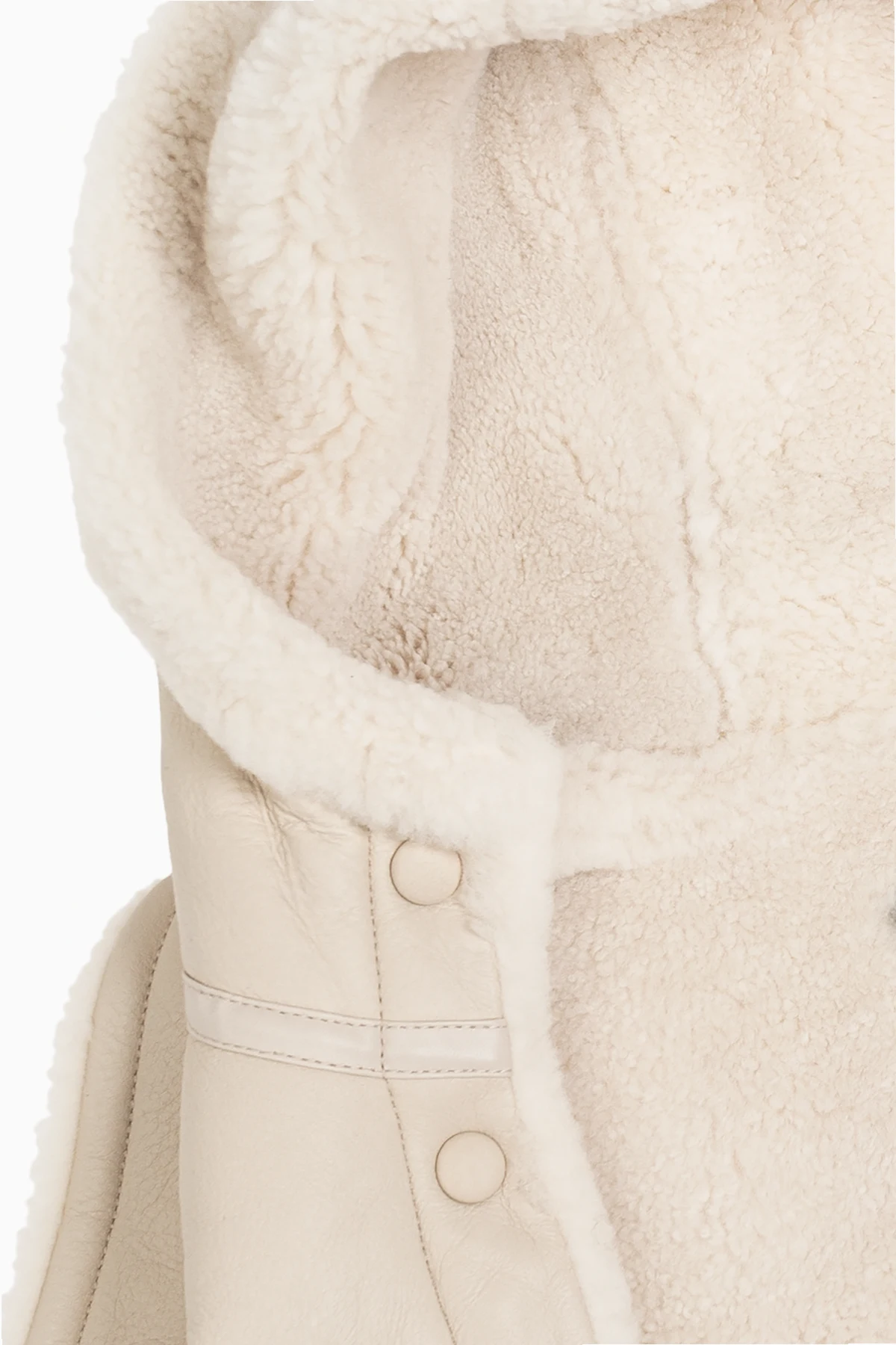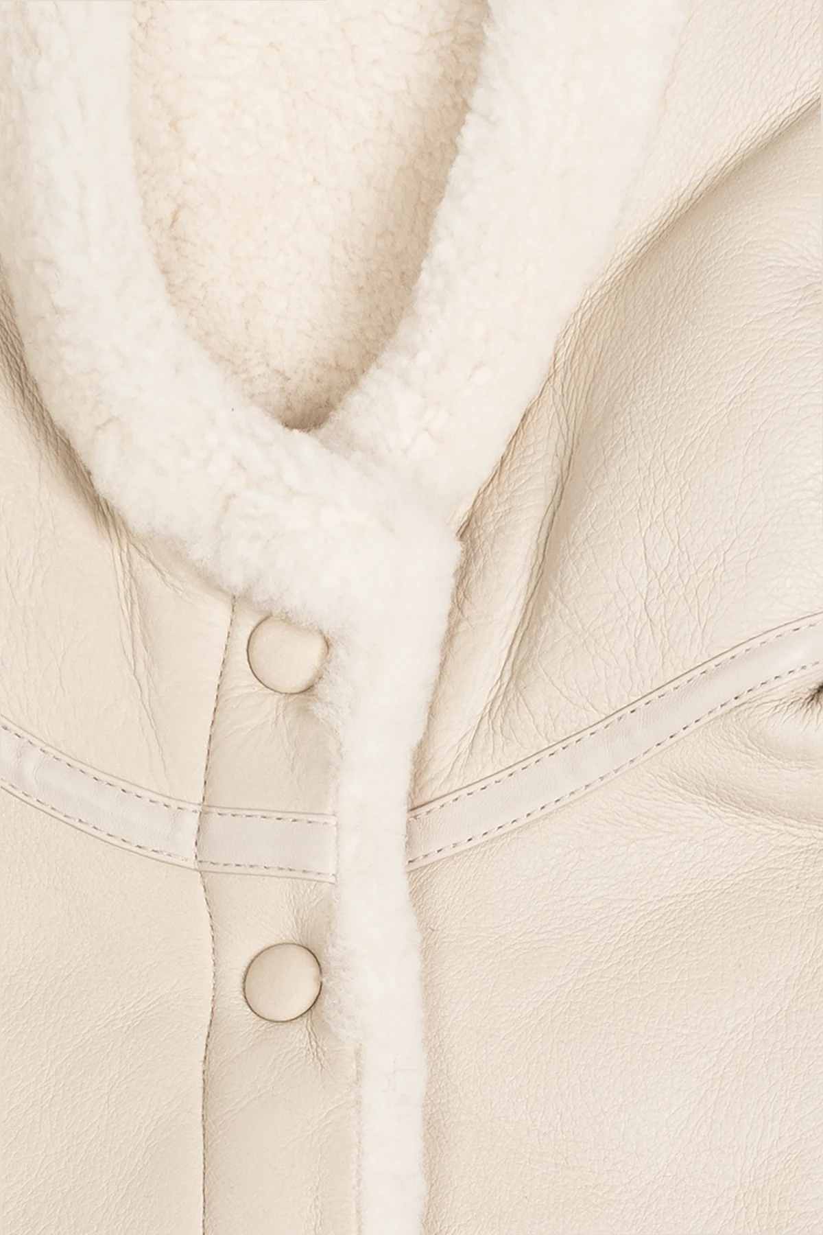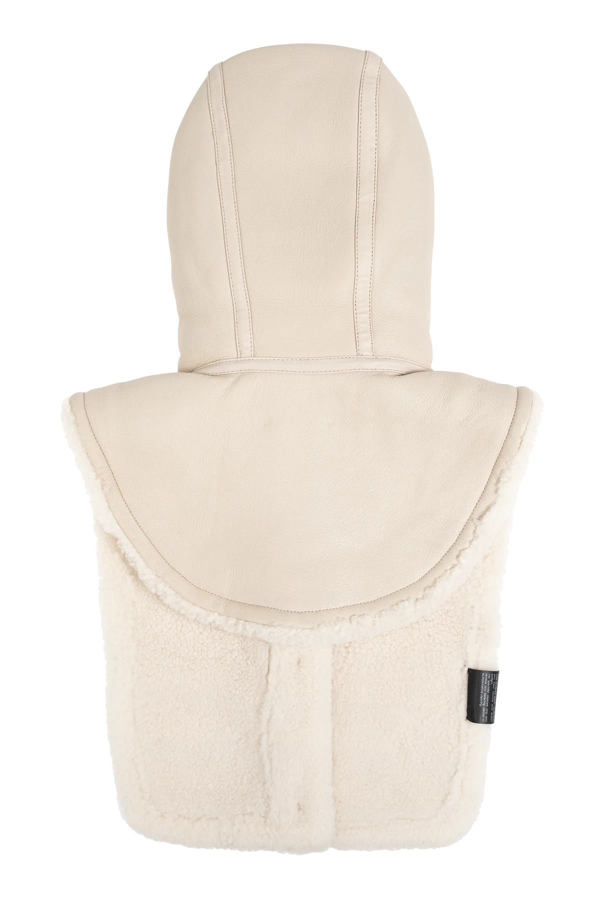 Introducing the Insulated Hood from the exclusive collection by Yves Salomon. Presented in a sophisticated cream hue, this hood seamlessly marries elegance with functionality. Designed for the discerning connoisseur, it is the epitome of luxurious winter wear. Crafted with meticulous attention to detail, the exterior is made from premium leather, providing a polished and refined look. The interior is lined with soft, plush sheepskin wool, ensuring unparalleled warmth and comfort. The design features a wide opening that adeptly shields the head and neck from the cold, while the flared lower section envelops the shoulders, creating an additional barrier against the elements. The hood’s simplistic aesthetic is accentuated by visible stitching, adding both structure and durability. Front snap buttons keep the hood securely in place, and a discreet label bearing the designer\'s logo at the back underscores its exclusivity. This versatile piece is not only an investment in style but also in superior craftsmanship. Why Choose This Product? Exceptional Warmth: Lined with plush sheepskin wool for ultimate insulation. Luxurious Materials: Made from high-quality leather and sheepskin wool. Elegant Design: Simple yet sophisticated, suitable for various styles. Exclusive Designer: Created by the renowned Yves Salomon, a leader in luxury winter apparel. Durable Construction: Thoughtfully designed with visible stitching and secure snap buttons.