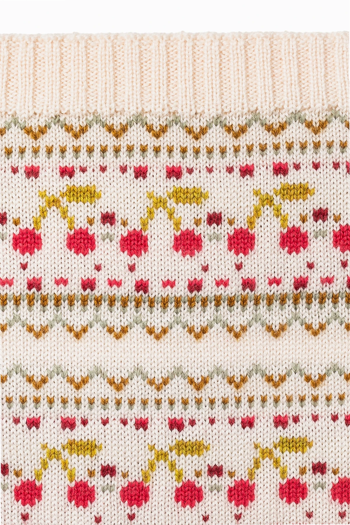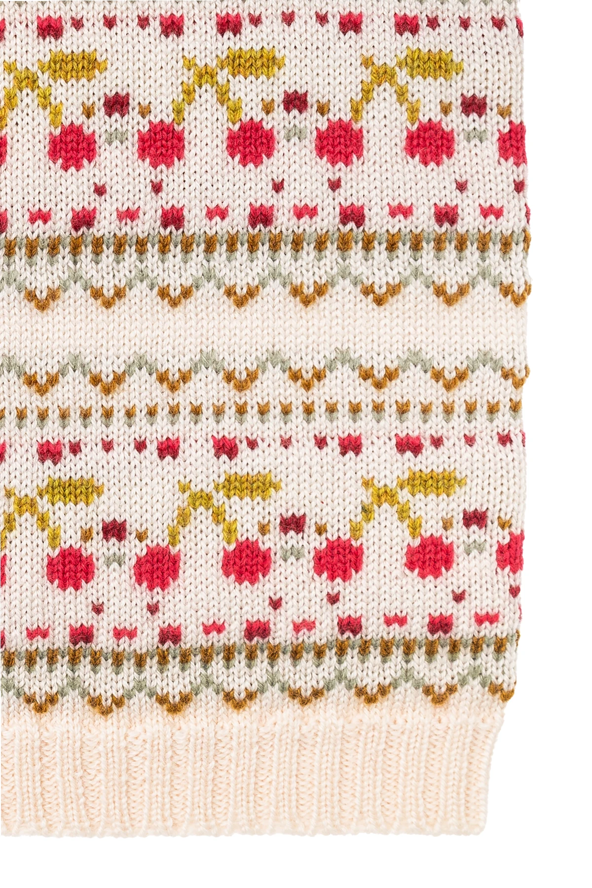 Introducing the Bothilde Wool Scarf from our esteemed KIDS ACCESSORIES collection, meticulously crafted by the renowned French brand, Bonpoint. This exquisite scarf, designed specifically for children, epitomizes the perfect blend of functionality and aesthetic appeal. Adorned in a delicate shade of light pink, the scarf features a charming, symmetrically repeated pattern of floral and geometric motifs in vibrant hues of red and green. This enchanting design is subtly set against the soft pink backdrop, creating a delightful, playful look that is sure to captivate. Fashioned from a premium blend of wool and cashmere, the Bothilde scarf promises unparalleled warmth and softness, making it an ideal choice for cooler days. The rectangular shape, complemented by ribbed, elasticated cuffs at both ends, ensures a snug and comfortable fit around your child\'s neck. Every detail of the scarf is crafted with precision, reflecting Bonpoint\'s commitment to high-quality production and timeless, luxurious aesthetics. The intricate pattern and flawless construction make this scarf a unique and delightful addition to any child\'s wardrobe. Why Choose This Product? Exquisite design featuring floral and geometric patterns Luxurious blend of wool and cashmere for ultimate comfort Elasticated ribbed cuffs for a secure and comfortable fit Crafted by the prestigious French brand, Bonpoint Perfect for adding a touch of elegance and warmth to any outfit