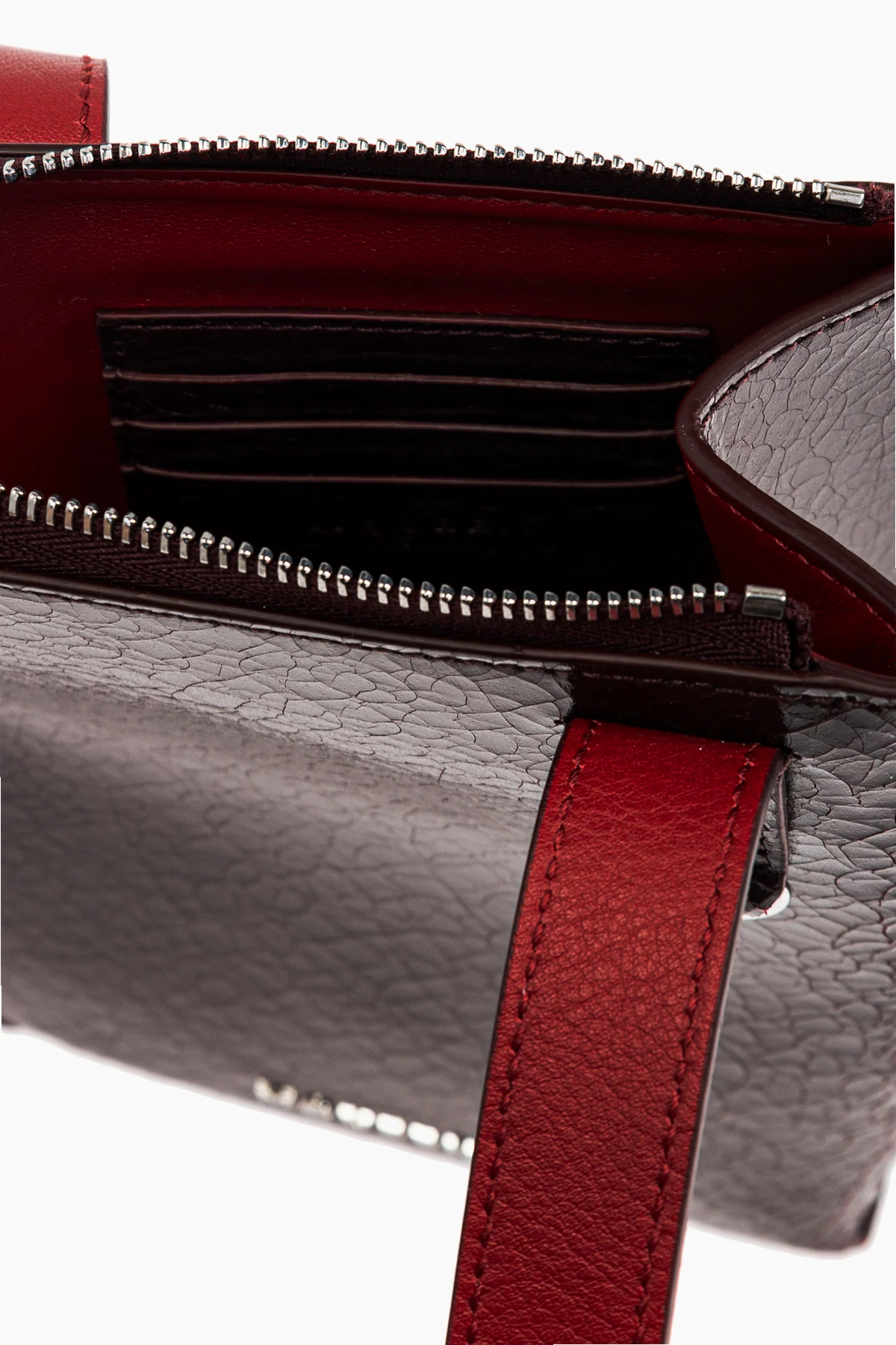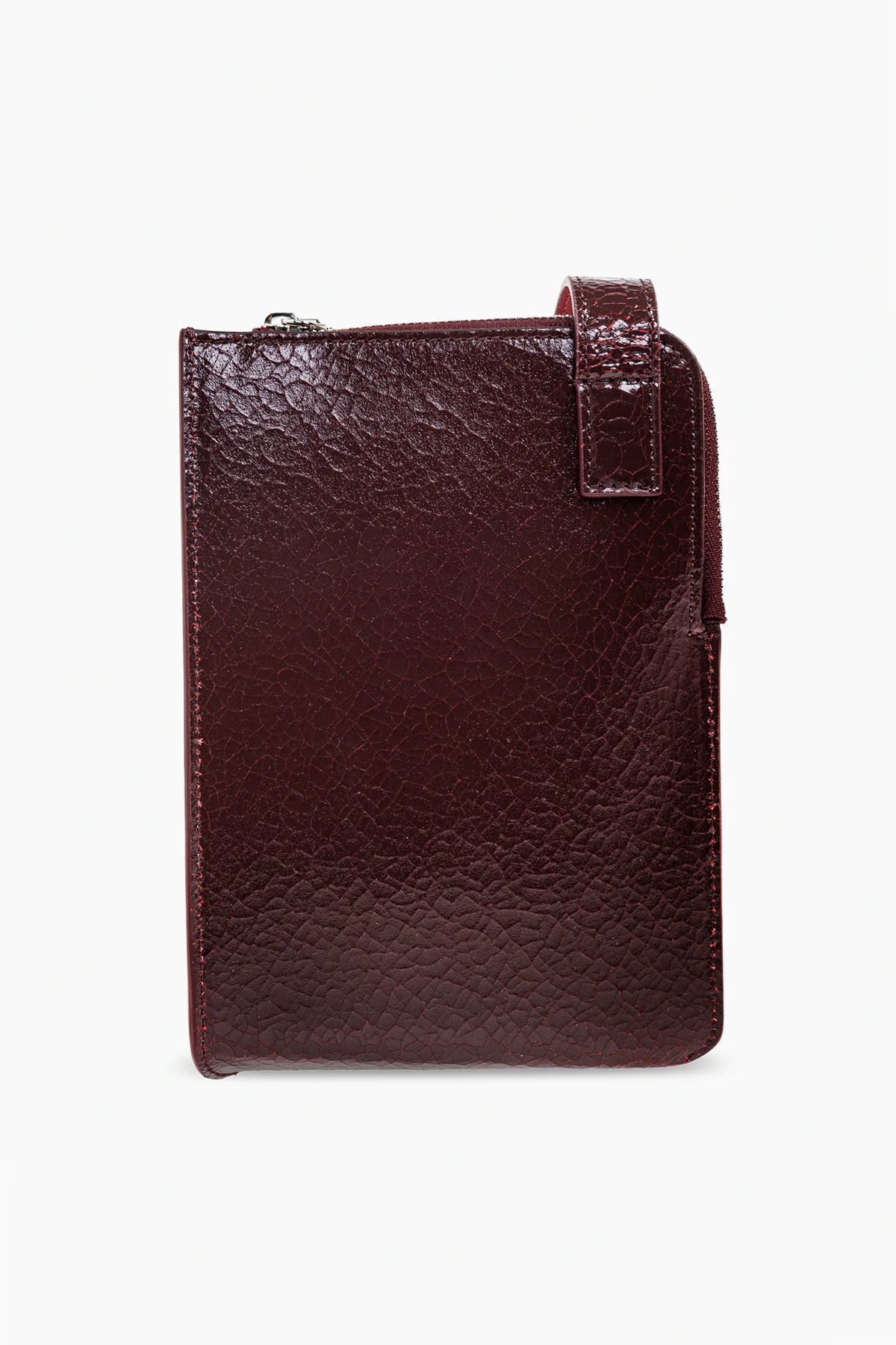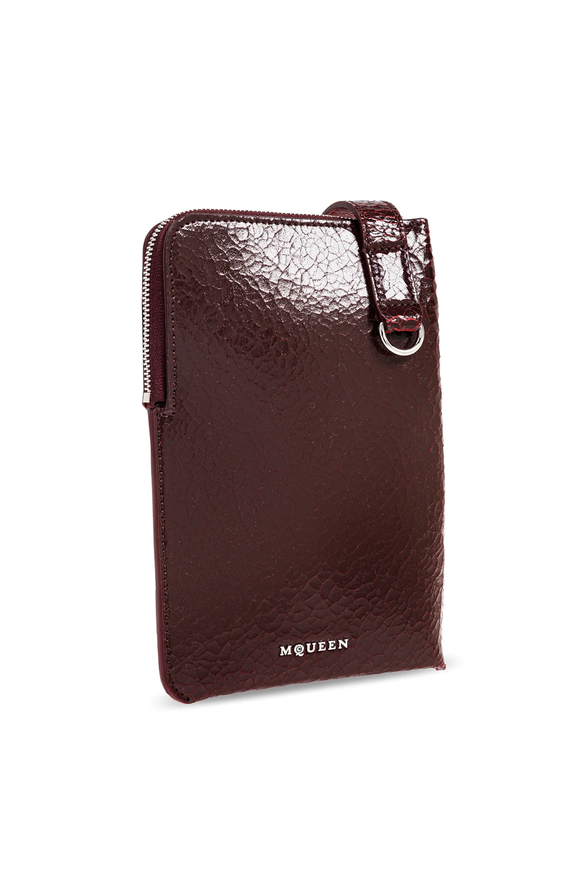 Introducing the T-Bar Sling Phone Case, an exquisite accessory from the prestigious Alexander McQueen collection. Crafted with meticulous attention to detail, this case is fashioned from calfskin in a rich burgundy hue, exuding sophistication and exclusivity. The exterior boasts a textured leather-like finish with a distinctive pattern, augmented by a metallic MCQUEEN emblem at the base, reinforcing its designer heritage. A secure zipper closure ensures your phone remains safe, while a side strap with a metal ring offers the option to attach a lanyard or additional accessory. Inside, the case is elegantly lined in a complementary shade, featuring compartments for cards, enhancing its practicality without compromising on style. This phone case is the epitome of fashion-forward elegance, perfect for those who appreciate luxury and contemporary design. Why Choose This Product? Crafted from premium calfskin for a luxurious touch. Distinctive textured finish that stands out. Secure zipper closure for added protection. Convenient card slots for enhanced functionality. Designed by the iconic Alexander McQueen.