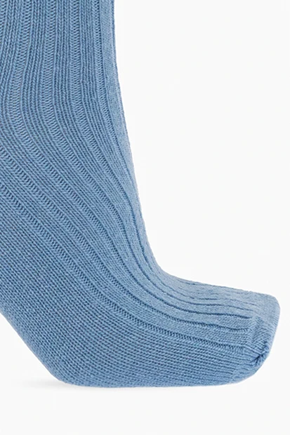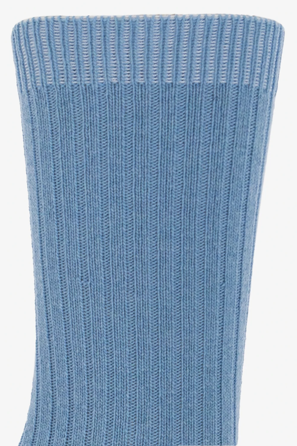 Blue socks from Hanro. Crafted from a wool and cashmere blend with a ribbed texture, this pair features elasticized cuffs.