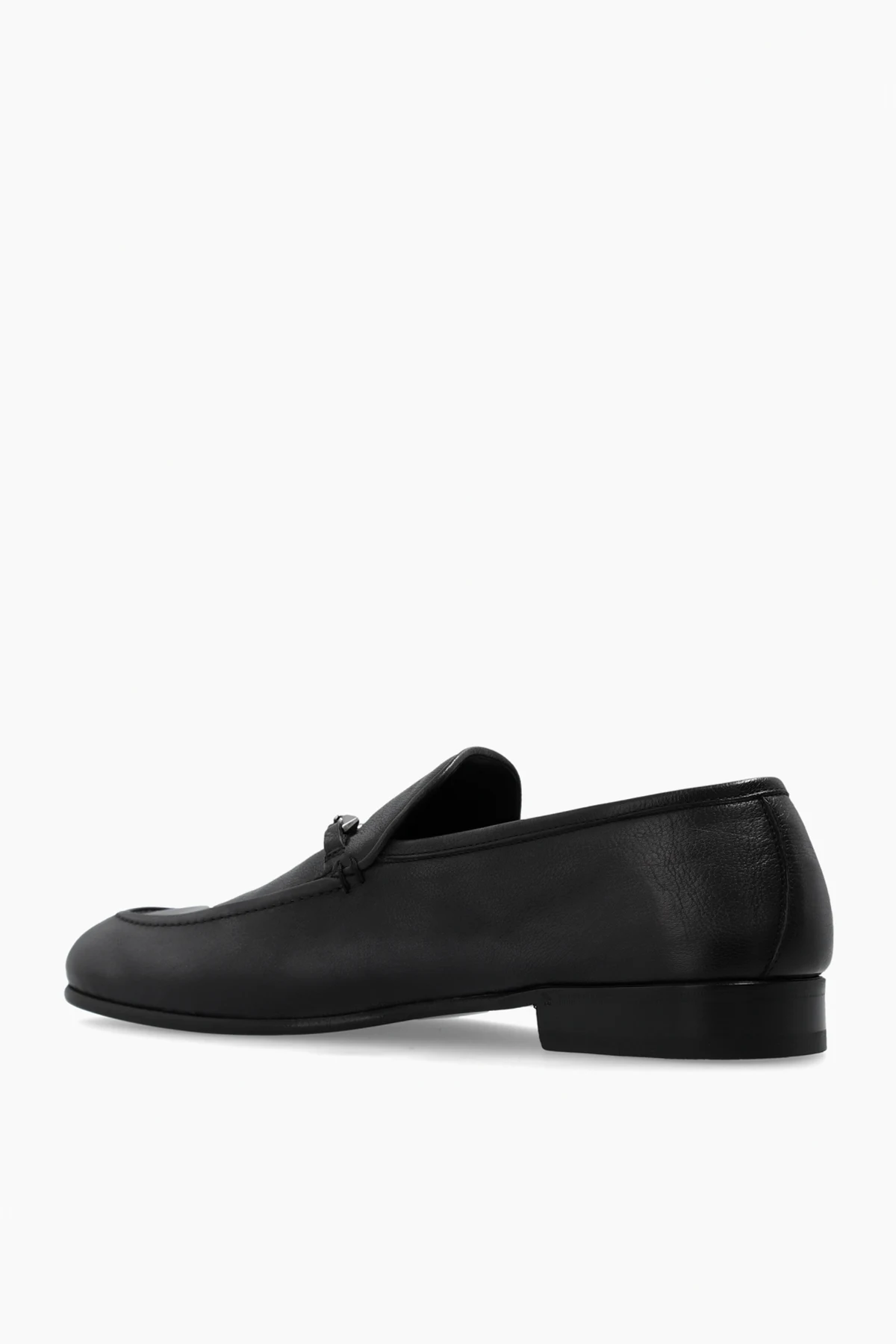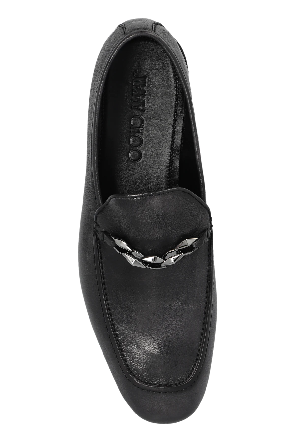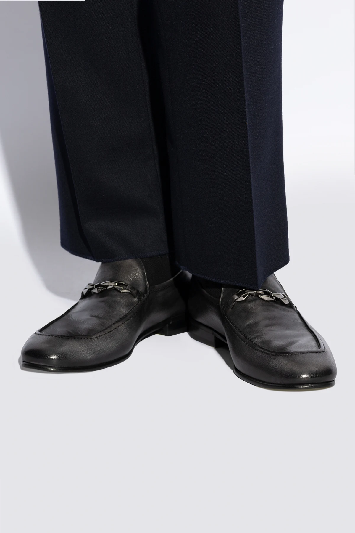 Introducing the Jimmy Choo Marti Loafers, a manifestation of refined elegance and timeless design. Crafted with utmost precision, these loafers feature a pristine, 100% leather construction, offering both durability and a luxurious feel. The sleek black hue, complemented by a smooth texture, ensures these shoes are versatile enough to grace any ensemble with a touch of sophistication. The rounded toe and low, flat heel underscore the classic loafer silhouette, making them a perfect choice for those who value comfort without compromising on style. A distinctive touch is added by the decorative chain across the vamp, which not only enhances the elegance of these shoes but also serves as a nod to the meticulous attention to detail synonymous with Jimmy Choo designs. Inside, the presence of the designer\'s signature or logo subtly marks each pair as a genuine article of luxury. This understated yet significant detail affirms the authenticity and exclusive craftsmanship of the Marti Loafers, making them a must-have for aficionados of high-end fashion. Why Purchase the Jimmy Choo Marti Loafers? Elevated by a vintage effect, offering a timeless appeal. Exceptional comfort paired with a sleek, elegant design. Enhanced with a decorative chain, adding a unique charm. Signature branding confirms authenticity and designer quality.