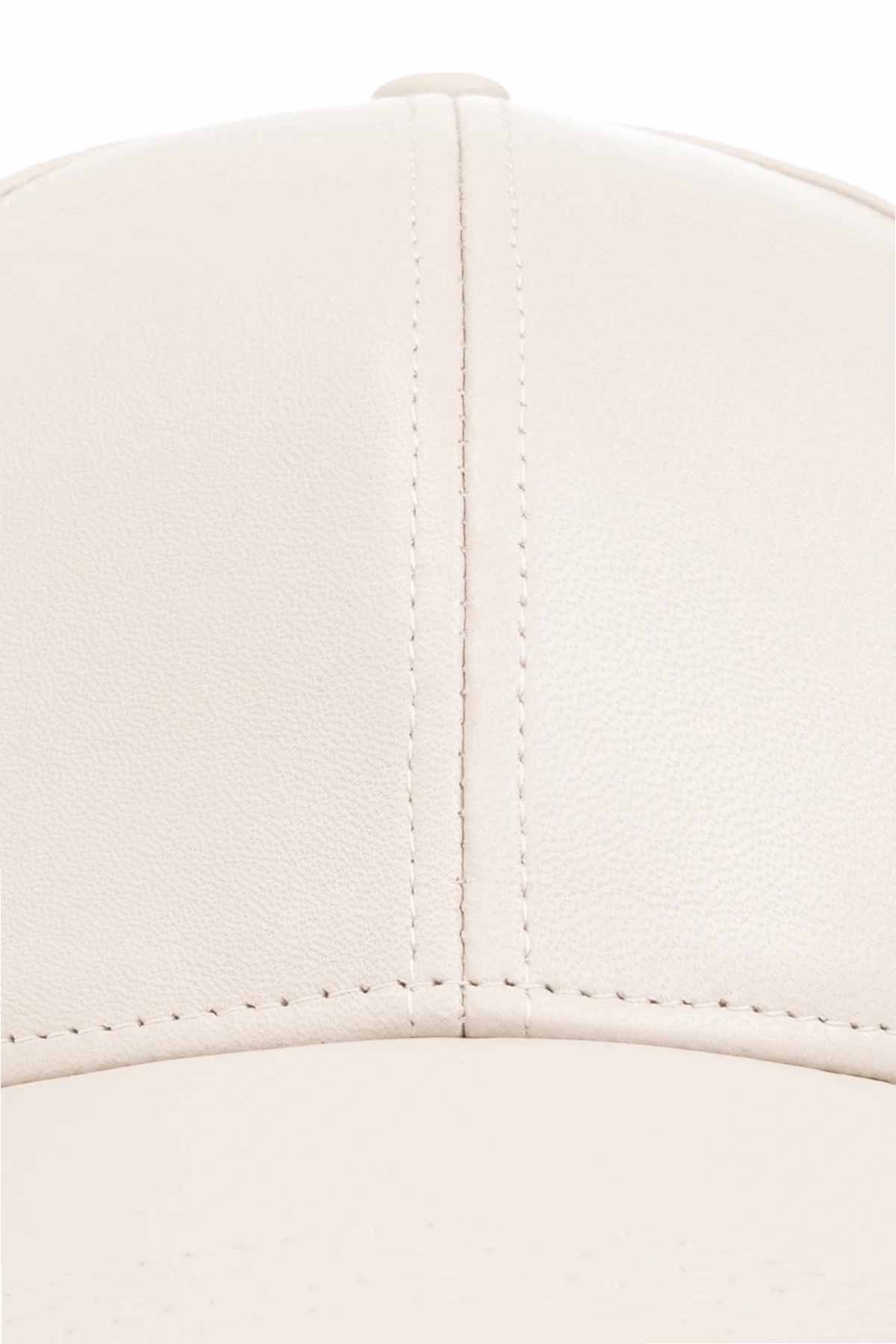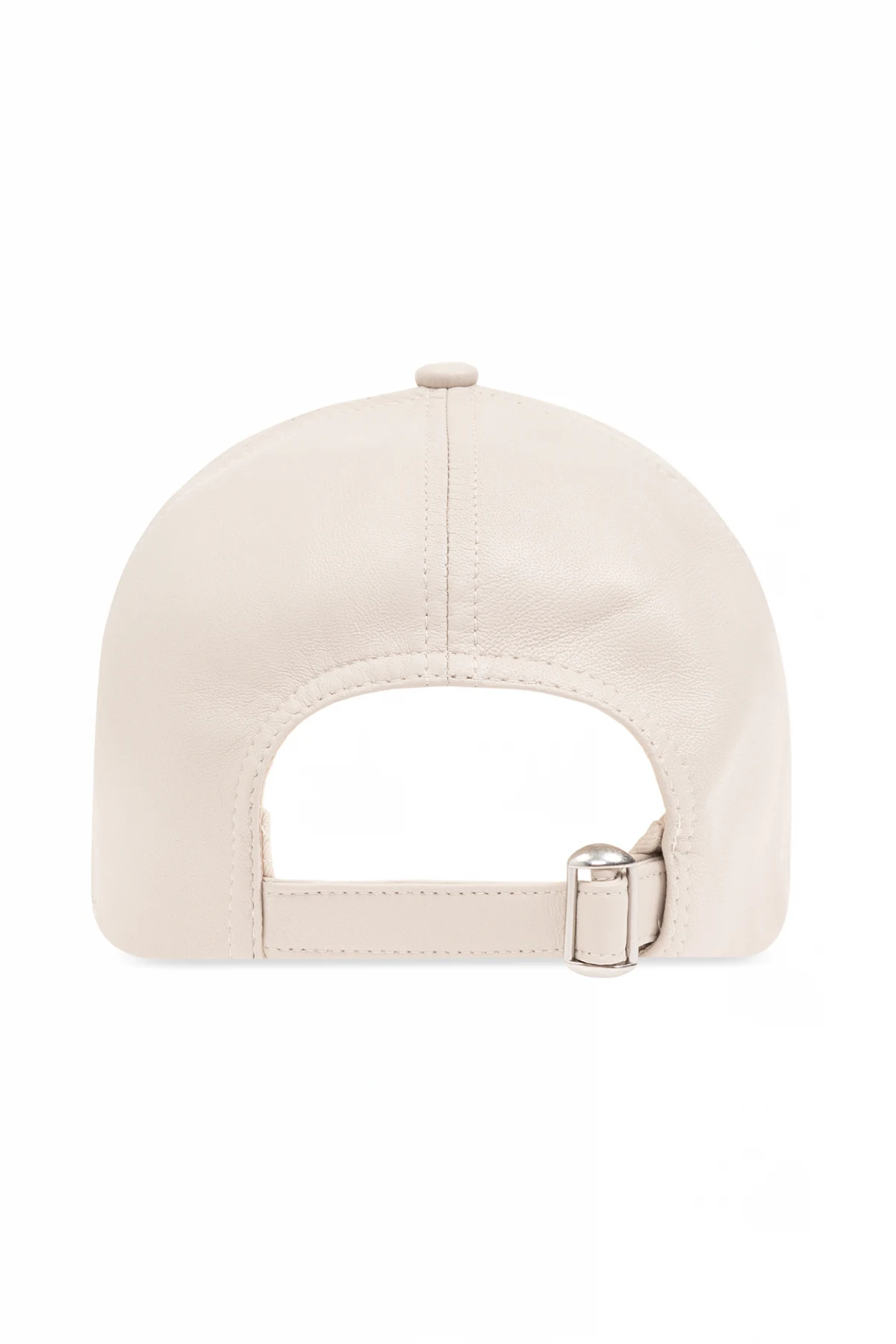 Cream baseball cap from Yves Salomon. Made of lamb leather, this item features an adjustable buckle strap at the back.
