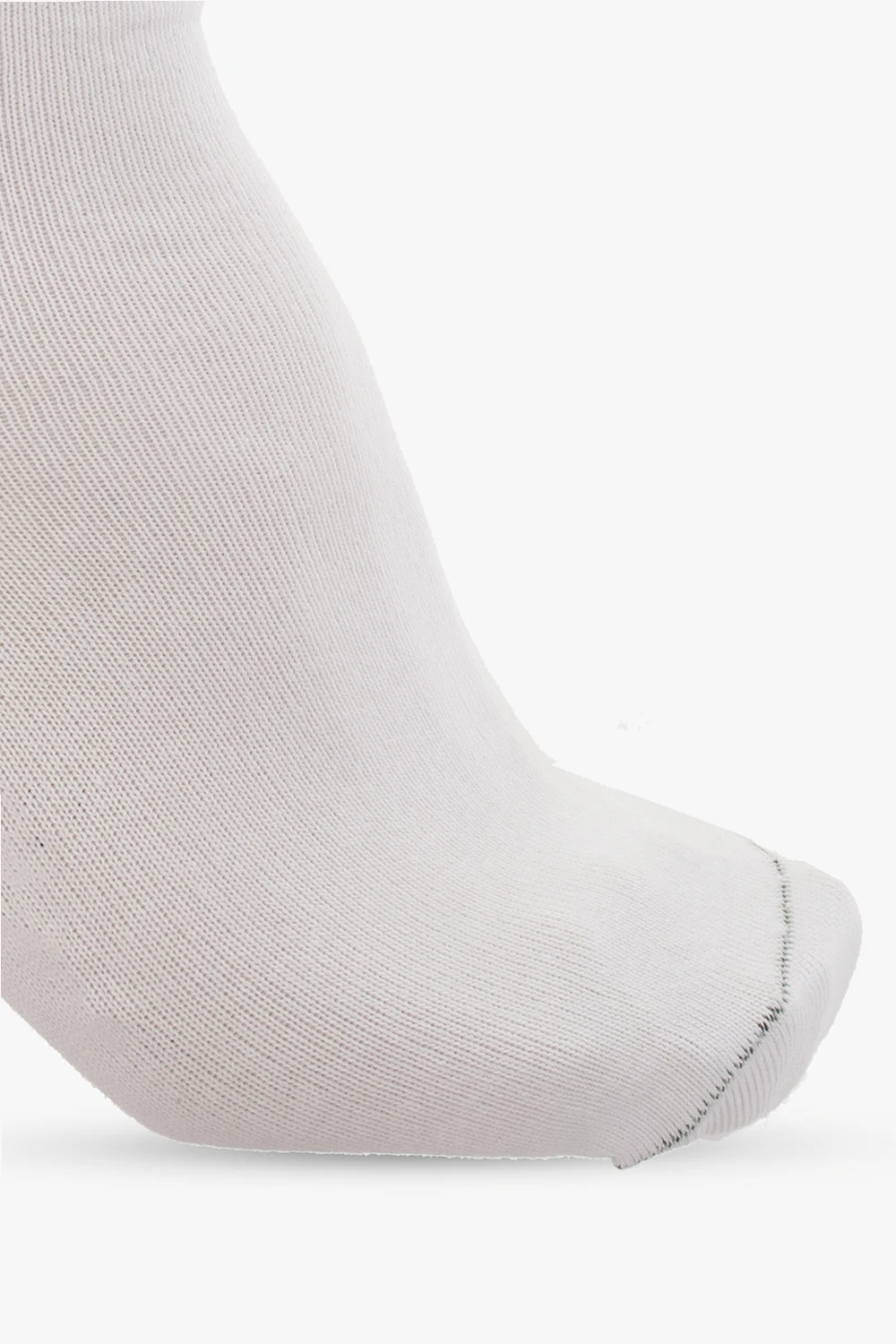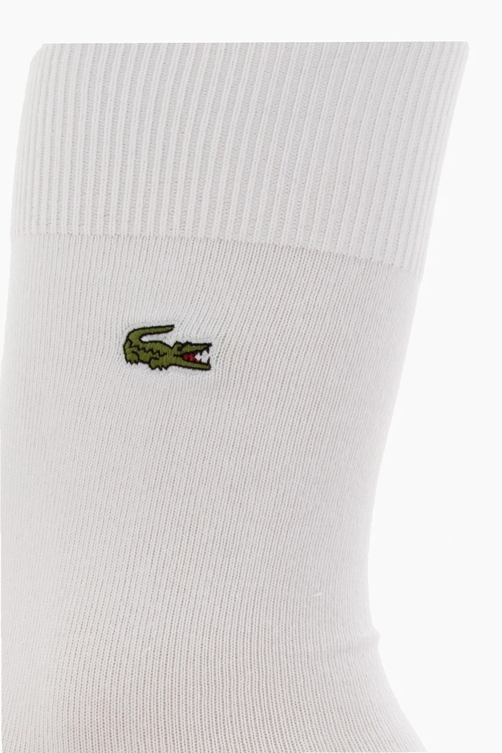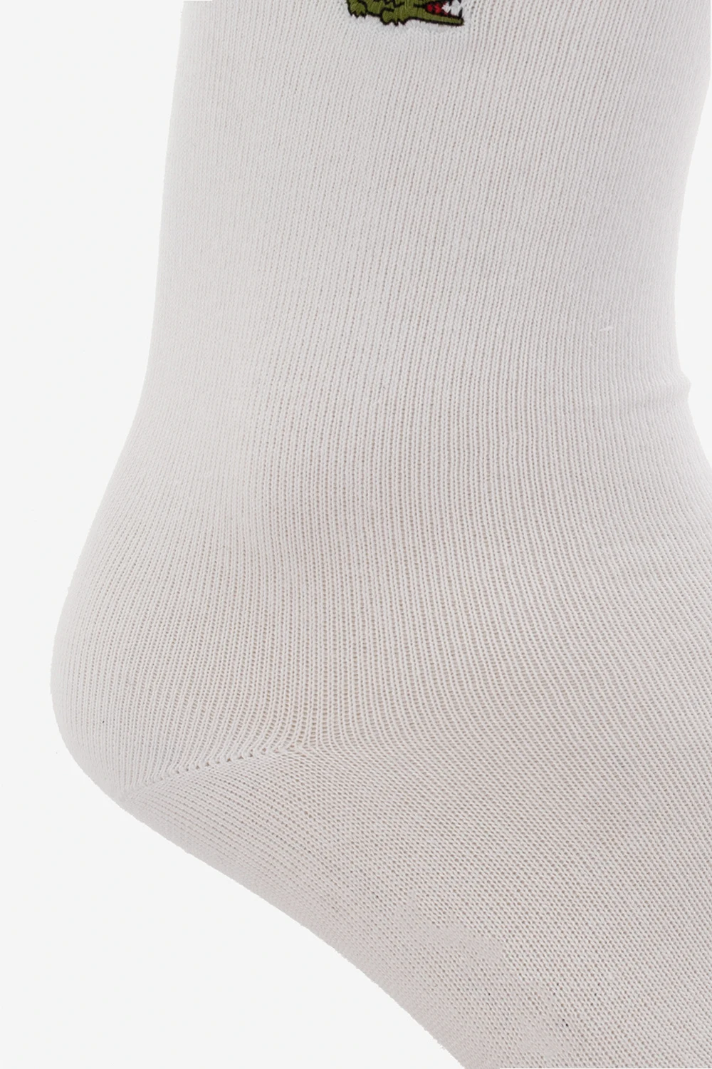White socks from Lacoste. Made of cotton, this pair features a logo patch and ribbed cuffs.
