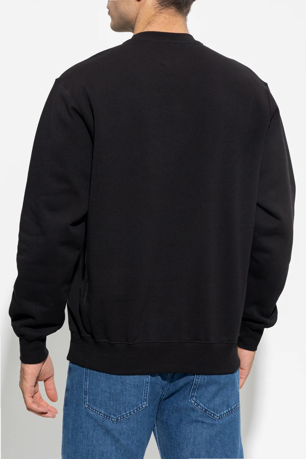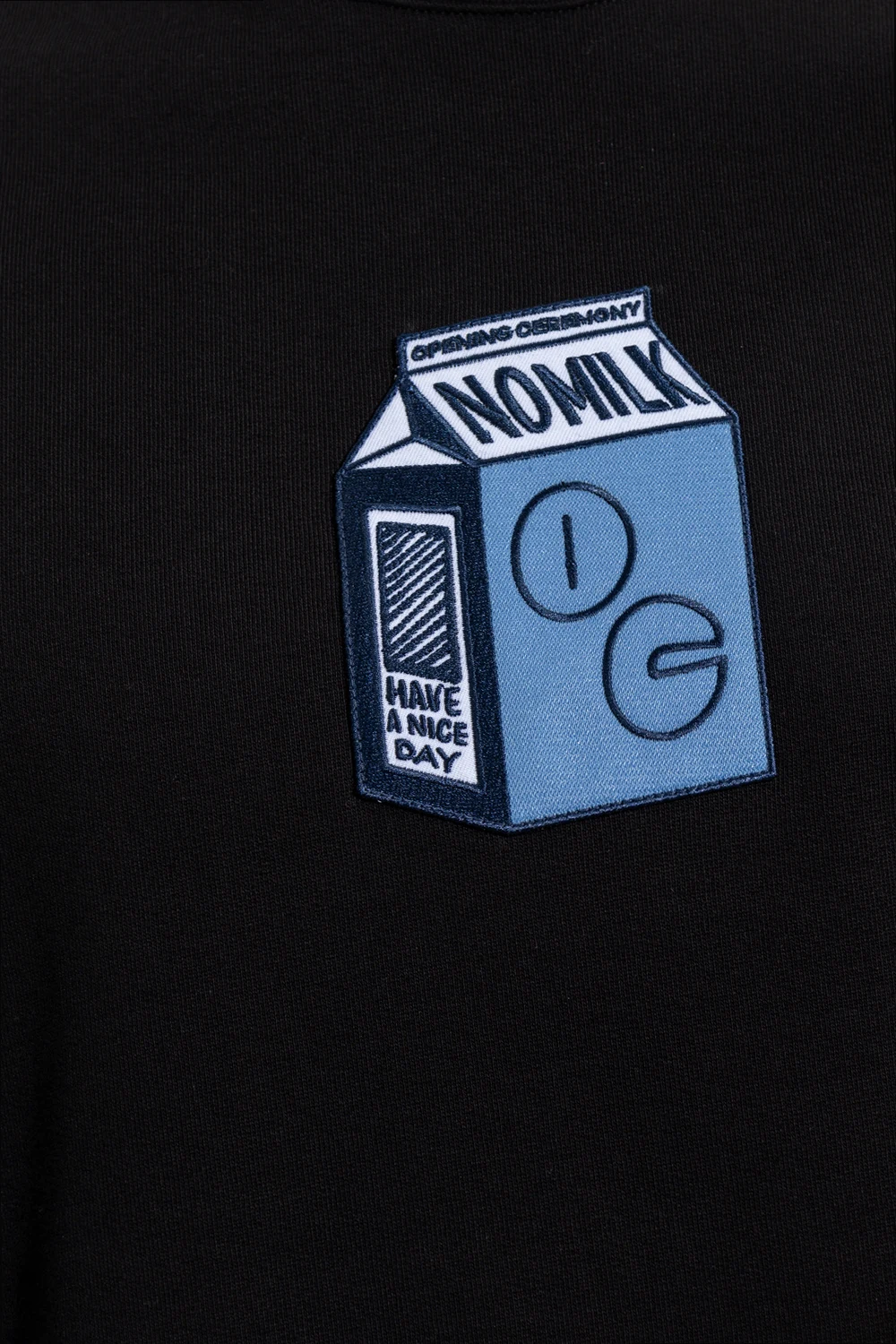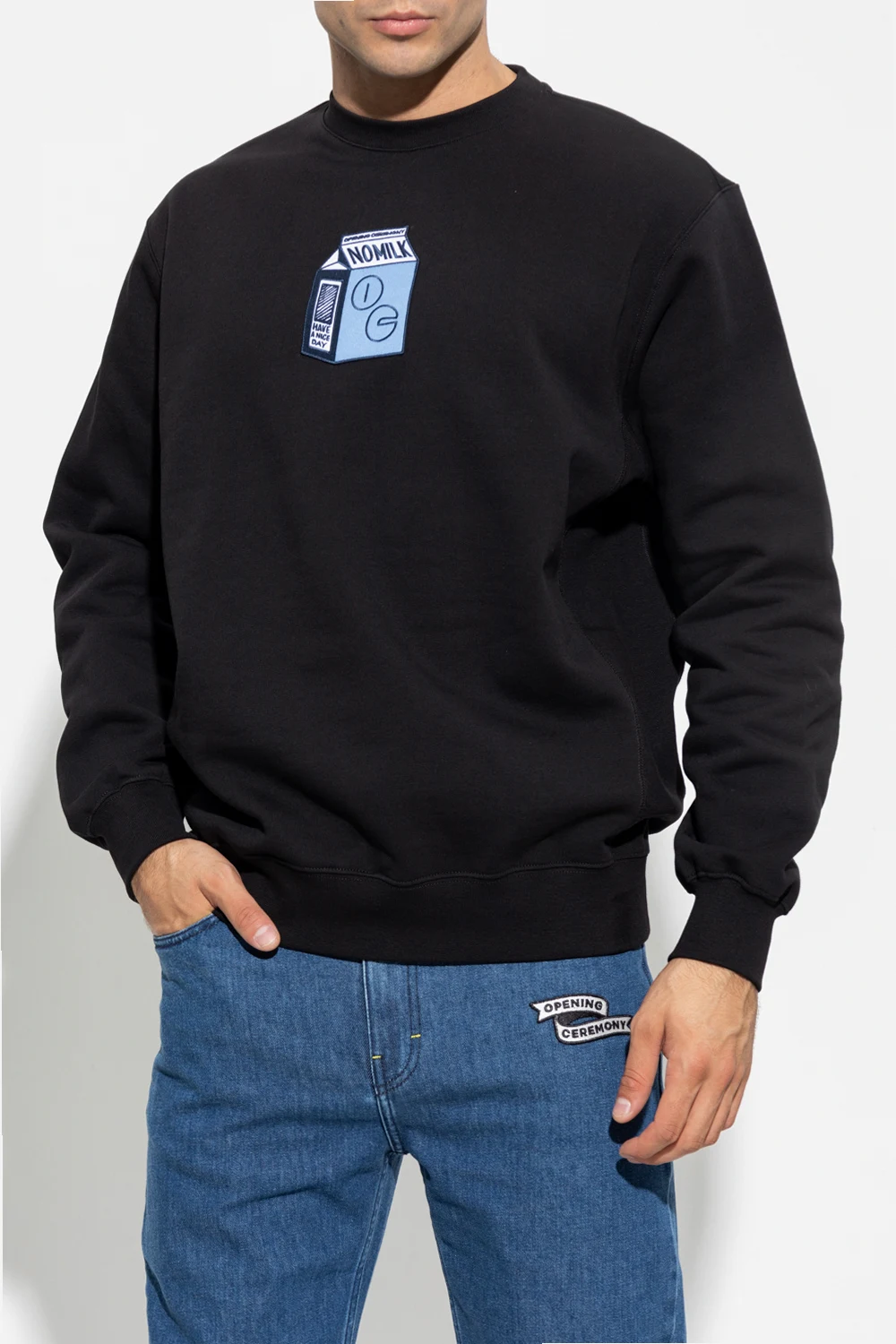 Black sweatshirt from Opening Ceremony. Made of cotton, this long sleeve design features a blue, white and navy logo patch and ribbed trims at the hem and cuffs.