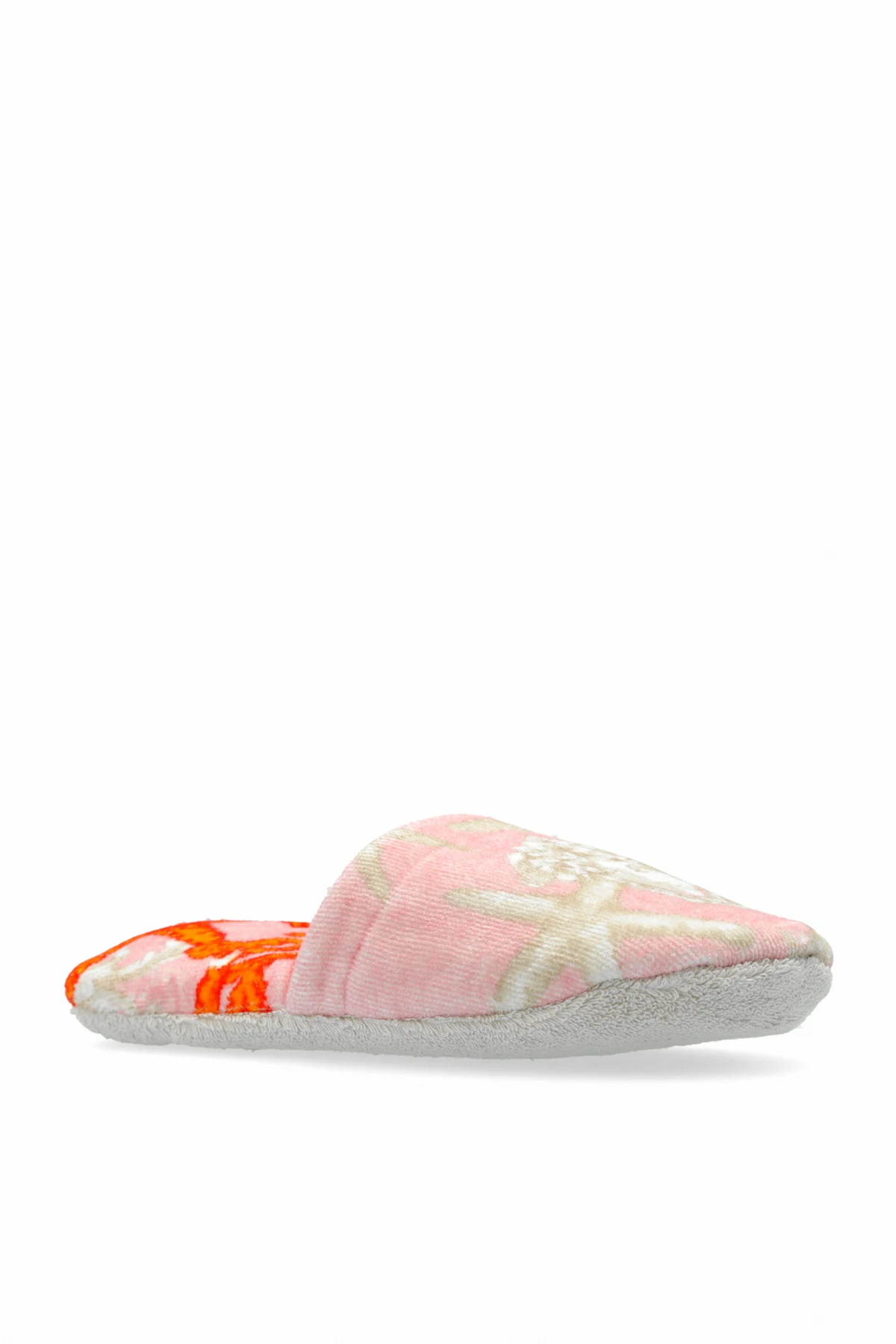 Introducing the epitome of luxury for your at-home wardrobe: the Versace Home Medusa Head Slippers. Crafted with the utmost attention to detail, these slippers are a testament to the craftsmanship and iconic style of Versace. Rendered in a captivating shade of pink, they boast a plush, 100% cotton composition, ensuring an unparalleled level of comfort. The distinctive Medusa head pattern, intertwined with maritime elements like starfish, adorns these slippers, making them a masterpiece of design. The classic slip-on silhouette, with its rounded front, allows for effortless wear, blending ease with elegance. Whether showcased alone or as part of a sophisticated ensemble with a matching robe, these slippers are a striking statement of luxury. Why Purchase This Product? Exclusive Design: The unique Medusa head and sea-life pattern set these slippers apart, offering a distinctive touch to your home attire. Unmatched Comfort: Made from soft, plush 100% cotton, they provide comfort and warmth for all-day wear. Iconic Branding: As part of the Versace Home collection, they bring a piece of high-fashion luxury into your personal space. Easy to Wear: Their slip-on design ensures convenience and ease, making them perfect for relaxed, stylish lounging at home.