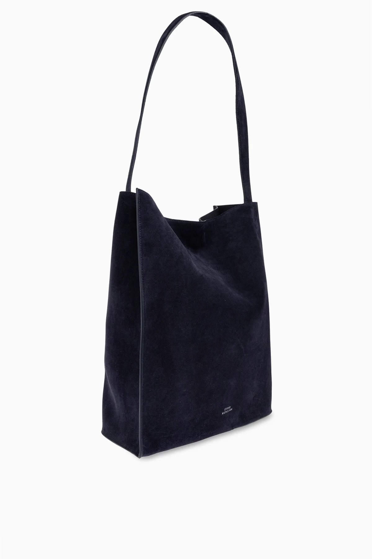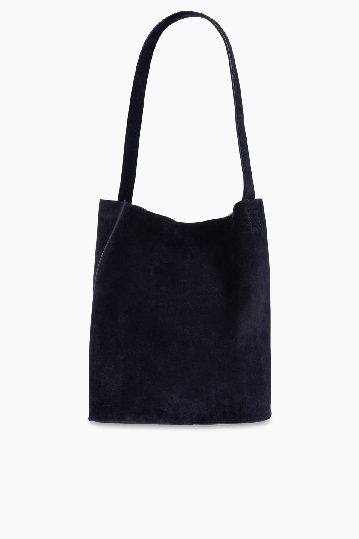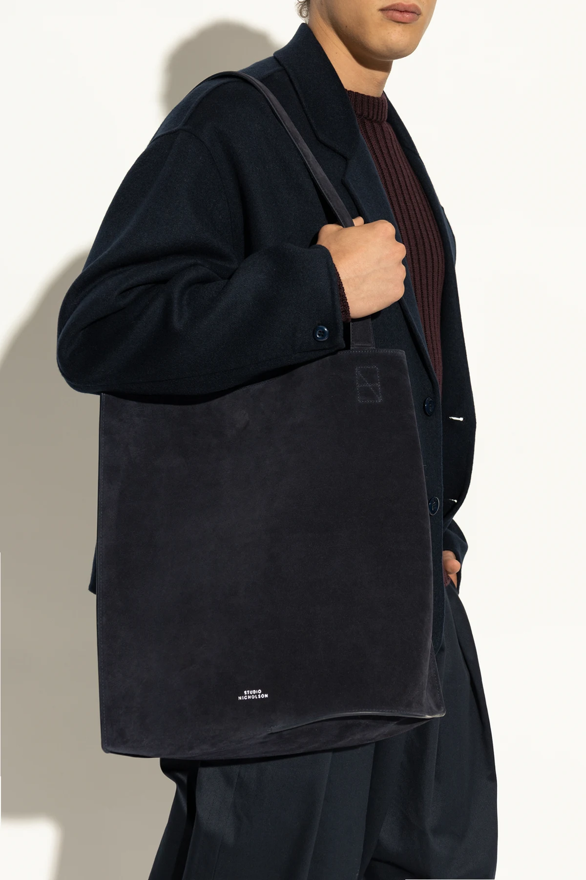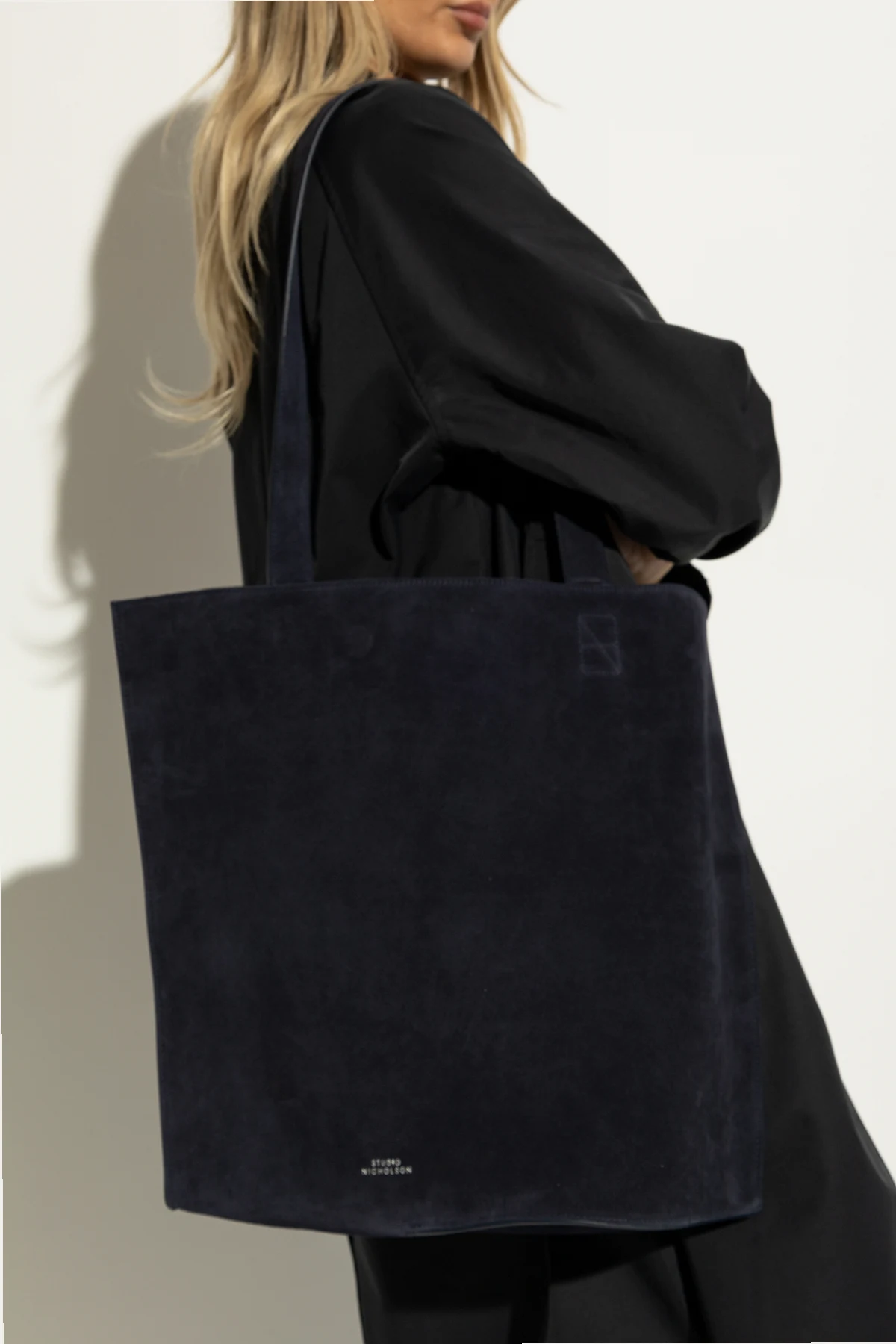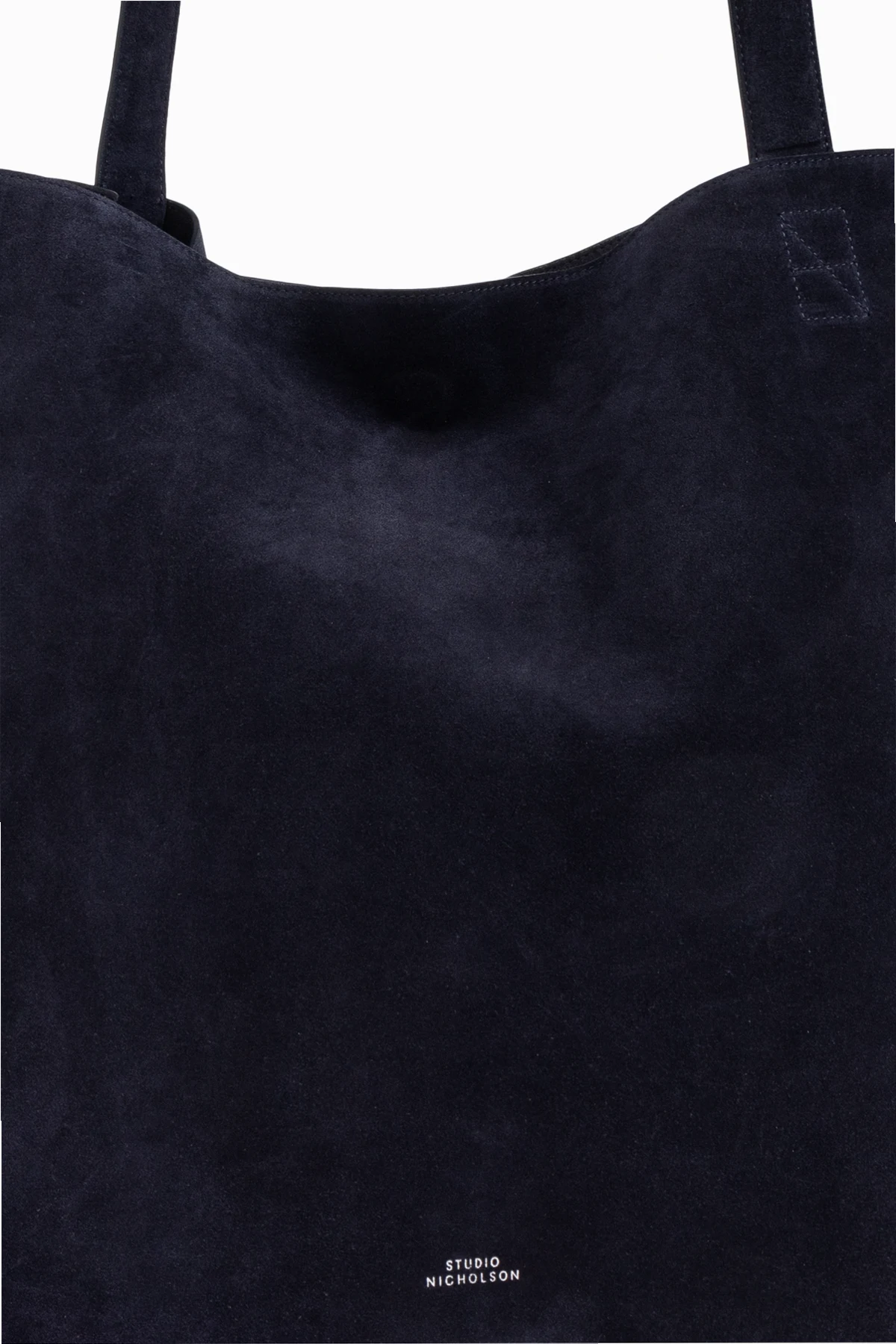 Experience refined sophistication with the ‘Dublet’ Shopper Bag by Studio Nicholson. Expertly crafted from premium calfskin suede, this remarkable accessory boasts a classic, generously sized rectangular silhouette, complemented by a wide, flat base to elegantly accommodate your essentials. The sumptuous navy hue, both deep and discerning, delivers timeless versatility, seamlessly pairing with any wardrobe. Distinguished by a plush, matte finish, the suede’s velvety texture radiates exclusivity and elevated taste. A discreet white “STUDIO NICHOLSON” logo, placed subtly at the base, exudes understated luxury, while the meticulous design remains unisex and effortlessly contemporary. Why choose this product? Impeccable craftsmanship using high-quality calfskin suede Elegant, capacious form tailored for everyday sophistication Versatile deep navy pairs flawlessly with diverse ensembles Subtle designer branding for an exclusive, niche appeal Uniquely blends functionality with enduring style