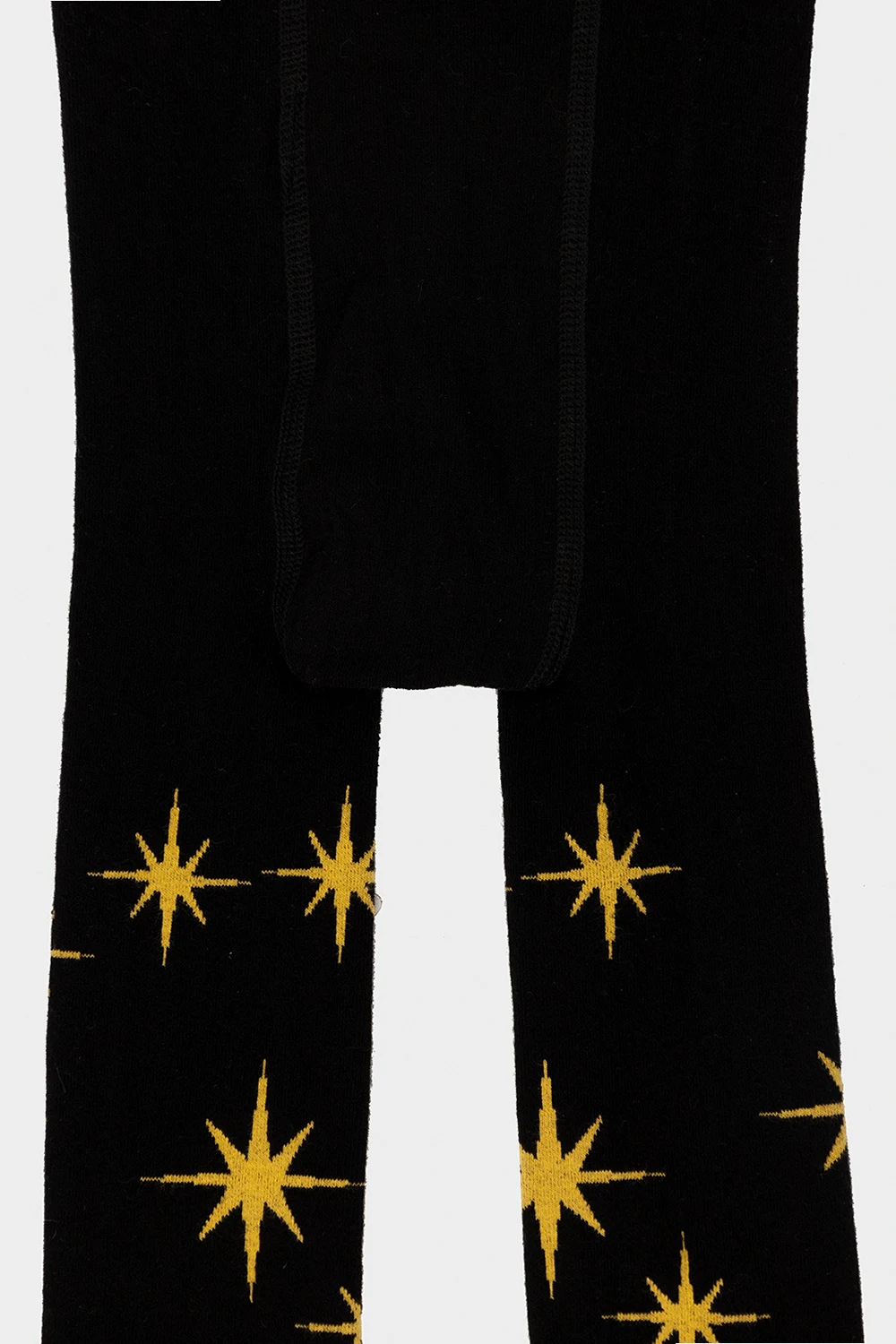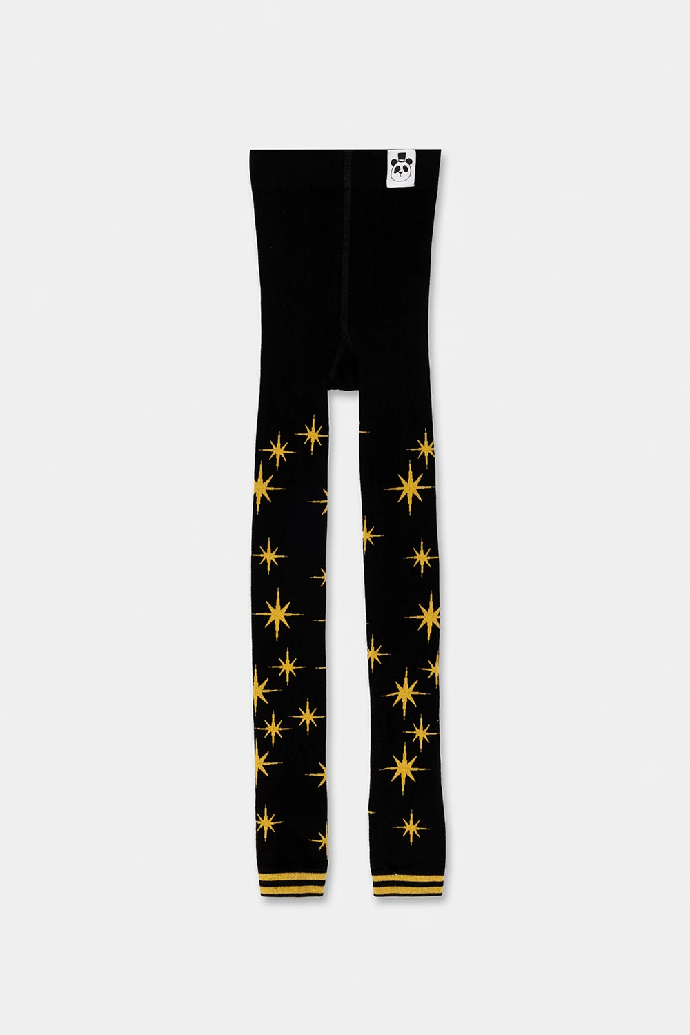 Black leggings with a yellow star embroidery from Mini Rodini. Made of cotton.