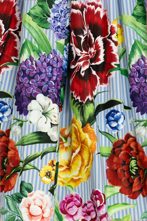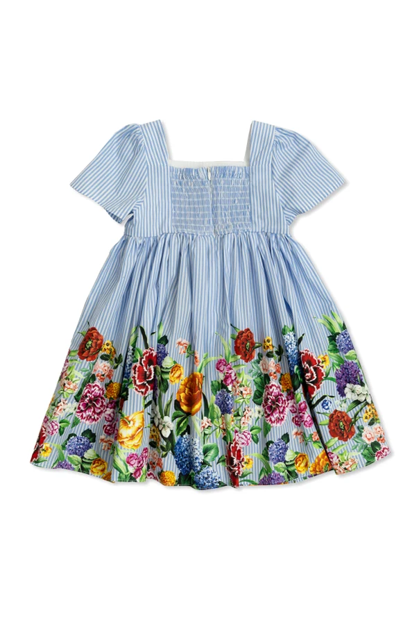Introducing the Floral Motif Dress from the exclusive Dolce & Gabbana Kids collection, a true masterpiece for young fashion enthusiasts. This enchanting dress features a short-sleeved, square-necked silhouette that gracefully flares, offering an elegant and girlish charm.