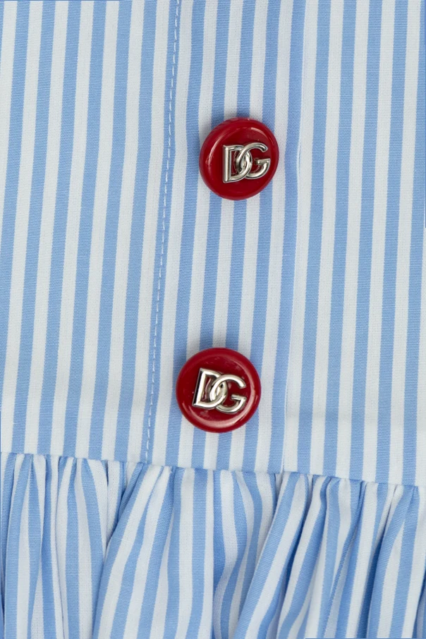 Distinctive details include red buttons engraved with the designer's "DG" logo and an elastic panel at the back for a tailored fit. This exquisite piece is designed for girls aged 4-14, embodying the iconic style of Dolce & Gabbana's Italian heritage.