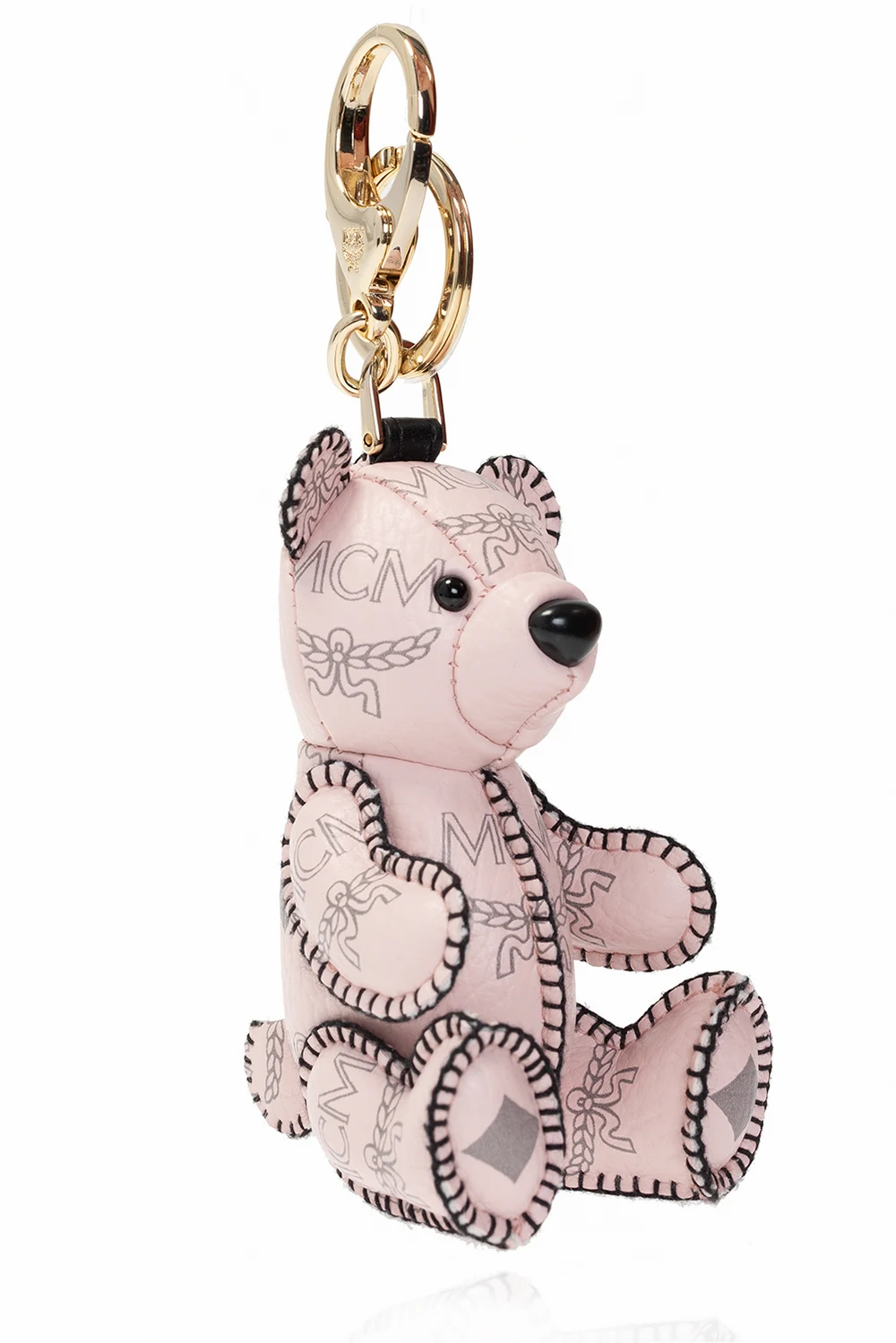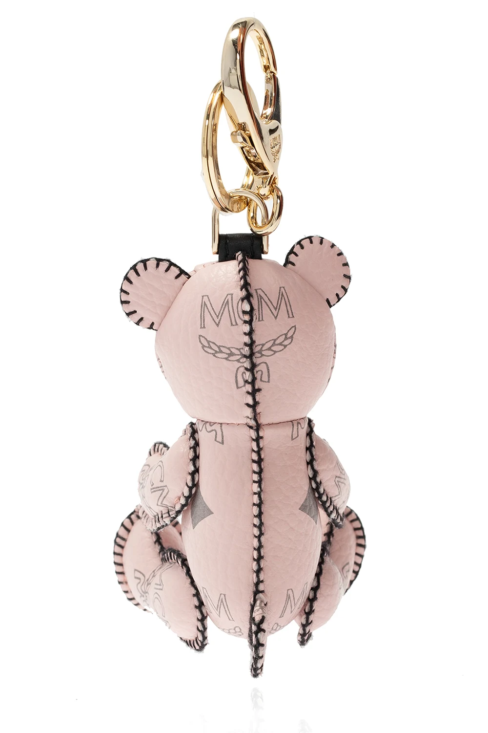 Pink keyring with an animal motif from MCM. Crafted from the brand\'s signature ‘Visetos’ canvas with a grey monogram print, this item features black stitching details and gold-tone metal hardware, including a ring and a lobster clasp.