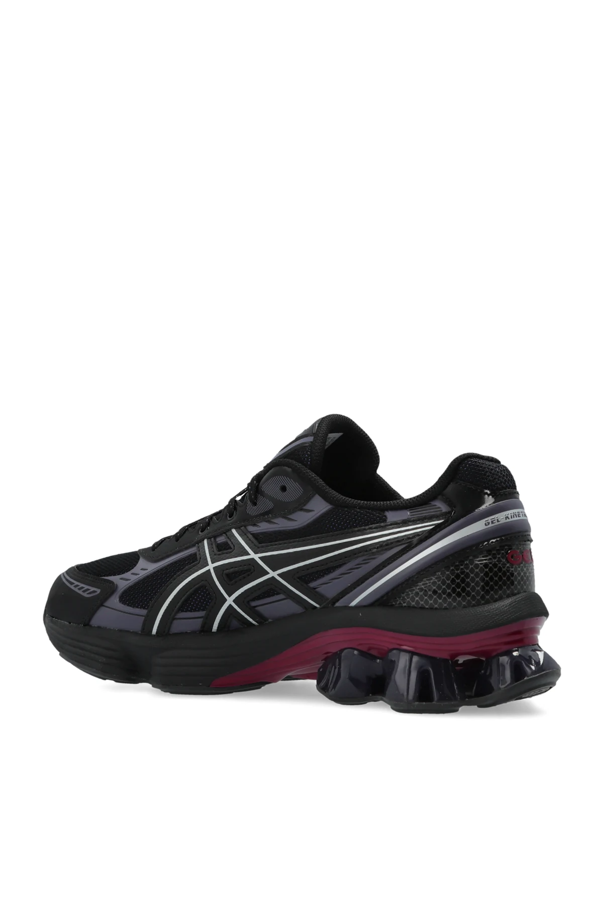 Introducing the GEL-KINETIC FLUENT sneakers, a paragon of contemporary athletic elegance from the esteemed designer, ASICS. These sneakers epitomize a harmonious blend of style and functionality, tailored for the modern gentleman. The classic low-top design is accentuated by a robust, cushioned sole, adorned with futuristic details around the heel, offering not only visual appeal but optimal comfort. Crafted from an exquisite fusion of textile and synthetic materials, these shoes guarantee lightweight breathability, ensuring your feet remain cool and comfortable throughout the day. The dominant black palette is elegantly contrasted with shades of gray and purple/burgundy accents, particularly on the sole, enhancing their sophisticated aesthetic. The sneakers feature a secure lace-up closure, with the iconic ASICS logo prominently displayed on the tongue, a testament to their superior craftsmanship. Why Choose These Sneakers? Exceptional comfort with cushioned sole design Stylish yet versatile color scheme Signature ASICS quality and design Lightweight and breathable for everyday wear