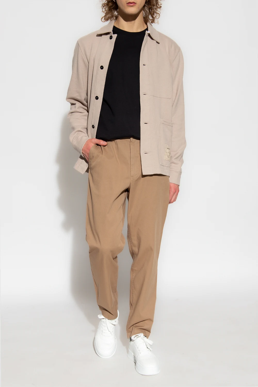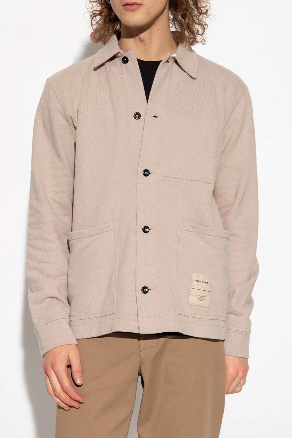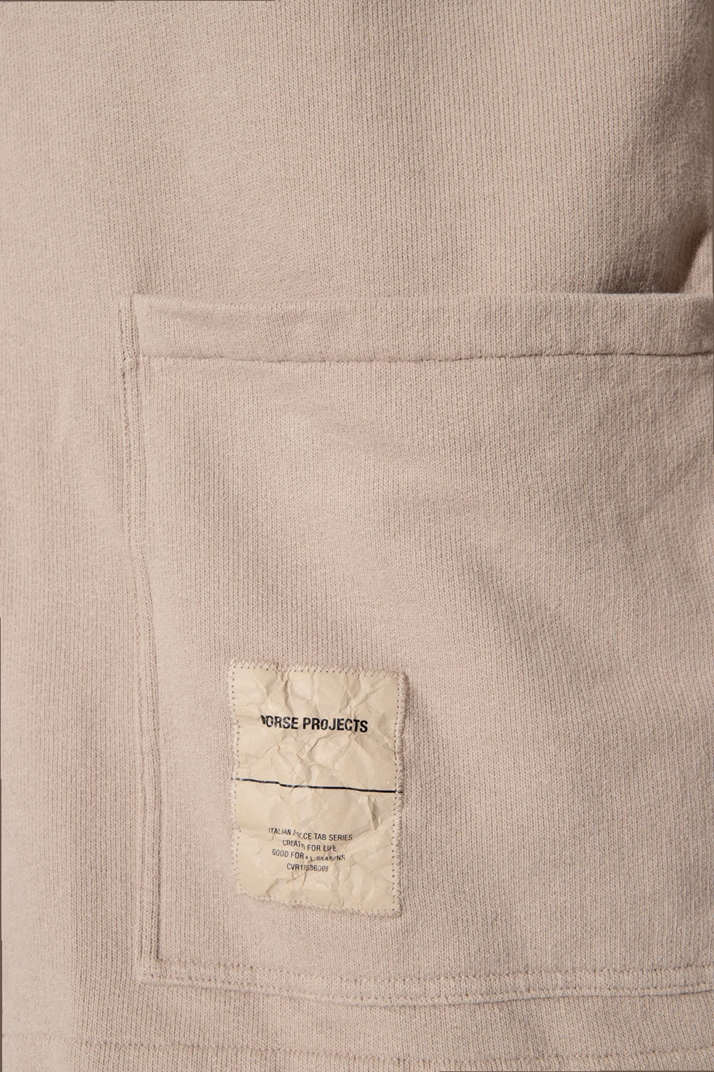 Beige ‘Jorn’ sweatshirt from Norse Projects. Made of organic cotton, this design features button fastenings, a logo patch with a crinkle effect, three slip pockets and long sleeves with ribbed cuffs.