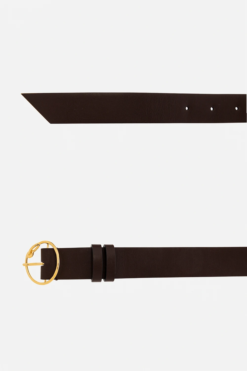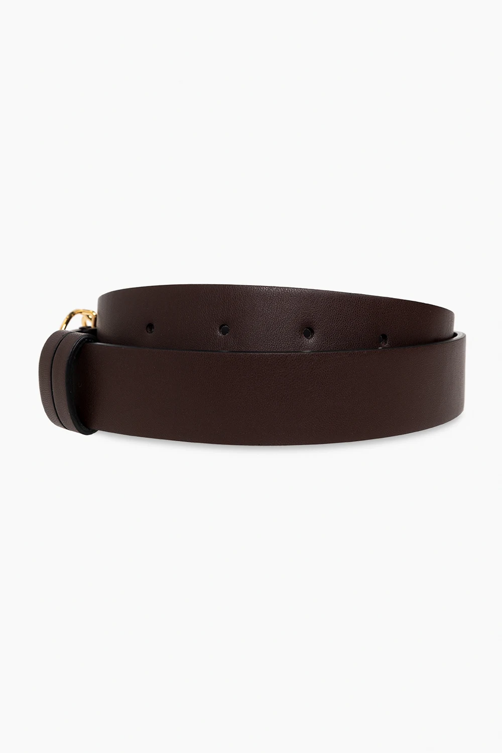 Brown ‘Dailey’ belt with a decorative round buckle in gold-tone brass from Nanushka. Made of vegan leather.