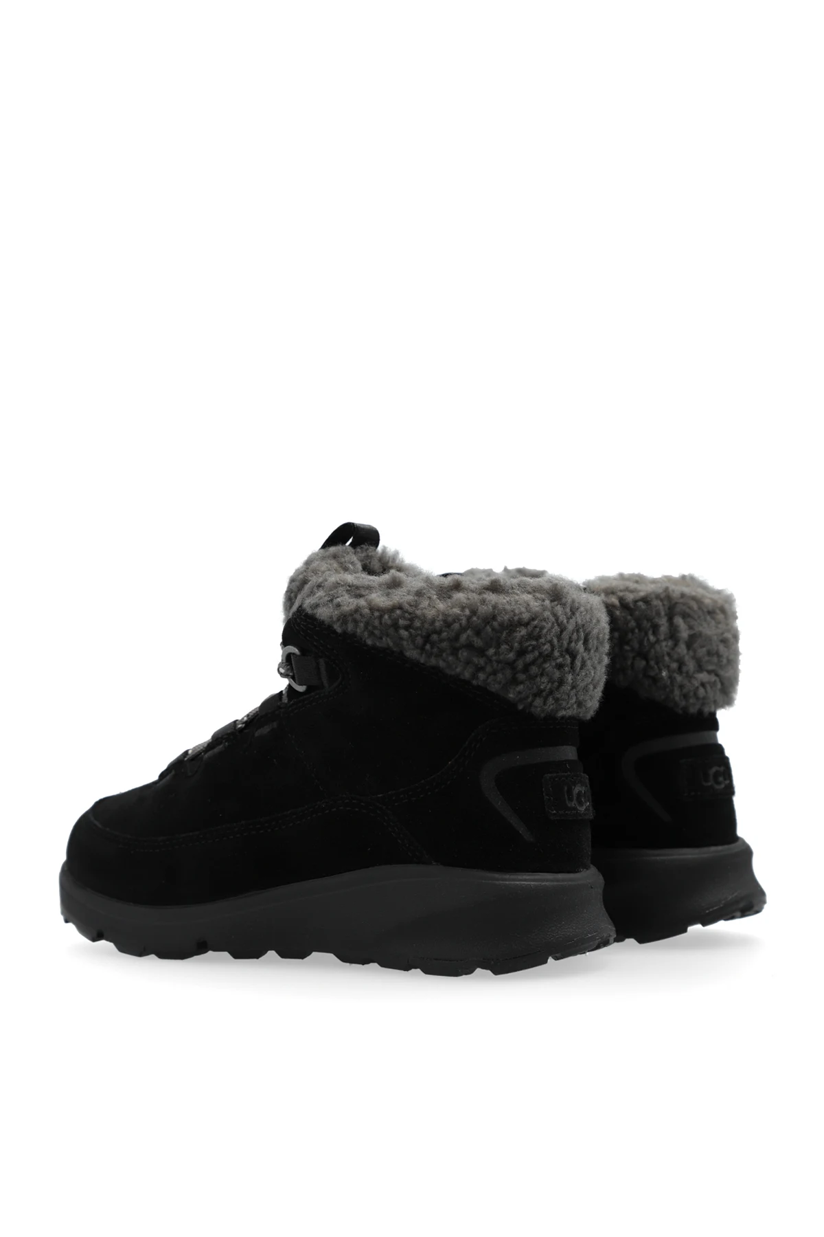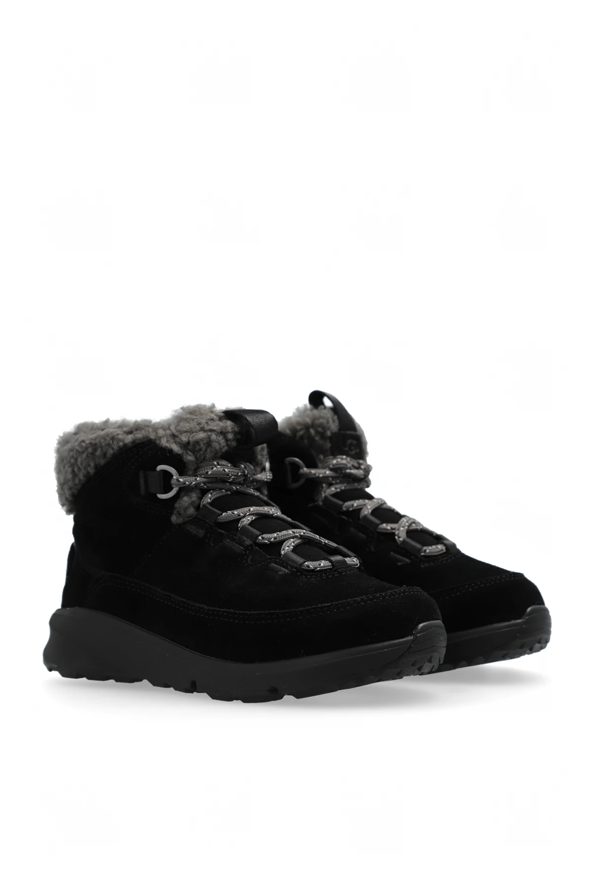 Introducing the Terretrail Cozy Lace snow boots by the prestigious brand UGG Kids. These exquisite boots are meticulously crafted to provide unparalleled warmth and style for the discerning young fashionista. The boots feature a classic winter design that extends above the ankle, ensuring optimal protection from the cold and snow. The exterior is constructed from sumptuous black suede, imparting an air of sophistication. Inside, a plush, gray fur lining envelopes the foot, offering exceptional comfort and insulation. The thick rubber sole is both sturdy and slip-resistant, guaranteeing excellent traction on icy surfaces. The elegant lace-up design, with gray laces adorned with black patterns, adds a touch of charm while providing a secure fit. Additionally, a convenient side zipper facilitates effortless on-and-off wear. Emblazoned with the iconic UGG logo at the back, these boots are a testament to the brand\'s commitment to quality and luxury. The Terretrail Cozy Lace snow boots are the epitome of style, durability, and comfort, making them a must-have for the winter season. Why Choose This Product? Premium Materials: Outer made from 100% suede, inner lining composed of 60% wool and 40% Lyocell, and a durable 100% rubber sole. Exceptional Warmth: Fur-lined interior ensures feet remain warm and cozy. Superior Traction: Thick rubber sole provides excellent grip on slippery surfaces. Elegant Design: Classic black color, decorative laces, and the iconic UGG logo. Convenient Features: Lace-up front for a secure fit and a side zipper for easy wear.
