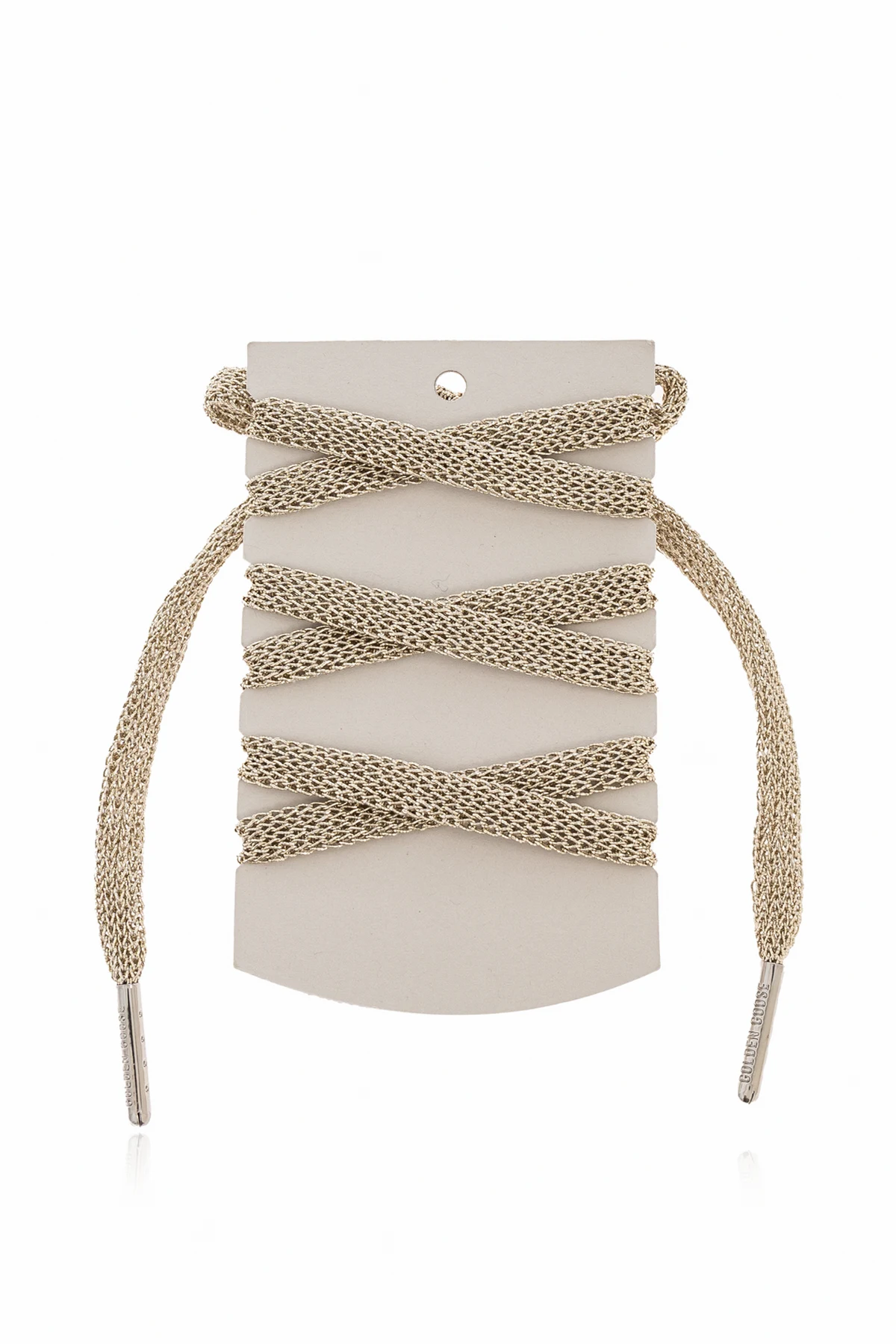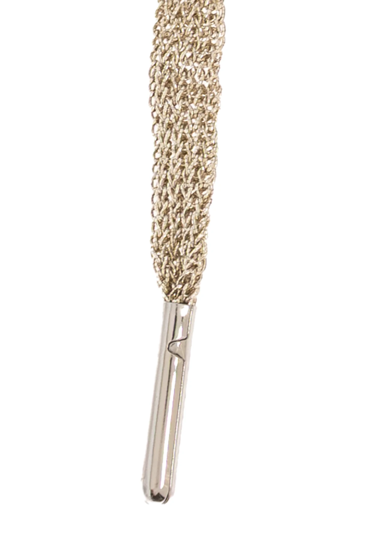 Elevate your footwear or accessories with the Golden Goose Crystal-Embellished Shoelaces, a true epitome of refined extravagance. These laces showcase a classic, round silhouette expertly woven from sumptuous gold-toned threads, enhanced by a delicate elasticity that ensures both durability and flexibility. The signature mesh pattern exudes an air of exclusivity and sophistication, subtly shimmering thanks to luxurious metallic yarns. Each lace is adorned with meticulously set crystalline embellishments, casting a captivating sparkle with every movement. Finely crafted metal aglets in a harmonious golden hue punctuate the design with a flawless finishing touch. Designed by the esteemed Italian house Golden Goose, these shoelaces reflect a harmonious blend of artisanal tradition and avant-garde urban allure, lending any ensemble a distinctive, contemporary charm. Why choose this product? Exquisite mesh weave highlighted by hand-applied crystal accents Premium materials: glass, brass, and polyester for lasting luxury Versatile length for both shoes and statement fashion accessories Iconic Golden Goose artistry—where craftsmanship meets modern attitude