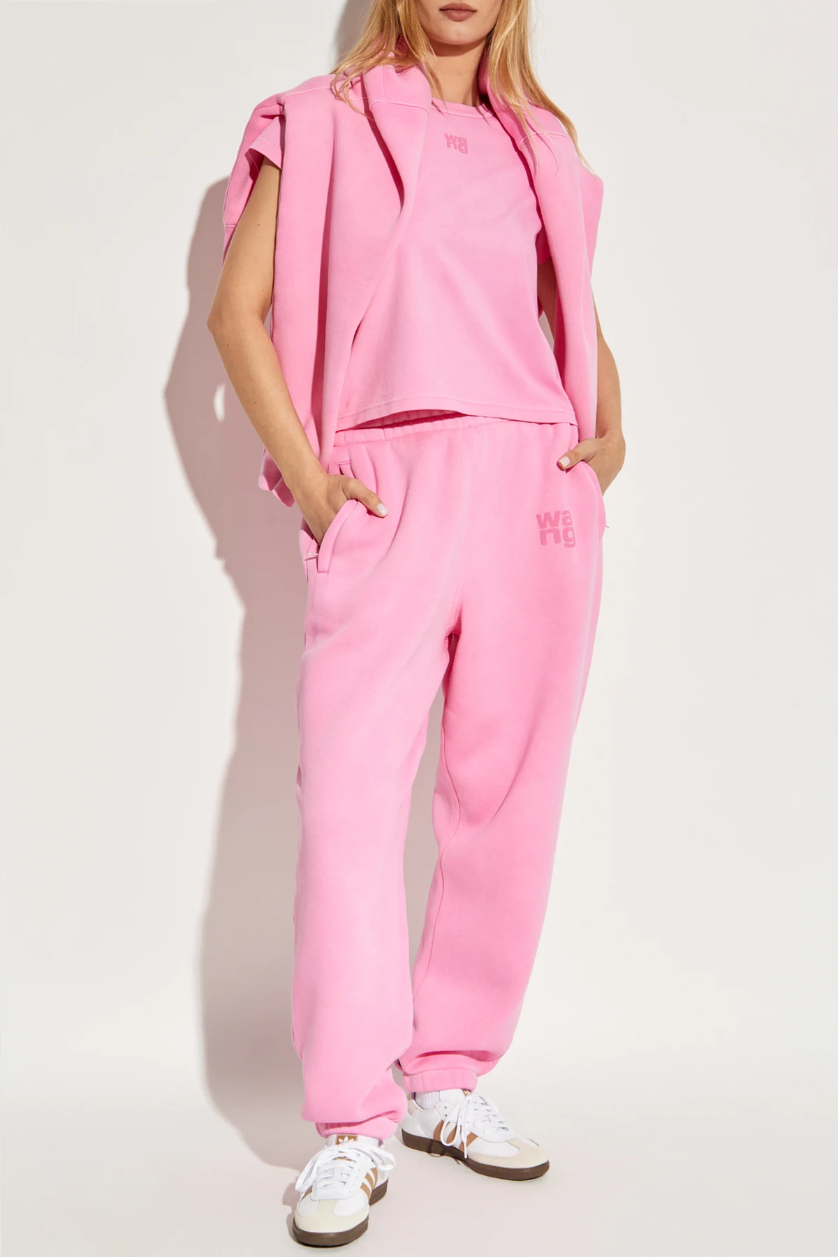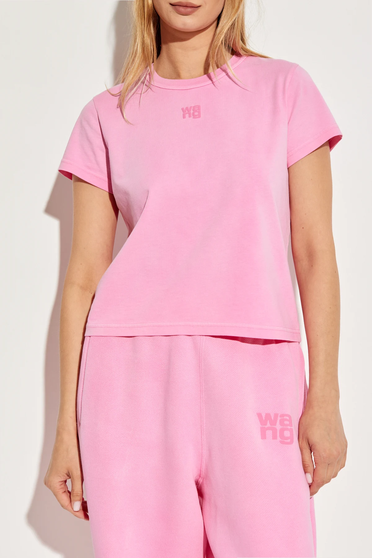Experience understated luxury with this exclusive pink T-shirt from T by Alexander Wang. Showcasing a classic silhouette with a gently relaxed fit, this piece is expertly crafted from premium cotton, imparting both softness and refined comfort. The monochromatic design radiates minimalist allure, while the fabric exudes a subtle stretch and a pleasing tactile sensation. Distinctively, the tonal, three-dimensional embroidered \"wang\" logo graces the chest with a discreet yet iconic presence, elevating the garment’s sophisticated simplicity. Effortlessly blending the grunge-inspired ease emblematic of the New York designer, this T-shirt embodies urban chic at its finest. Why choose this product? Exquisite, subtly elastic cotton fabric for enduring comfort Monochromatic, modern design that complements any refined wardrobe Signature embossed logo for understated brand recognition Tailored for effortless sophistication and everyday versatility