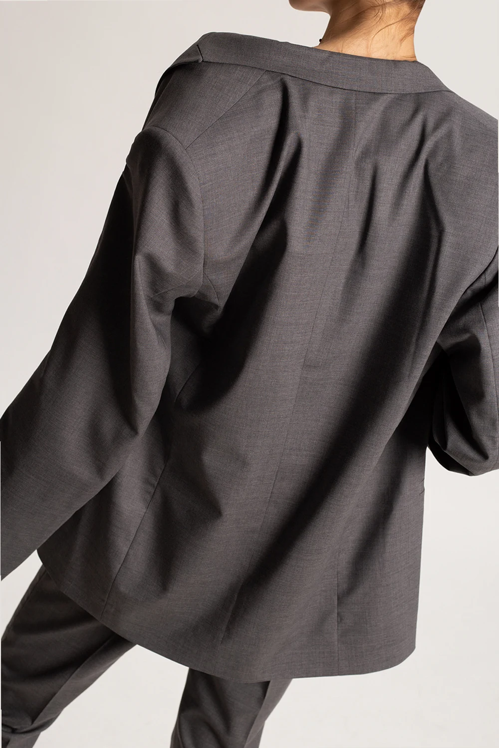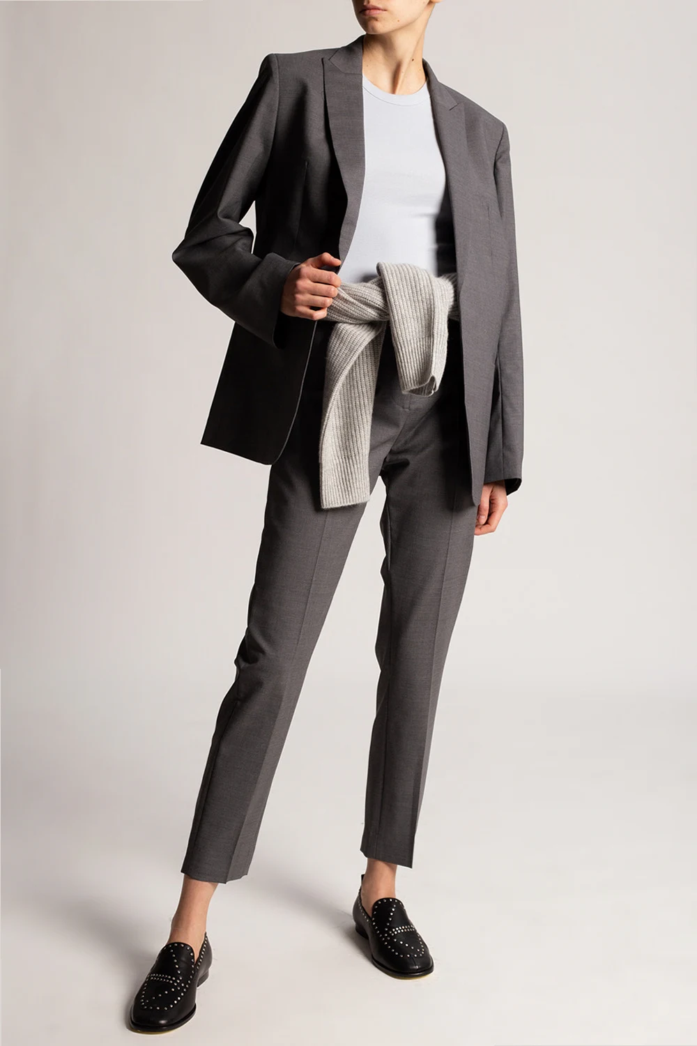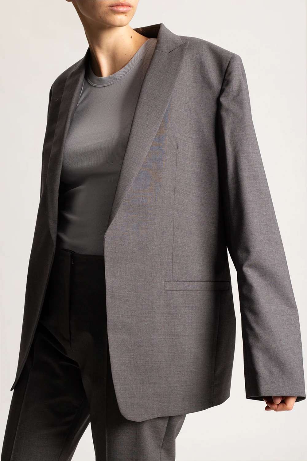 Grey blazer from Toteme. Made of wool, this garment features peak lapels, long sleeves and two front pockets.