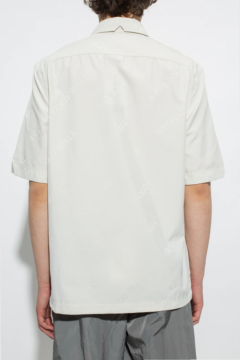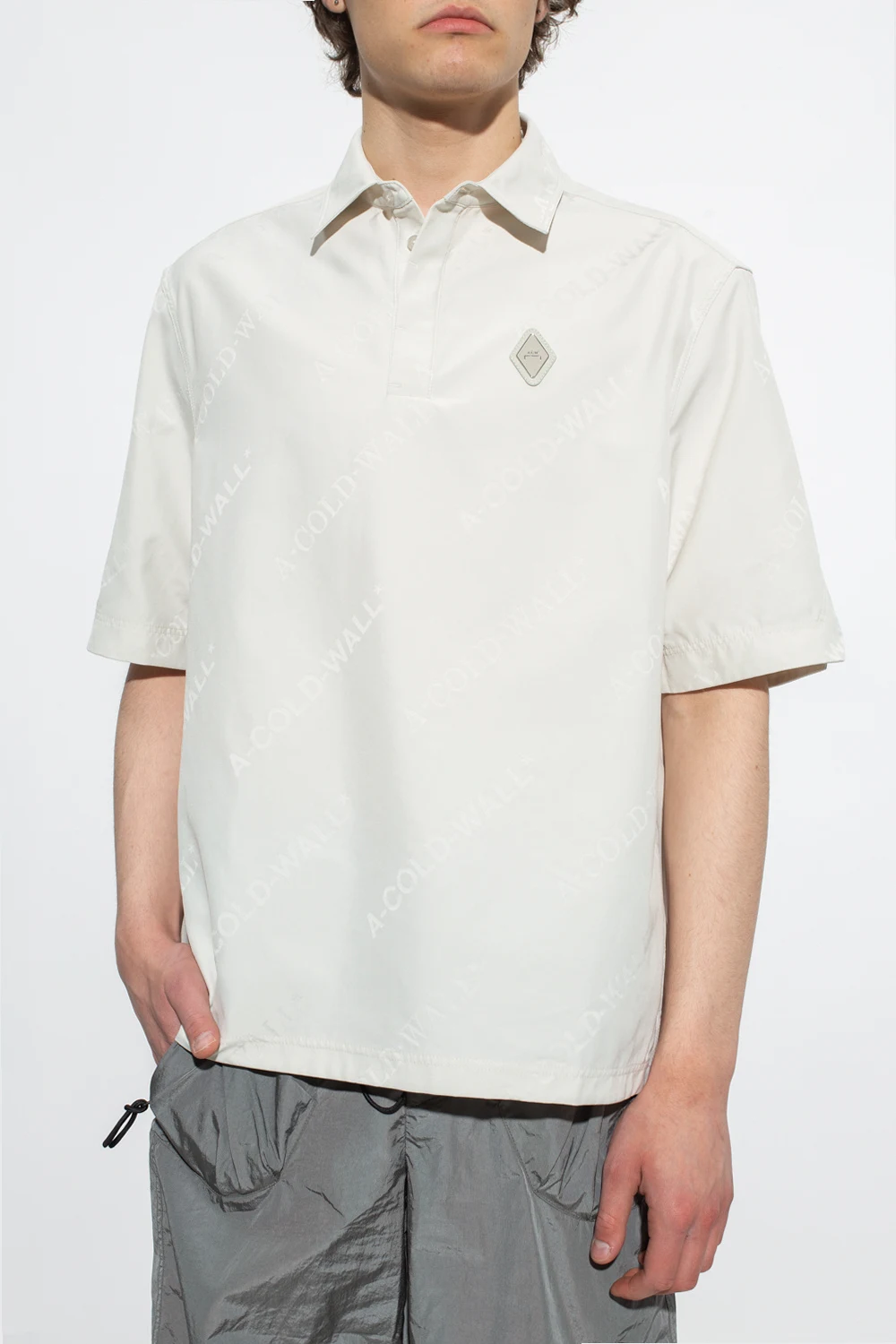 Light grey polo shirt from A-COLD-WALL*. Fastened with buttons, this garment features a pattern, logo patch and short sleeves.