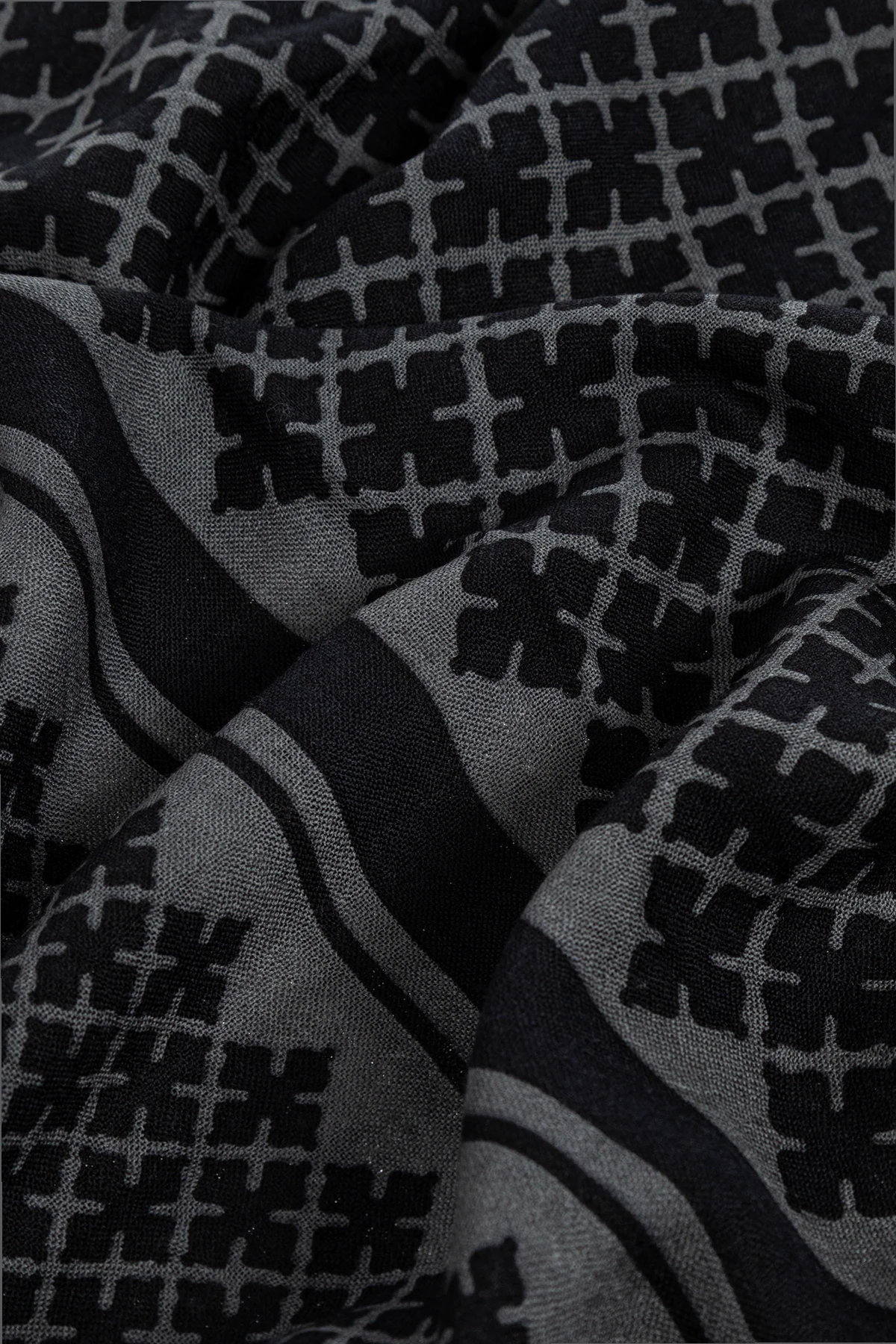 The ‘Julee’ Wool Scarf by By Malene Birger epitomizes timeless Scandinavian sophistication. Woven from premium wool, this black and dark graphite accessory charms with its plush, sumptuous texture and articulated craftsmanship. Its generous rectangular silhouette is designed for effortless draping, offering both comfort and style across any season. Distinctive geometric motifs—intersecting lines and stylized squares—are thoughtfully arranged across the surface, while a double-lined border lends definition and poise to the piece. Subtle yet striking, the ‘Julee’ scarf is a refined reflection of modern minimalism infused with quietly bold design, making it a captivating finishing touch to any ensemble. Why choose this product? Exquisite high-quality wool for lasting warmth and softness Striking geometric pattern with elegant accent borders Versatile black-and-dark graphite colorway suits every wardrobe Classic, generously sized rectangular shape for versatile styling Thoughtfully crafted by By Malene Birger, a hallmark of Scandinavian luxury