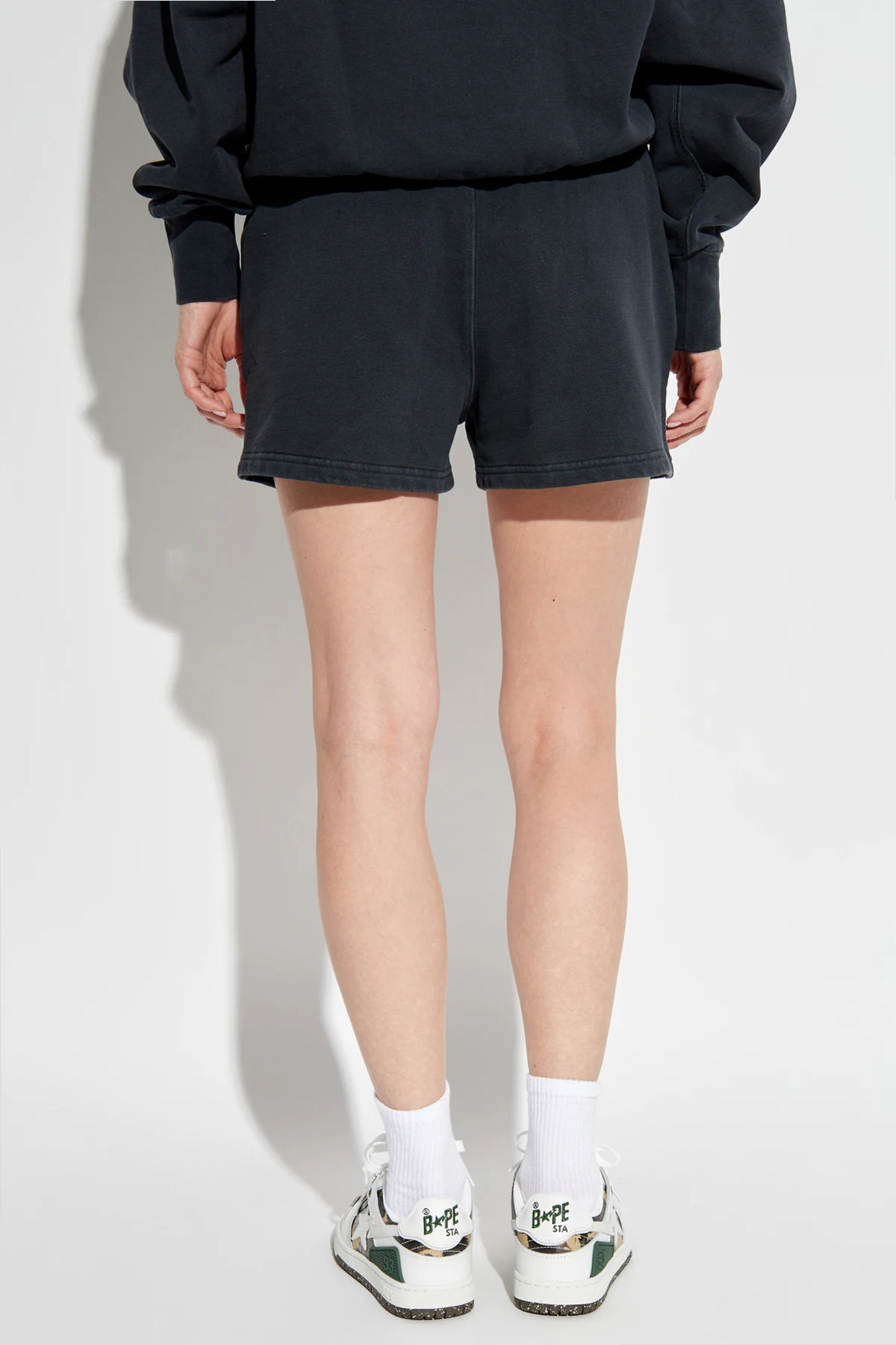 Introducing the Szorty z logo from the exclusive collection by A BATHING APE®. These black shorts are the epitome of casual elegance, crafted with the finest 100% cotton to ensure a soft and comfortable wear. The classic silhouette is accentuated by an elastic waistband, providing both style and practicality. A subtle yet distinctive embroidered logo adorns the side, adding a touch of sophistication and serving as a hallmark of this prestigious brand. The relaxed fit makes these shorts an ideal choice for everyday wear, seamlessly blending comfort with a chic aesthetic. Why choose this product? Crafted from premium cotton for unparalleled comfort. Features an exclusive embroidered logo for a touch of luxury. Classic black hue that effortlessly complements any casual ensemble. Designed by the renowned A BATHING APE®.