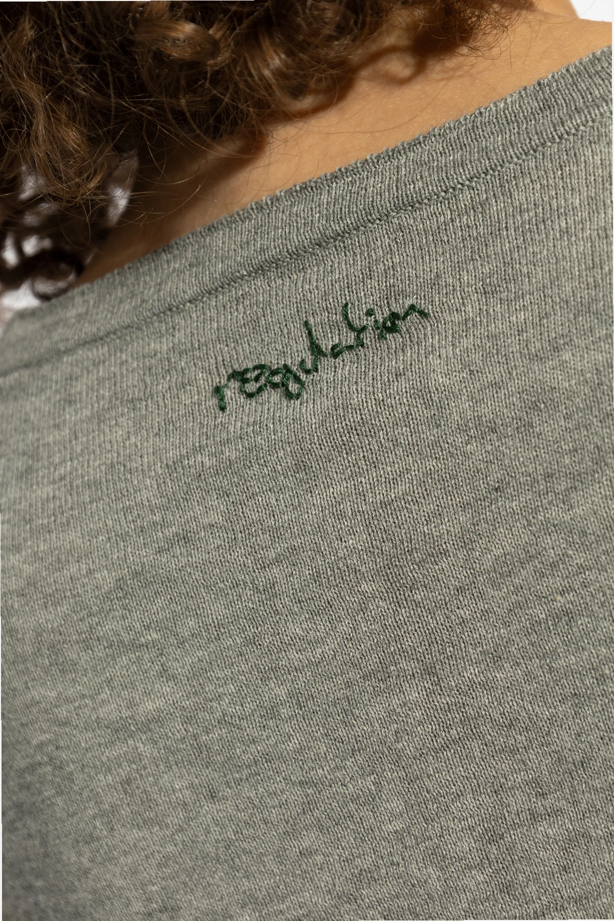 Introducing the Gray Sweater with Logo from the exclusive collection of the renowned designer Yohji Yamamoto. Crafted from soft cotton, this sweater boasts a classic silhouette featuring long sleeves and a round neckline, exuding an air of understated elegance. Distinguished by a subtle embroidered designer logo at the back near the collar, it captures a unique character that is both versatile and stylish. Its design allows for seamless integration into various ensembles, pairing perfectly with black trousers as showcased in our imagery. Why Choose This Product? Expertly crafted from premium cotton for a luxurious feel. Features a unique embroidered logo for added sophistication. Designed by the iconic Yohji Yamamoto, known for his avant-garde approach. A versatile piece that adapts to different styles effortlessly.