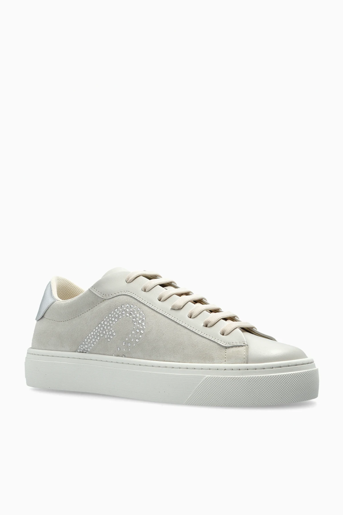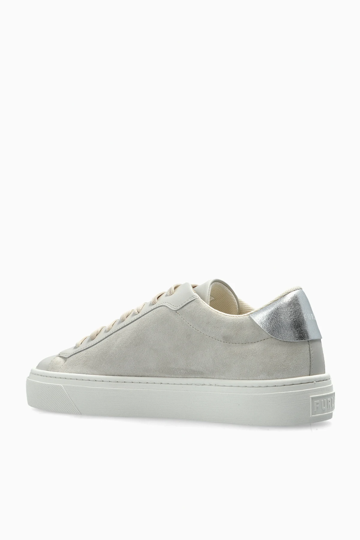 Introducing the Furla \'Enjoy\' Sneakers, a harmonious blend of sophistication and comfort. Crafted from premium leather, these light gray sneakers feature subtle white accents that exude elegance. The low-profile design epitomizes classic sneaker aesthetics, enhanced by a shimmering logo on the side for a touch of allure. Designed with a thick, white rubber sole, these sneakers promise unrivaled comfort and cushioning, making them ideal for everyday wear. A distinctive silver heel accent elevates the overall elegance, while the tongue proudly displays the iconic “FURLA” branding. Why Choose This Product? Meticulously crafted from high-quality leather for durability and style. Features an eye-catching logo composed of sparkling elements. Includes a silver heel accent that adds a sophisticated flair. Thick rubber sole ensures lasting comfort and excellent shock absorption. Perfect for complementing casual ensembles with a touch of luxury.