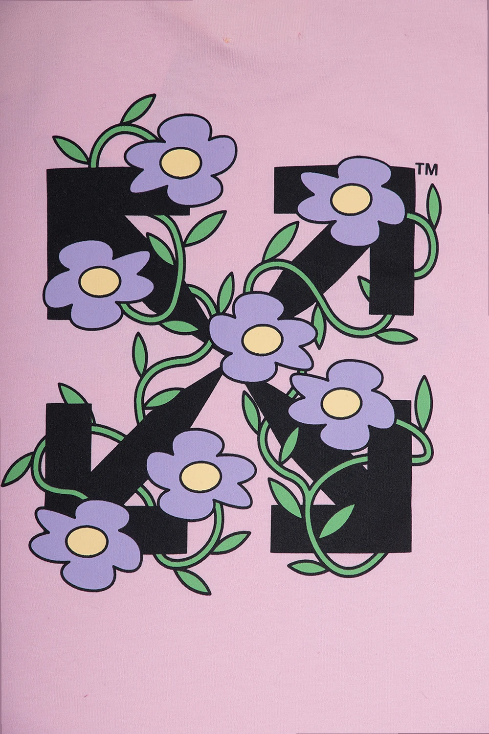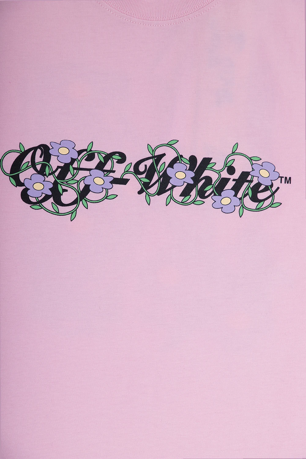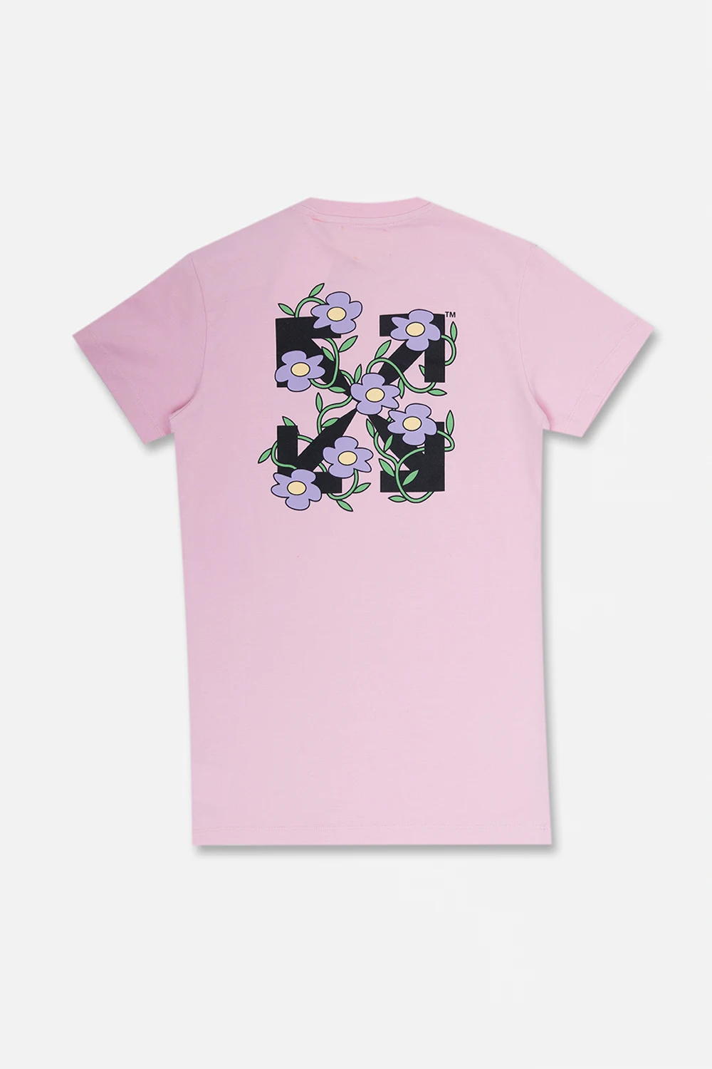 Pink dress from Off-White Kids. Made of cotton, this style features short sleeves, an elasticated collar and a graphic print with the brand\'s logo.